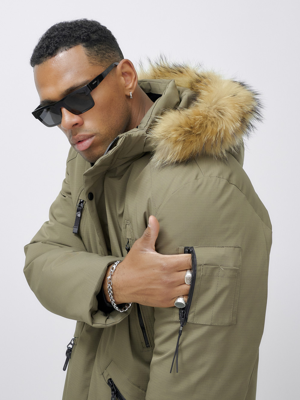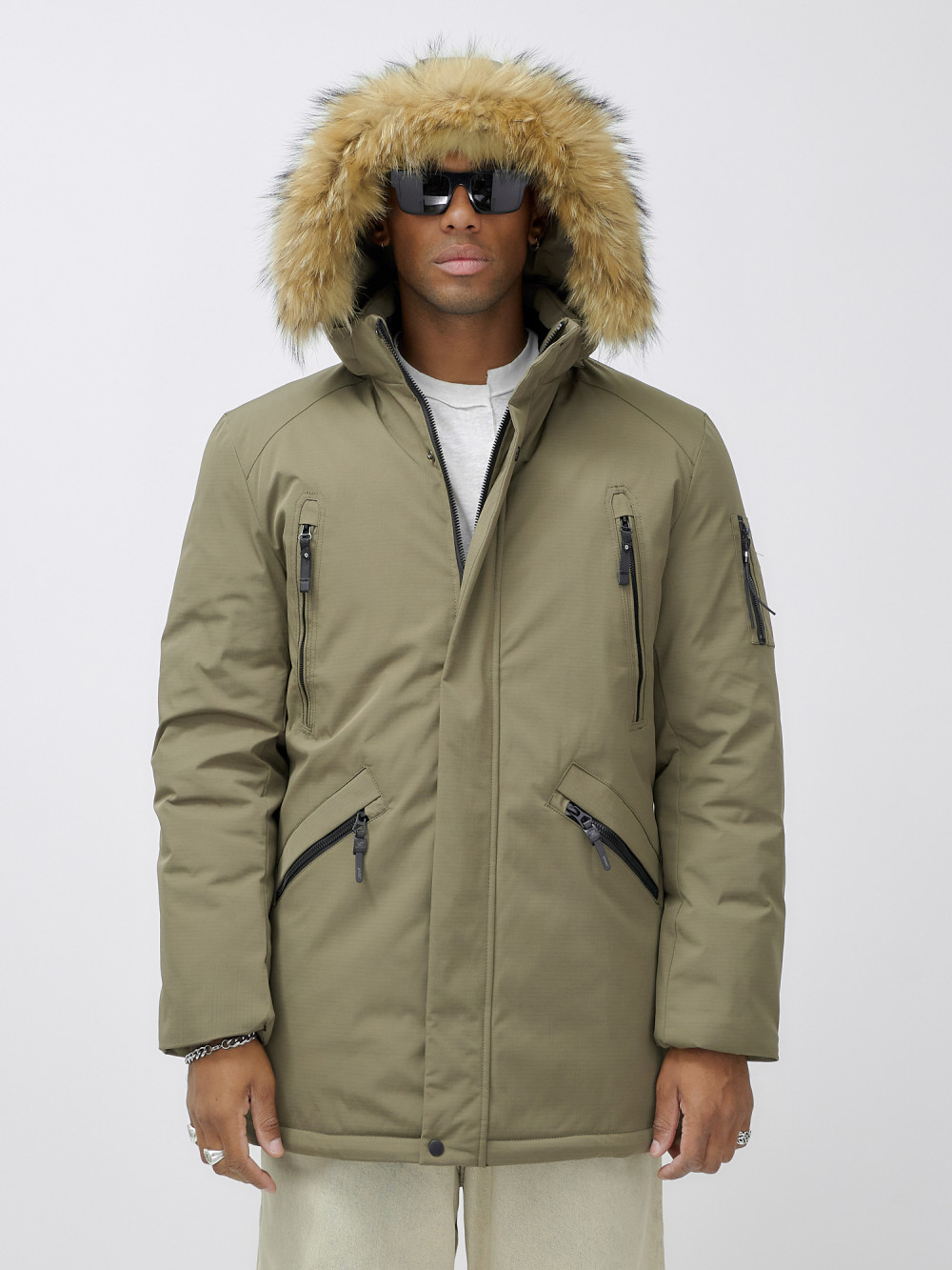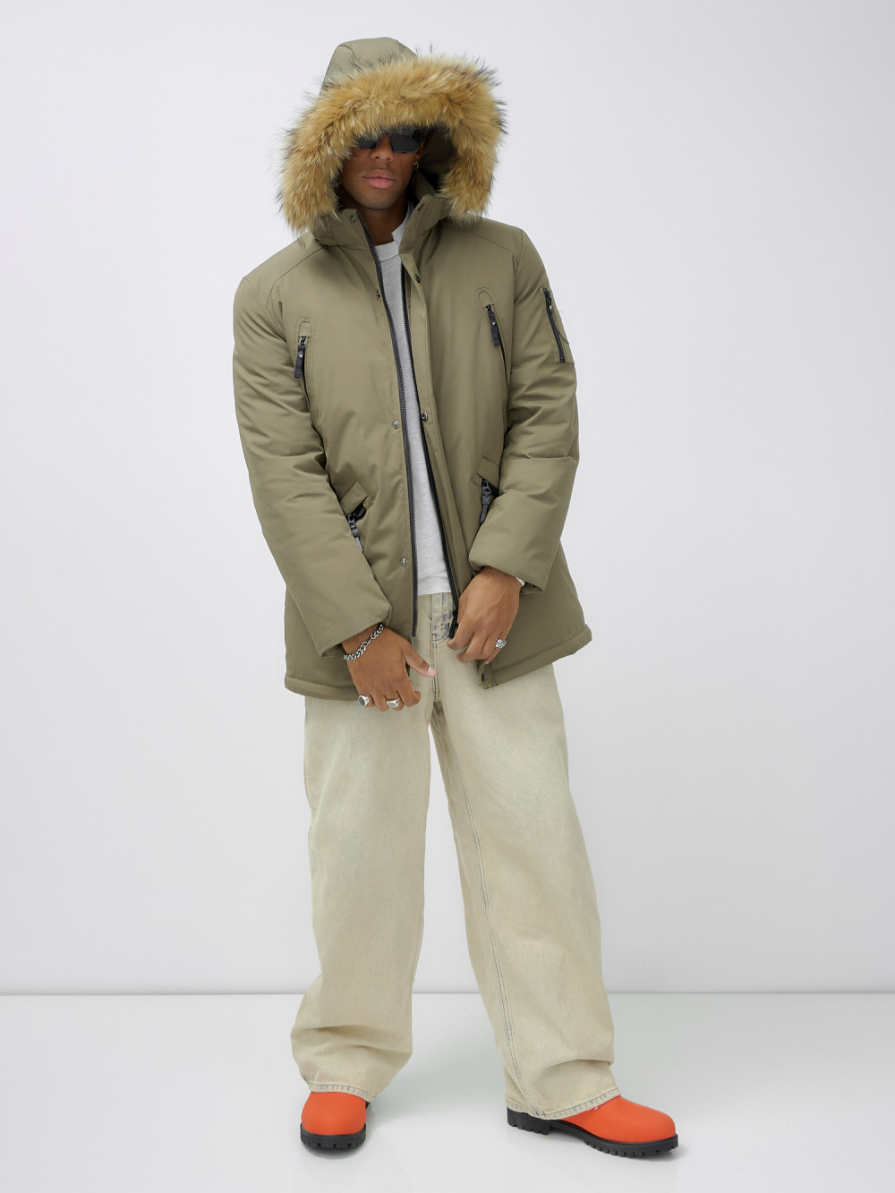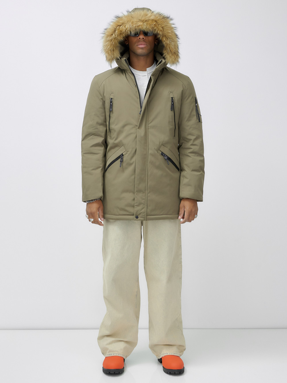 Парка мужская зимняя удлиненная с мехом бежевого цвета 606_1B — WONDERRMAN