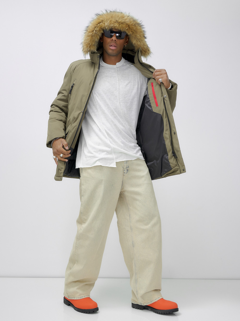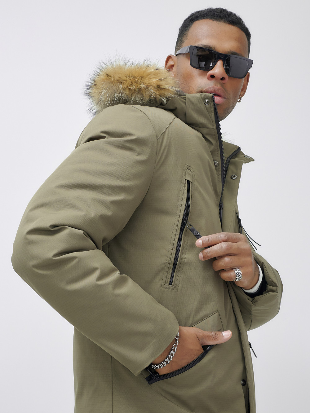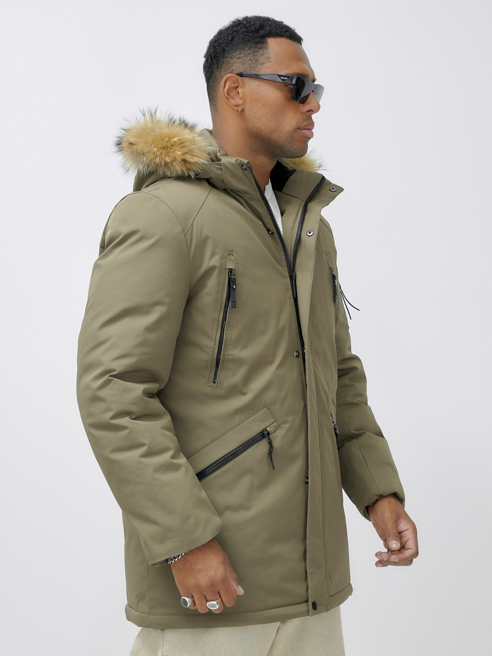 Парка мужская зимняя удлиненная с мехом бежевого цвета 606_1B — WONDERRMAN