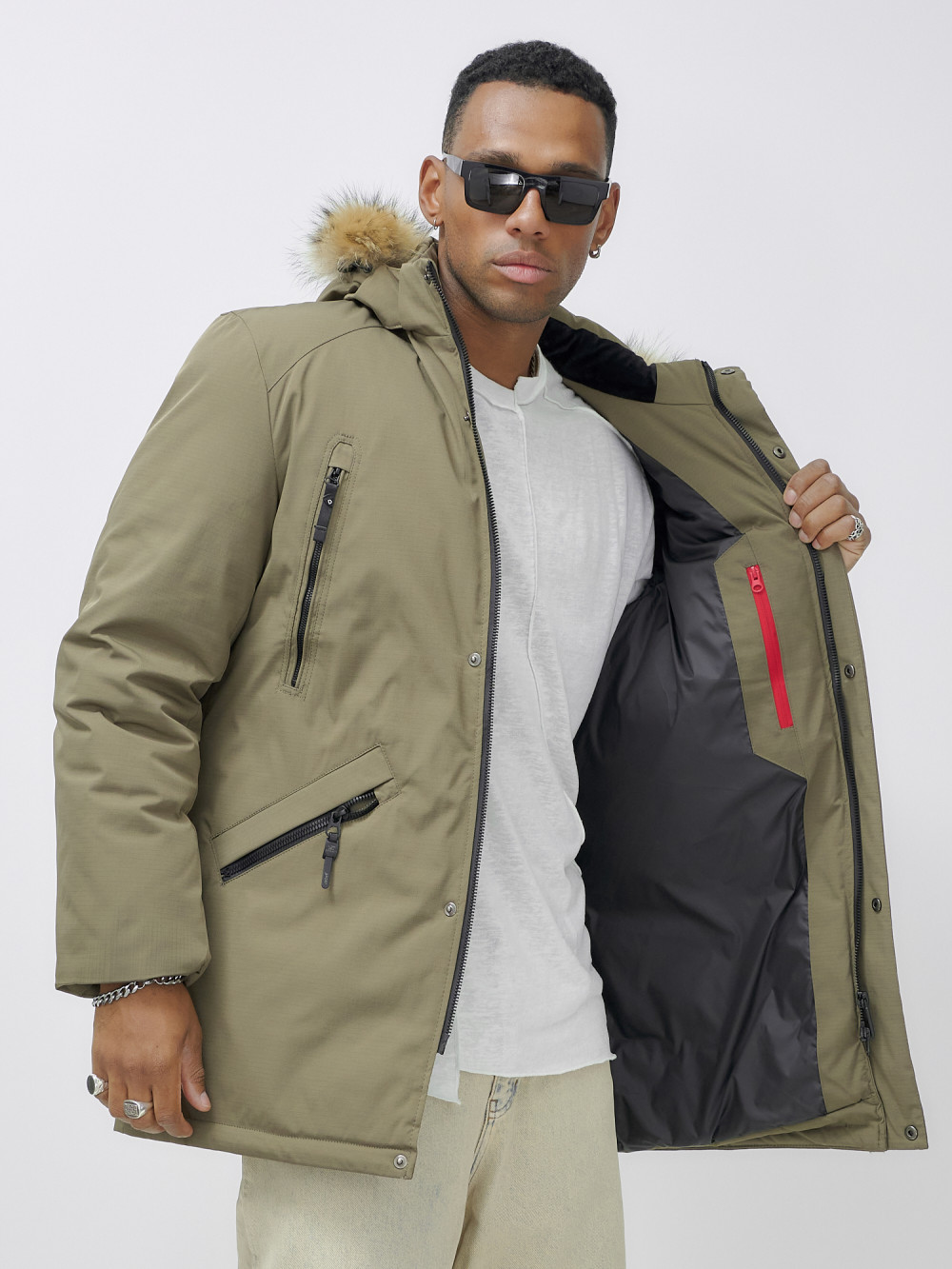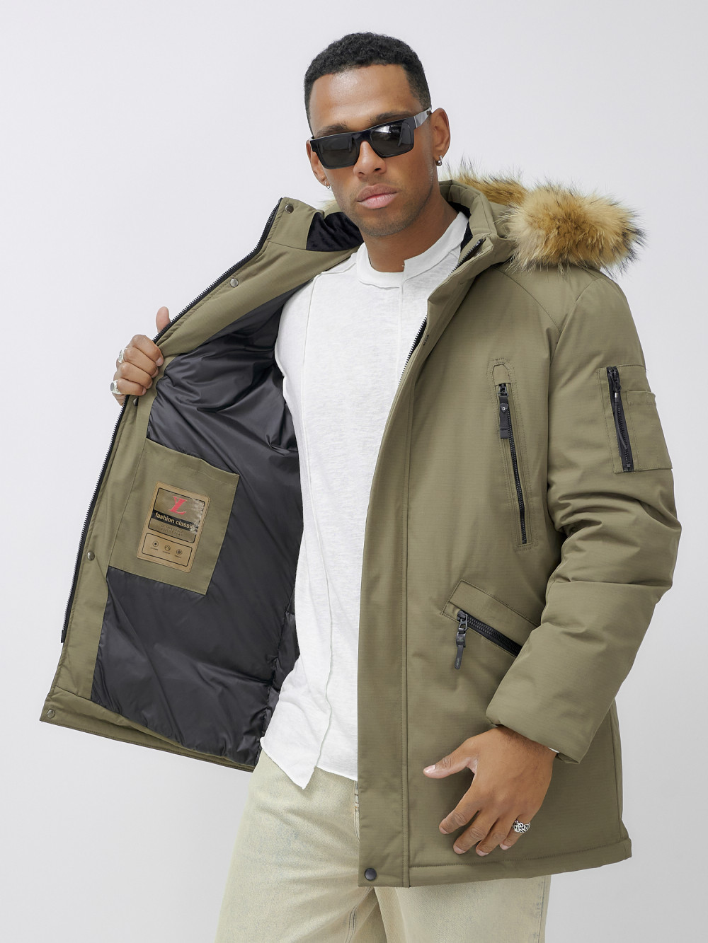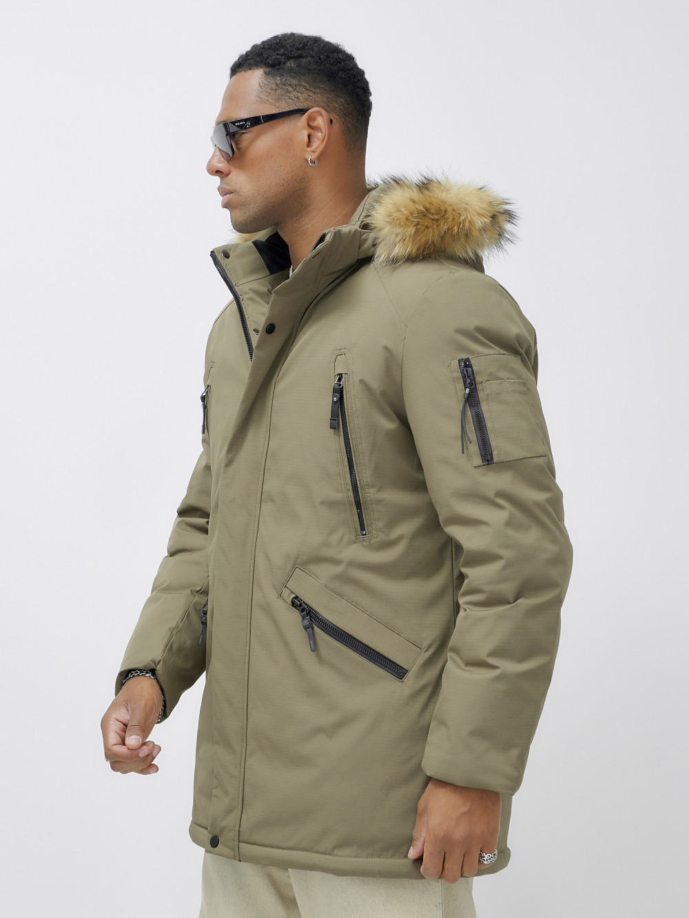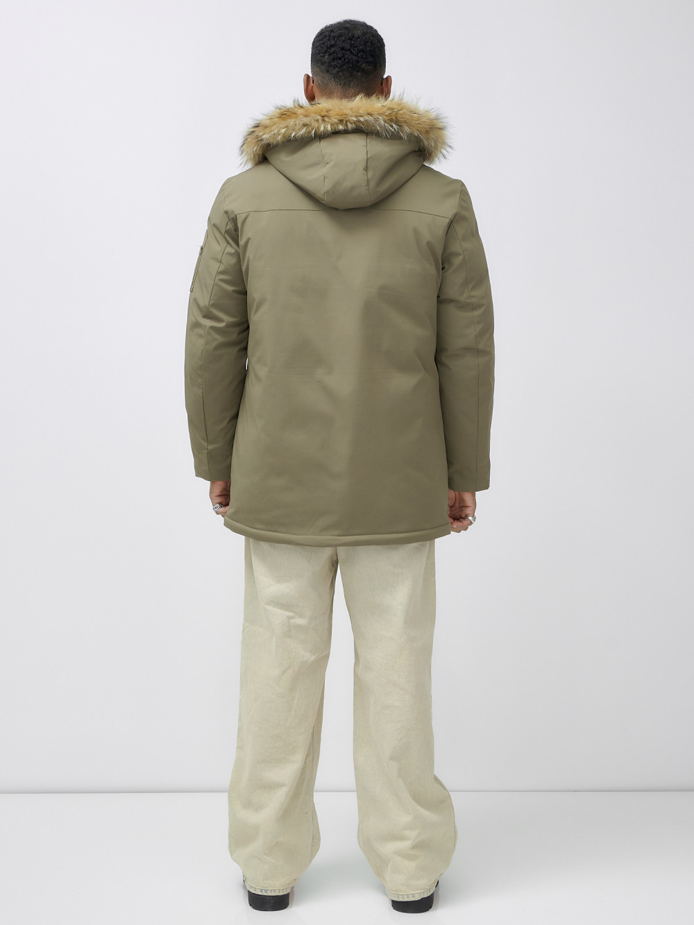 Парка мужская зимняя удлиненная с мехом бежевого цвета 606_1B — WONDERRMAN