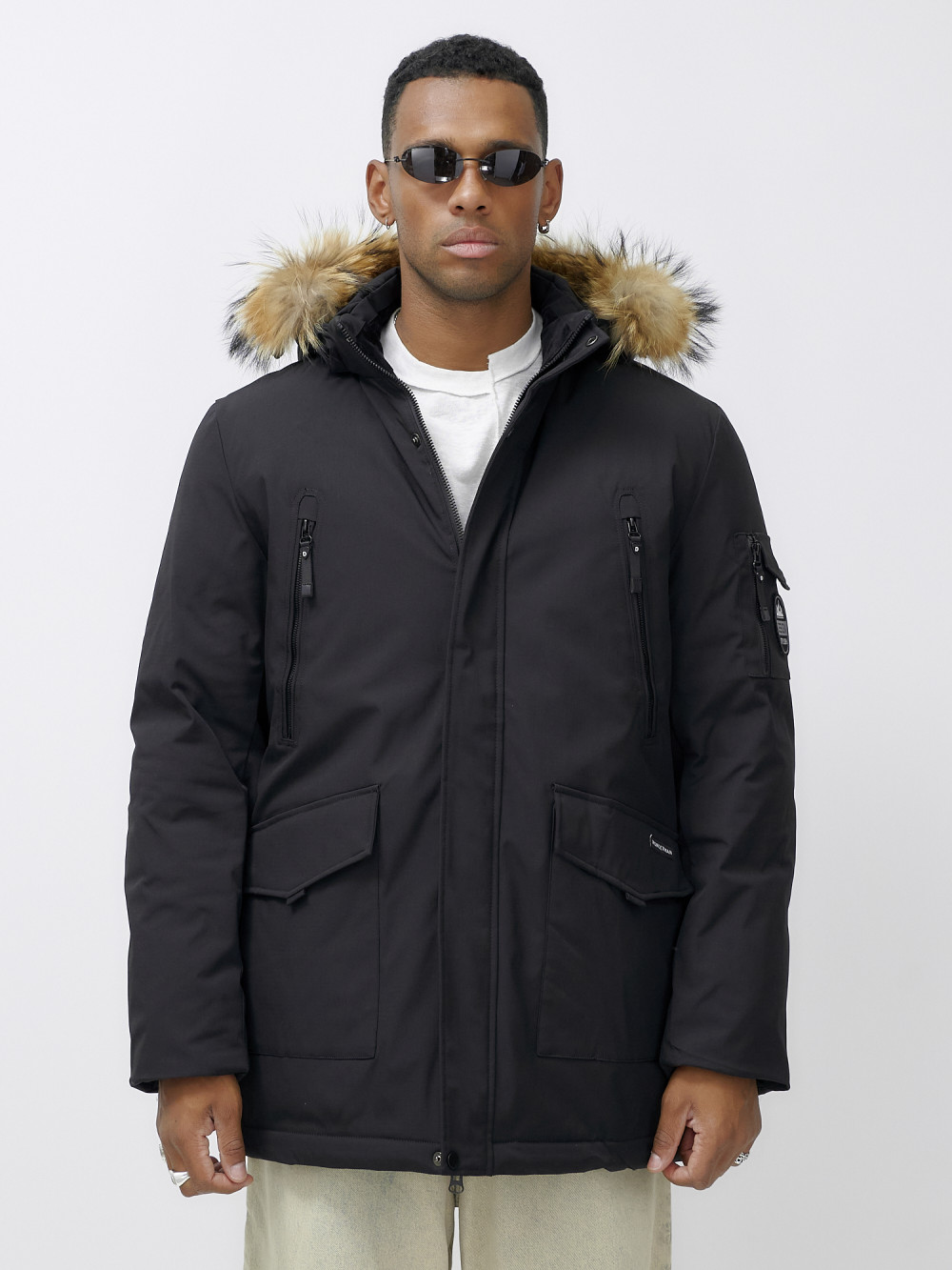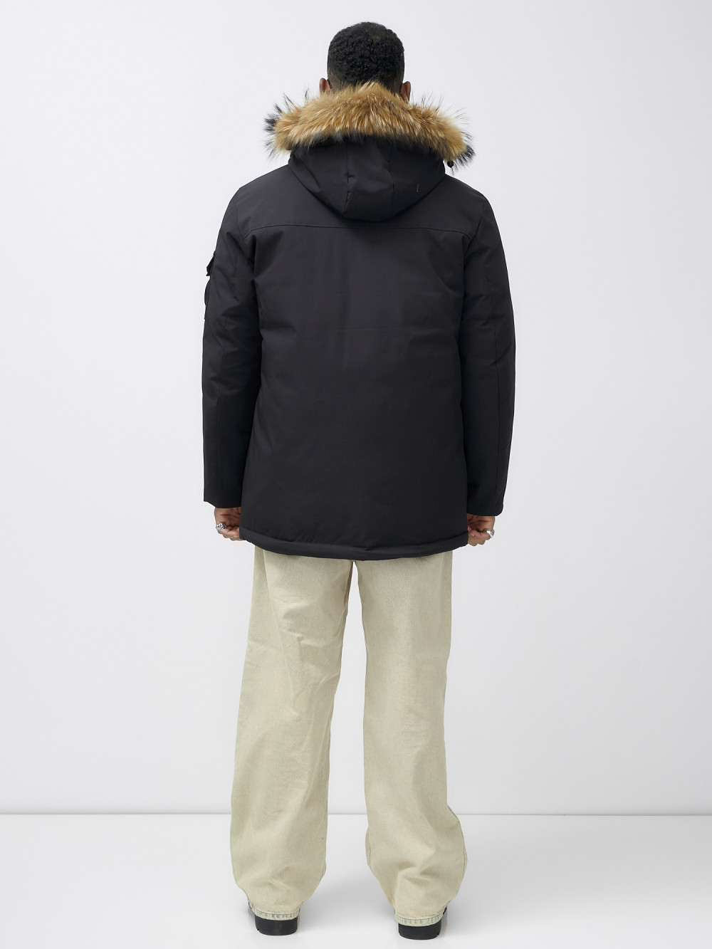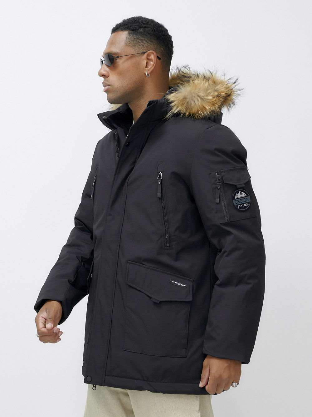 Парка мужская зимняя удлиненная с мехом черного цвета 602_1Ch — WONDERRMAN