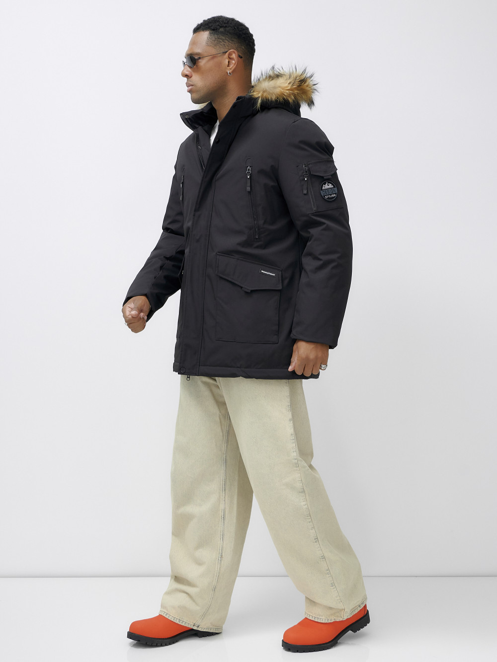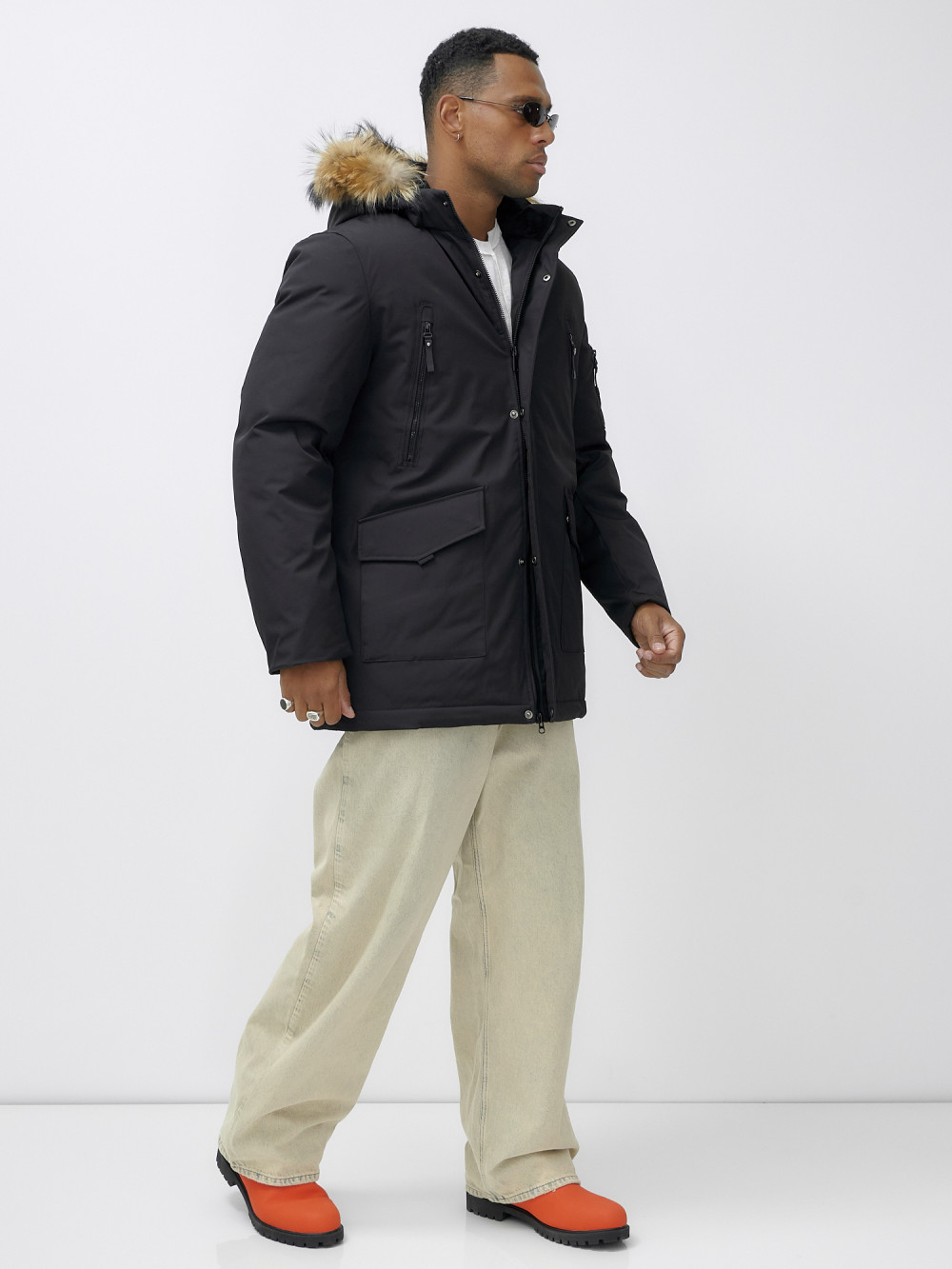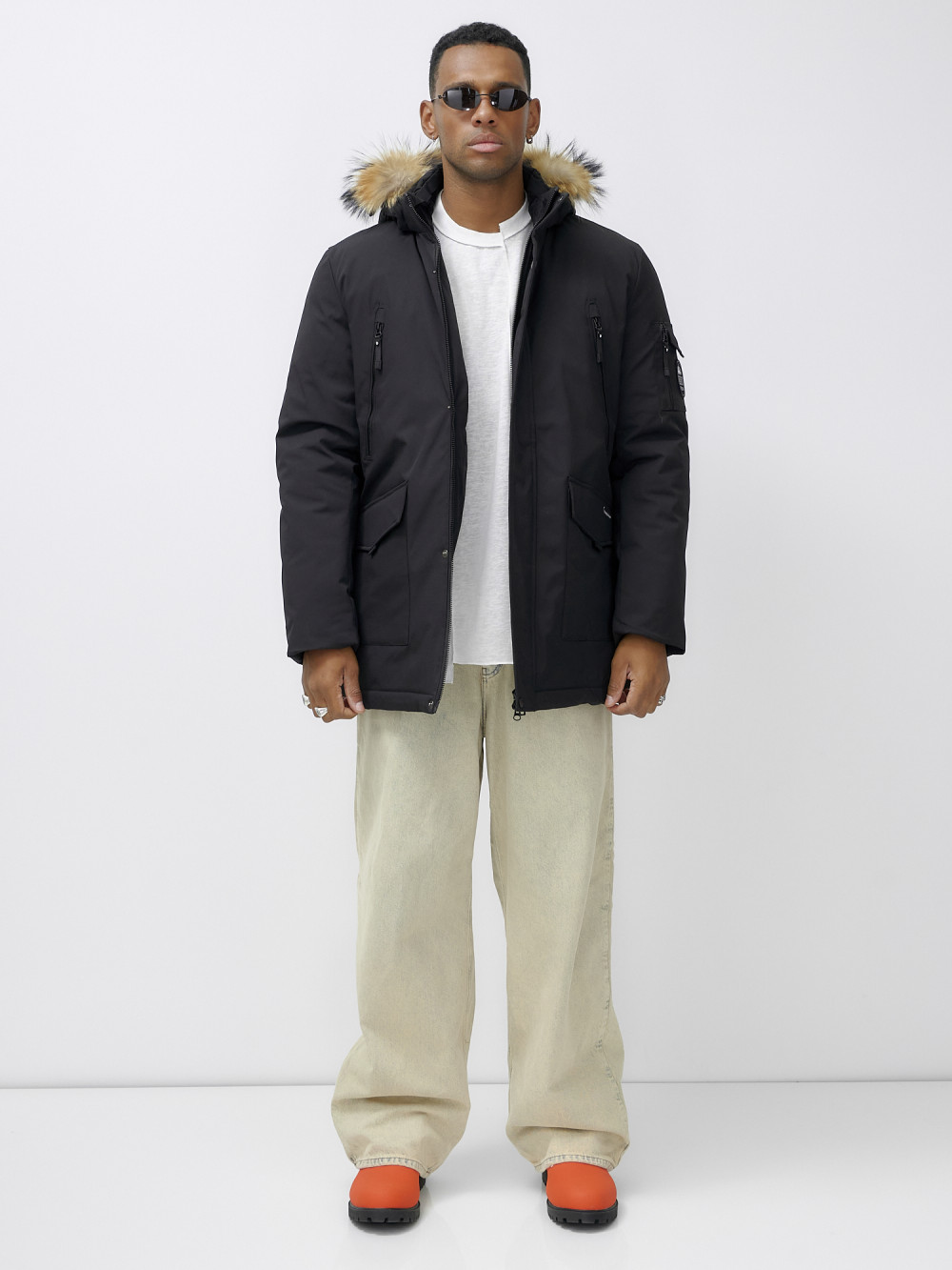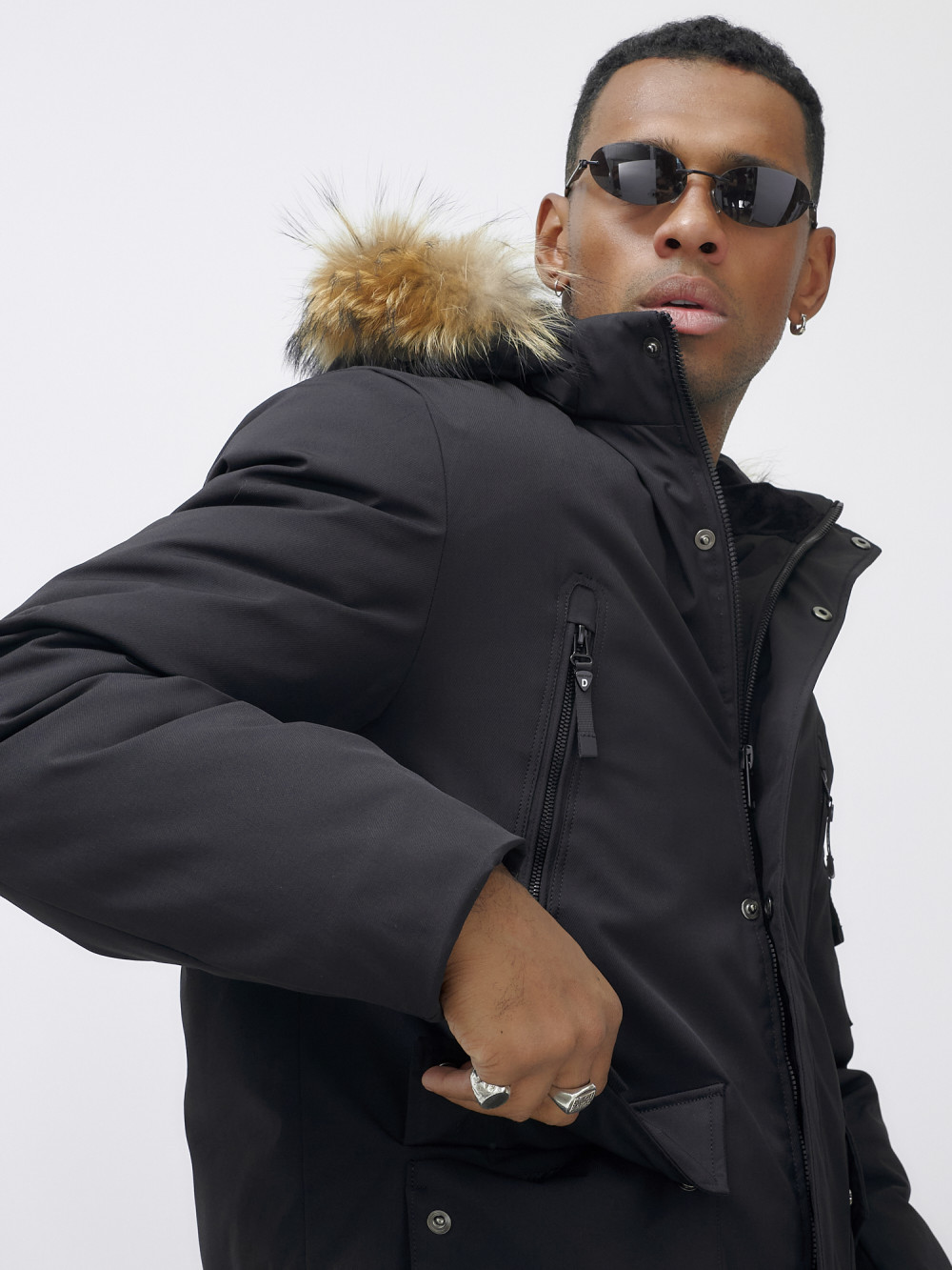 Парка мужская зимняя удлиненная с мехом черного цвета 602_1Ch — WONDERRMAN