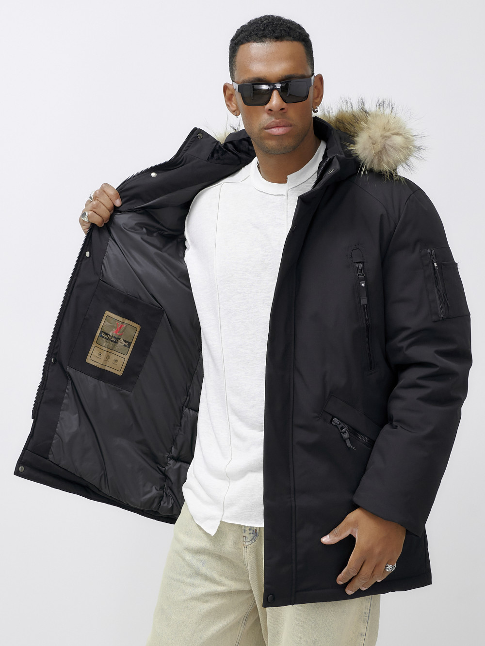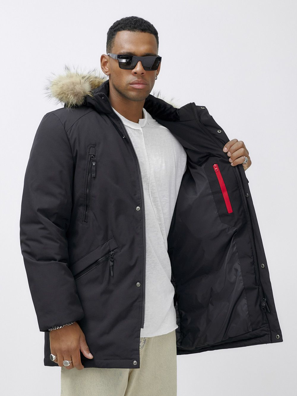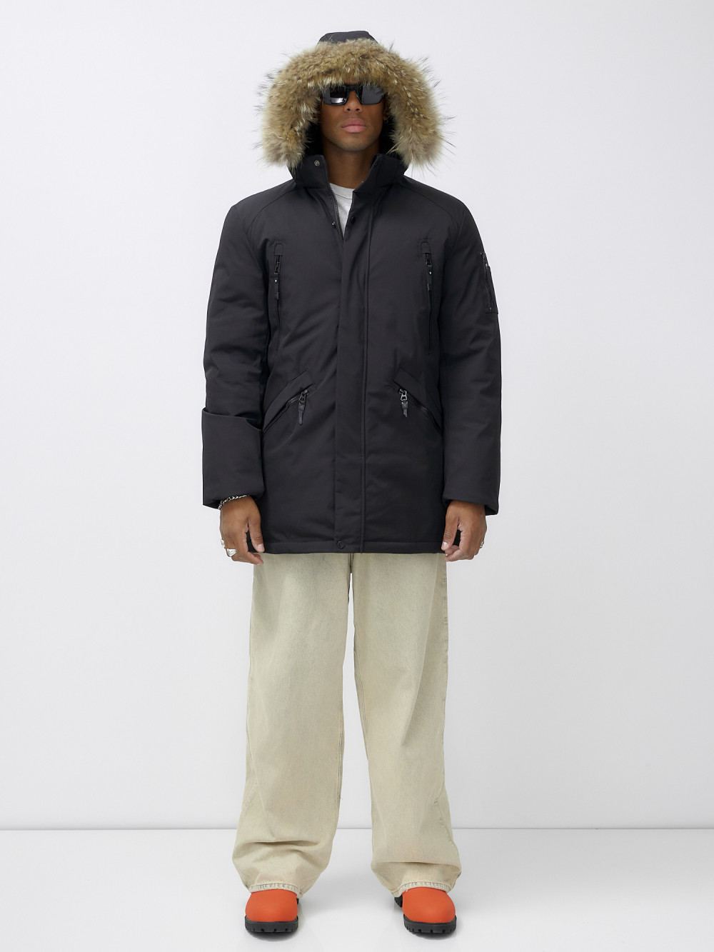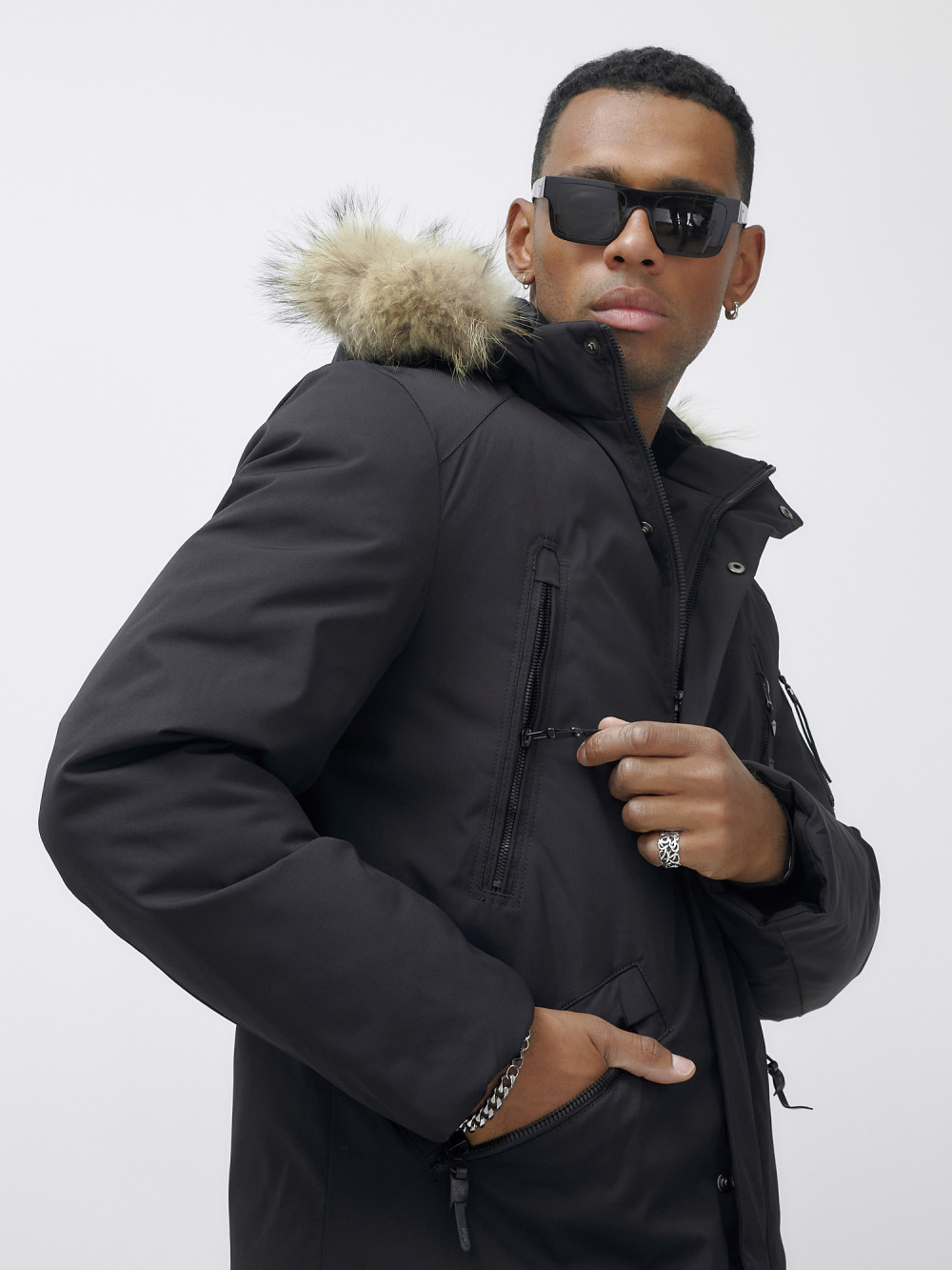 Парка мужская зимняя удлиненная с мехом черного цвета 606_1Ch — WONDERRMAN