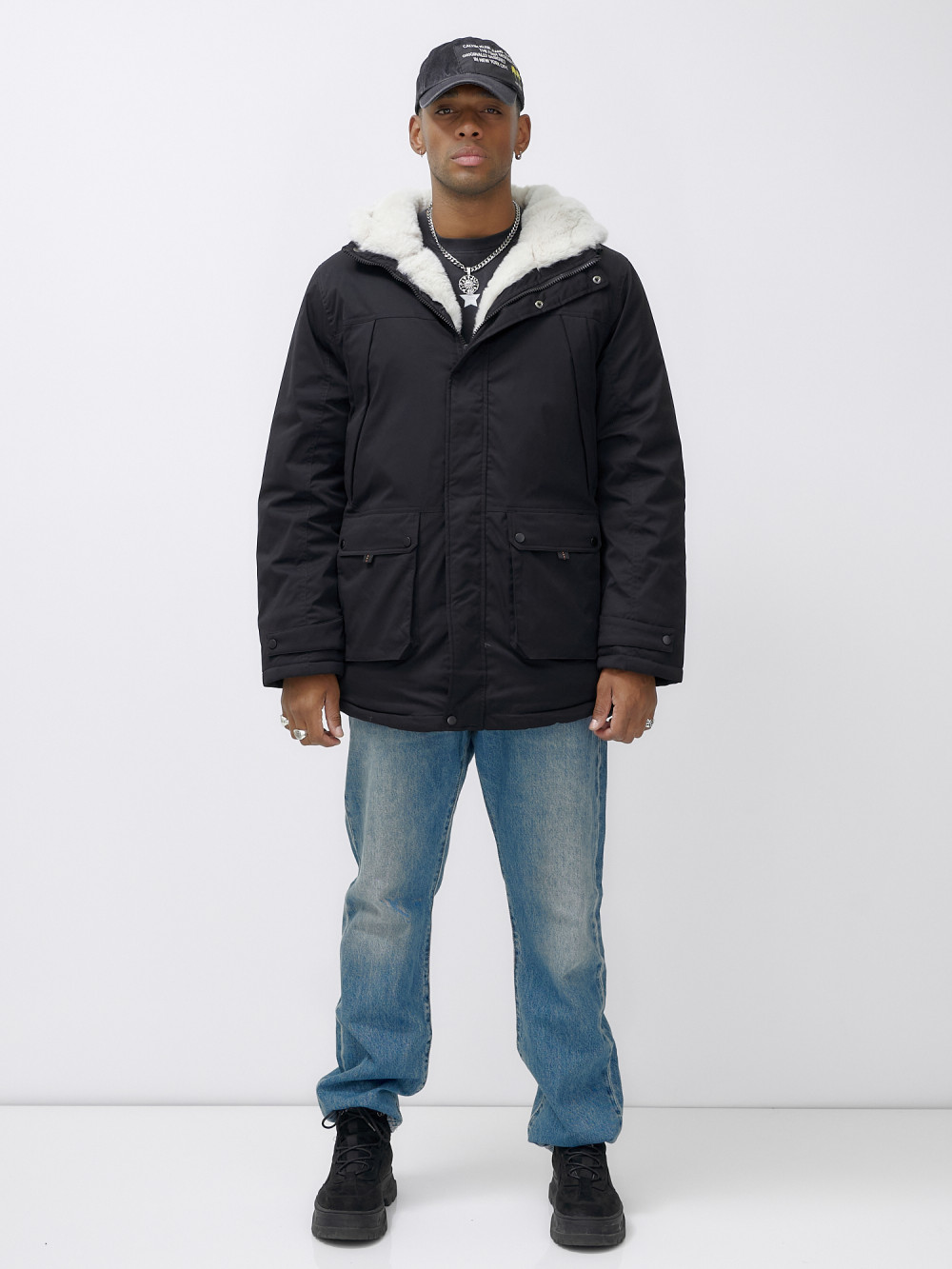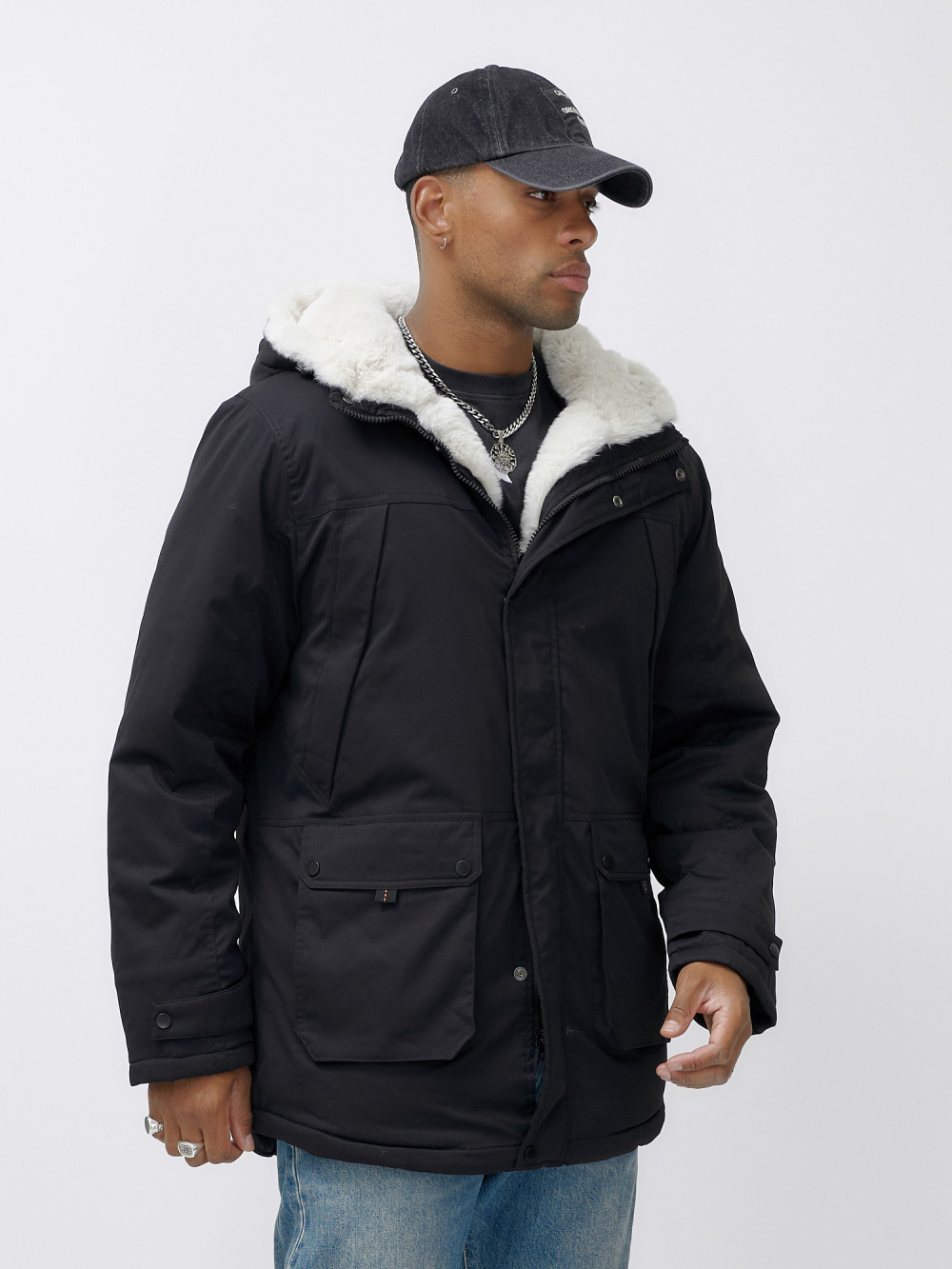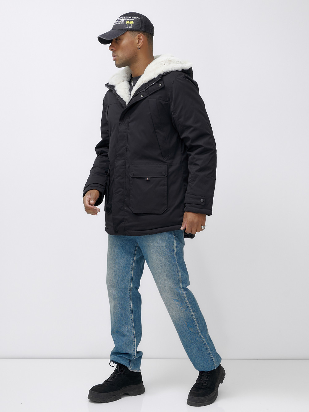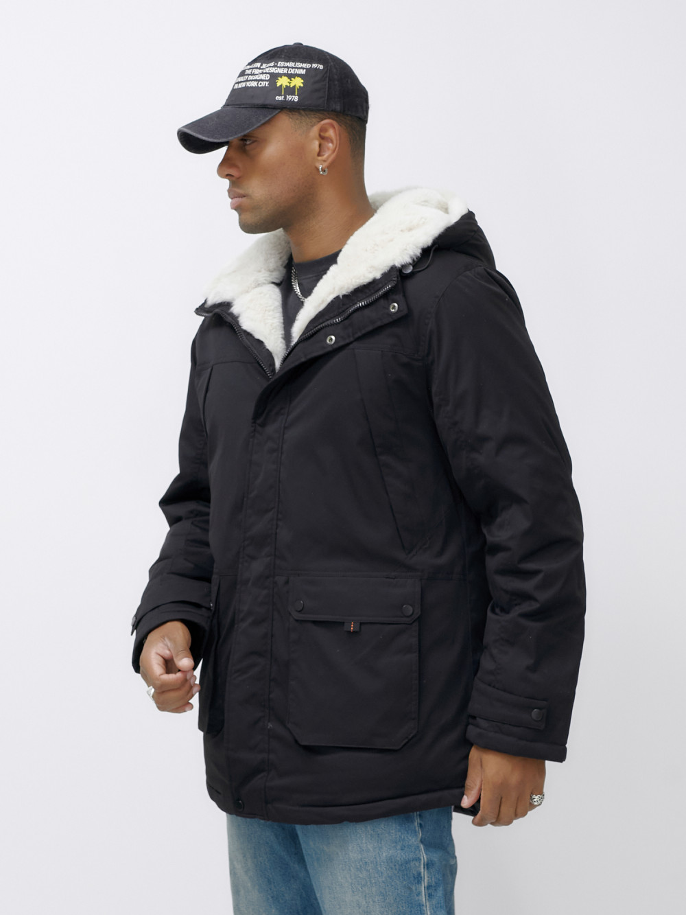 Парка мужская зимняя удлиненная с мехом черного цвета 8753Ch — MG