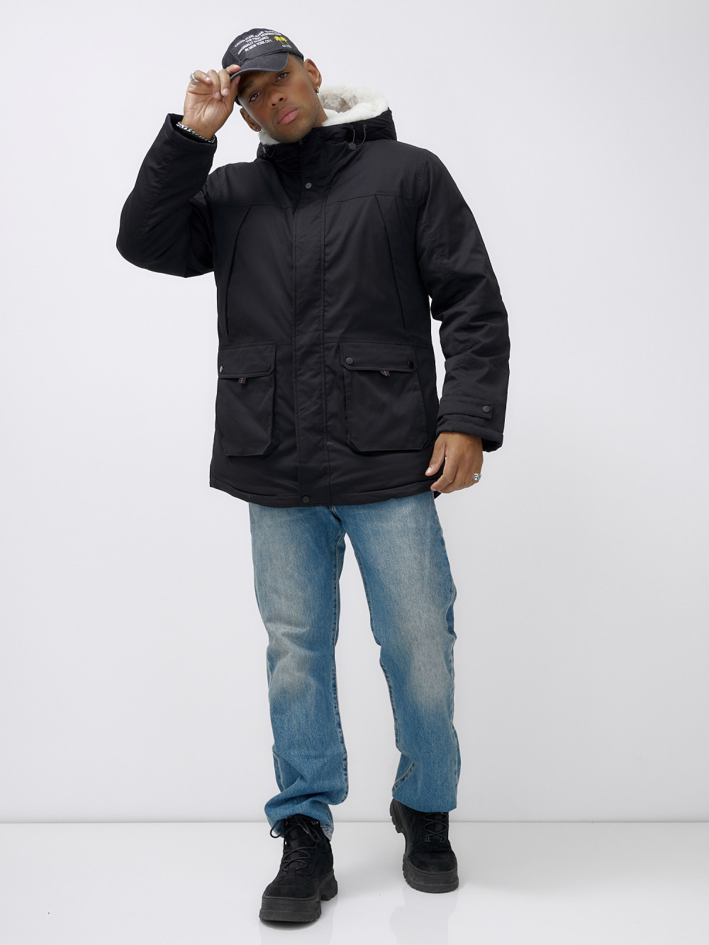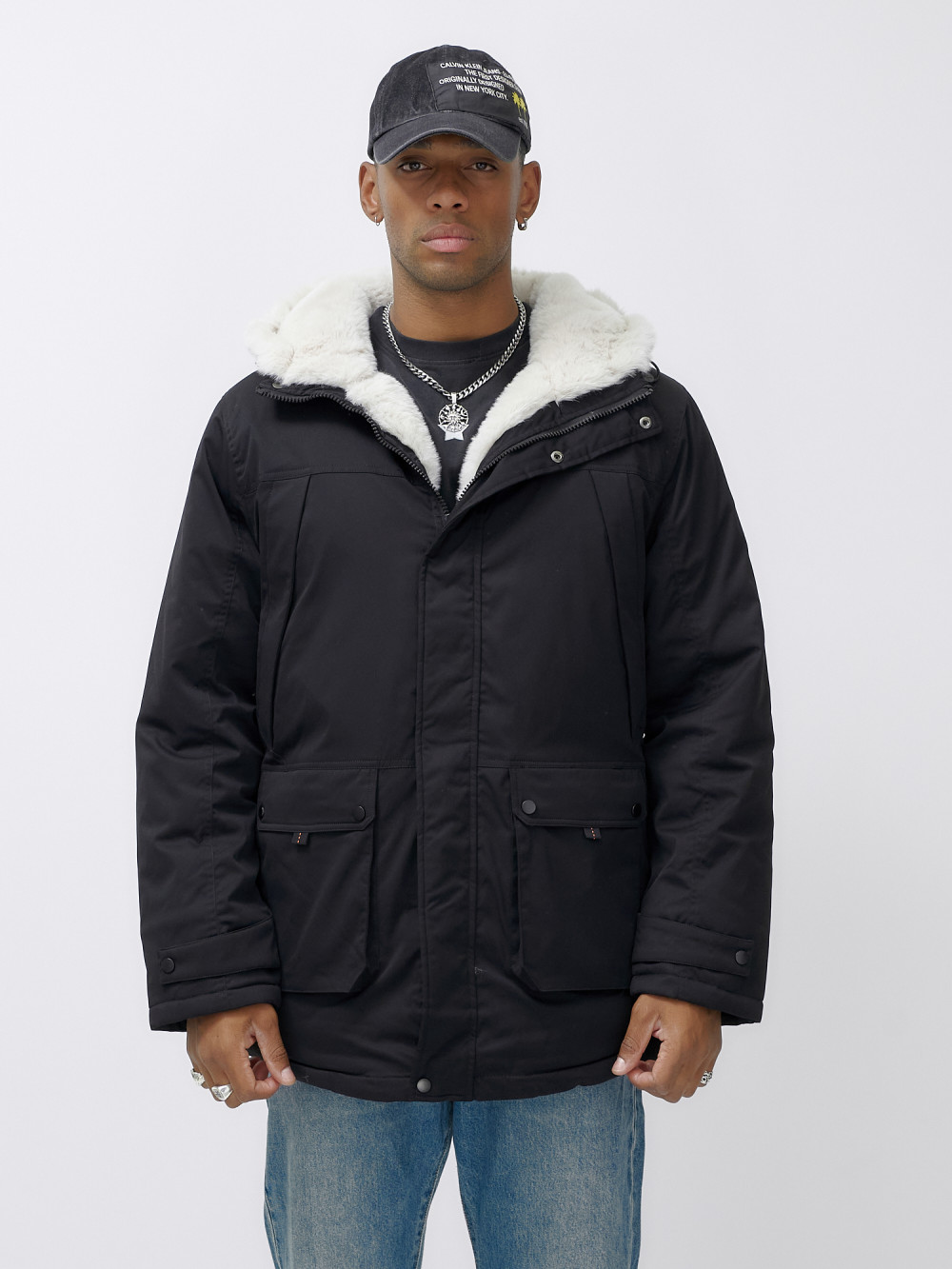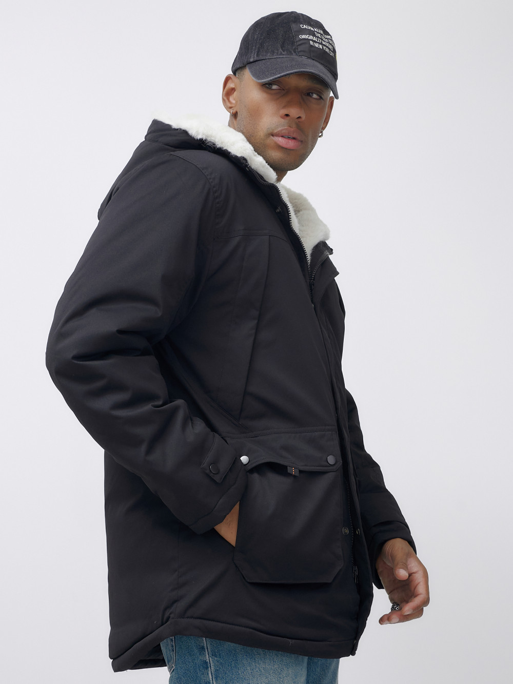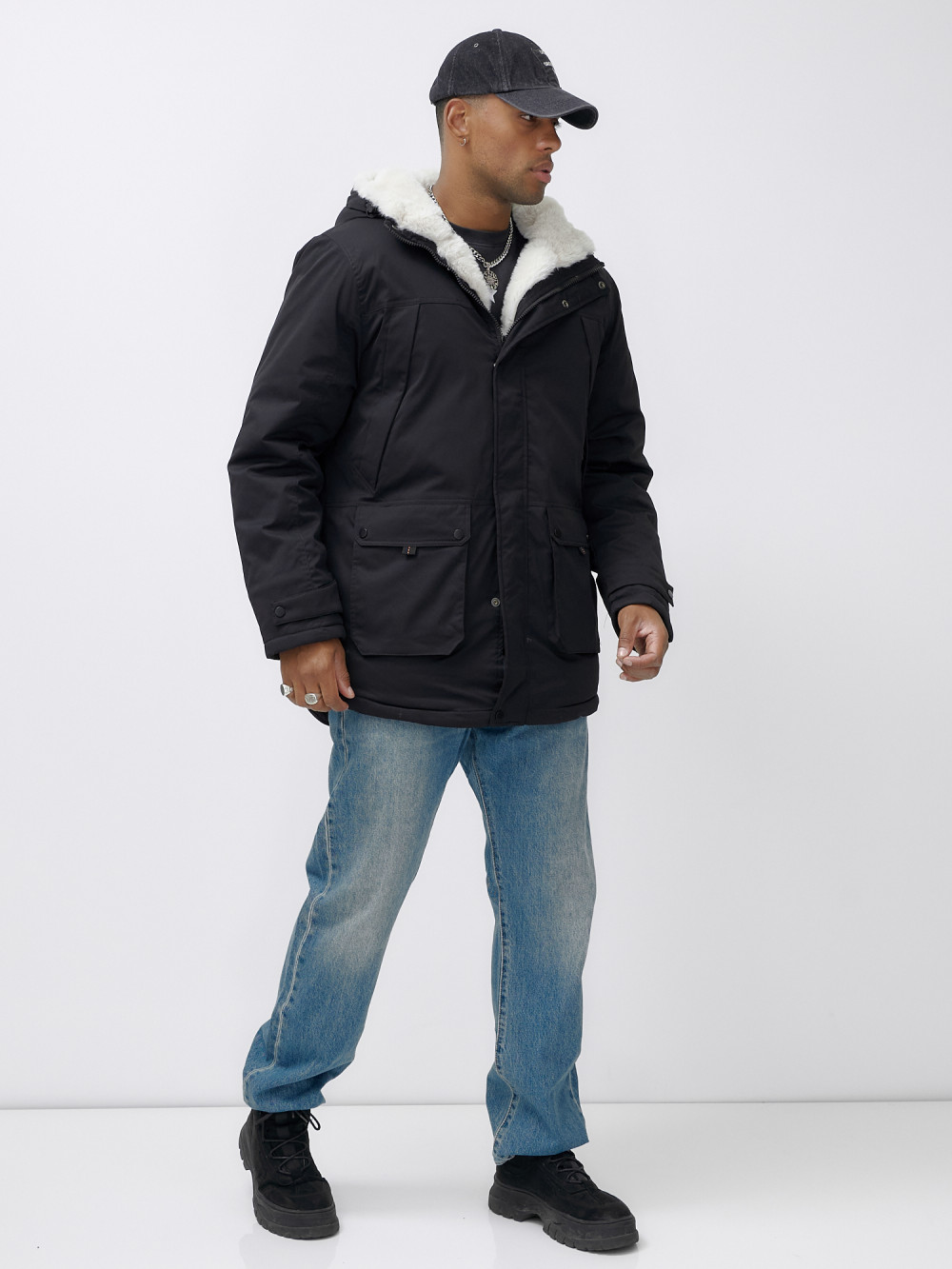 Парка мужская зимняя удлиненная с мехом черного цвета 8753Ch — MG