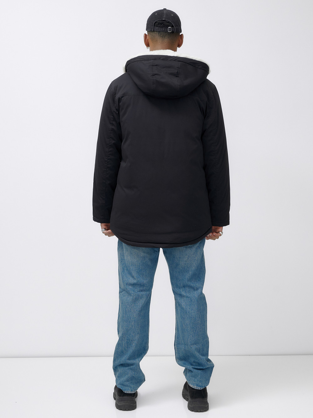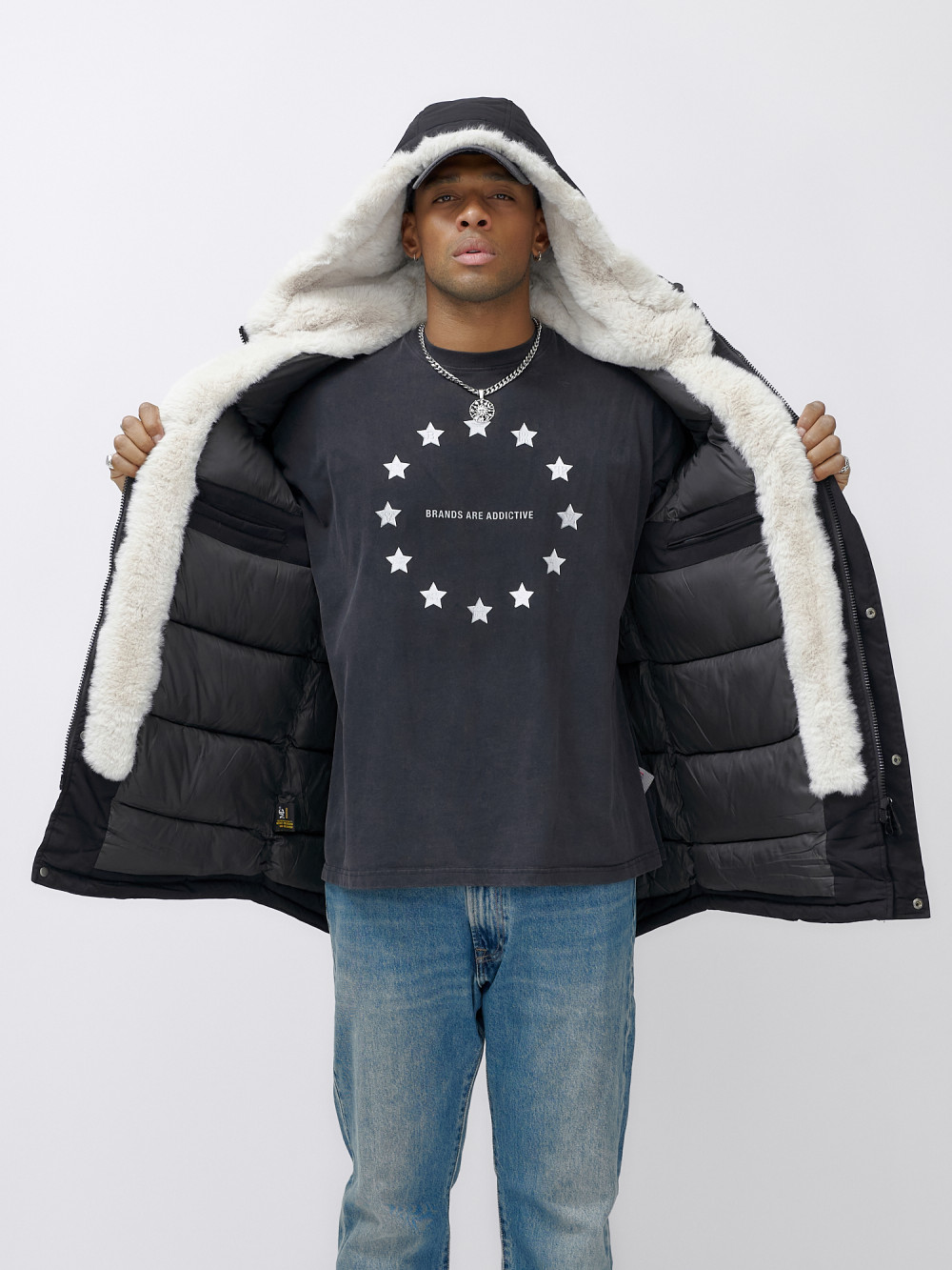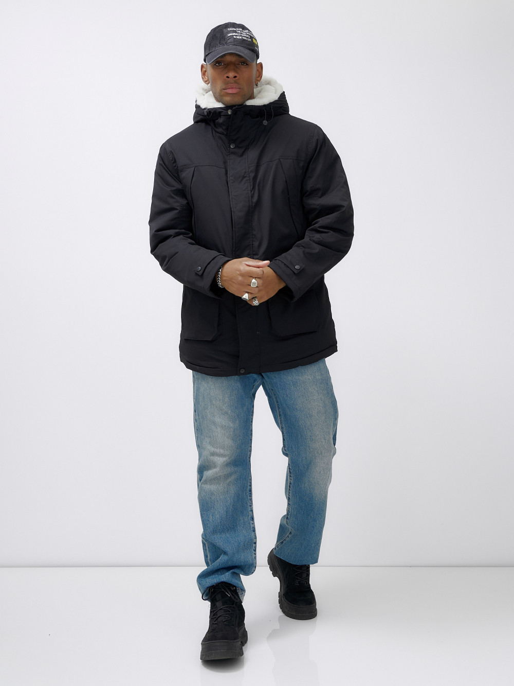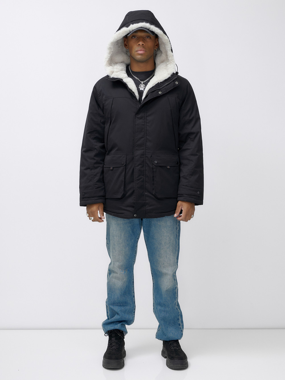 Парка мужская зимняя удлиненная с мехом черного цвета 8753Ch — MG