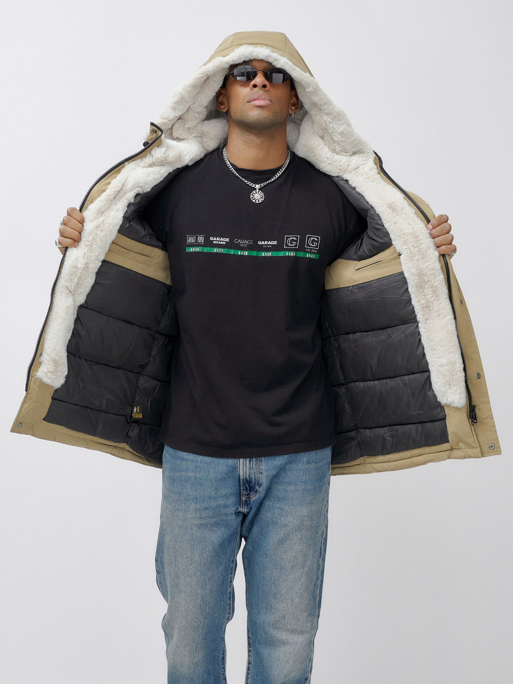 Парка мужская зимняя удлиненная с мехом горчичного цвета 8757G — MG