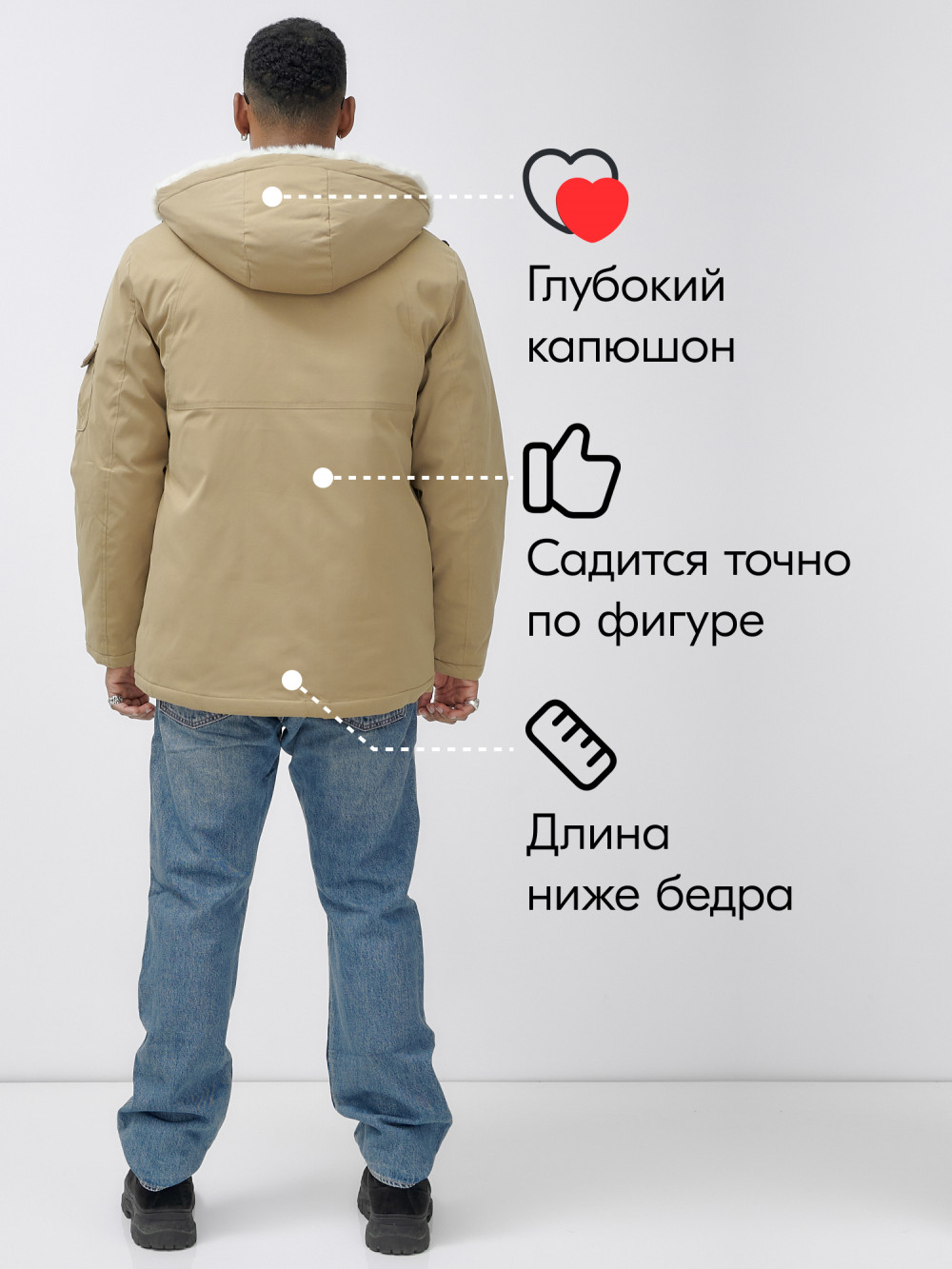 — Длина ниже бедра: Парка надежно закрывает спину и защищает от пронизывающего ветра, обеспечивая максимальный комфорт в холодные дни.
