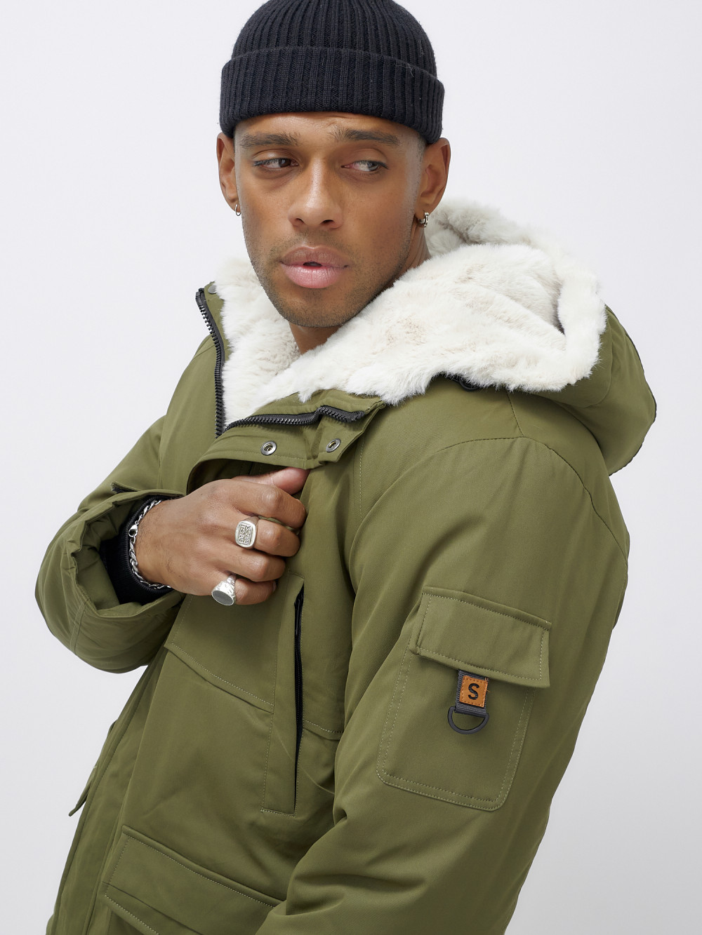 Парка мужская зимняя удлиненная с мехом хаки цвета 8751Kh