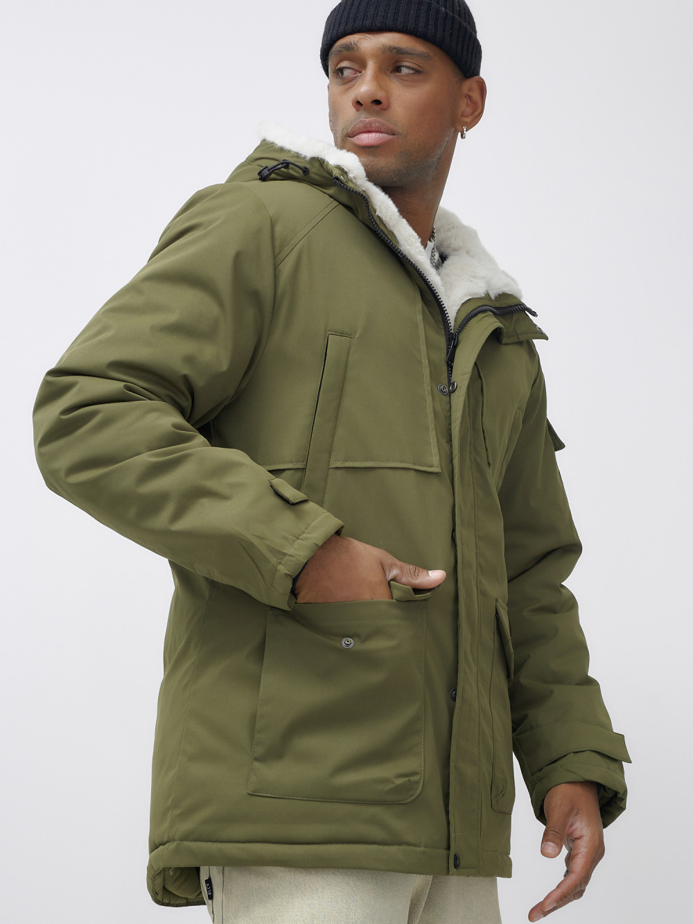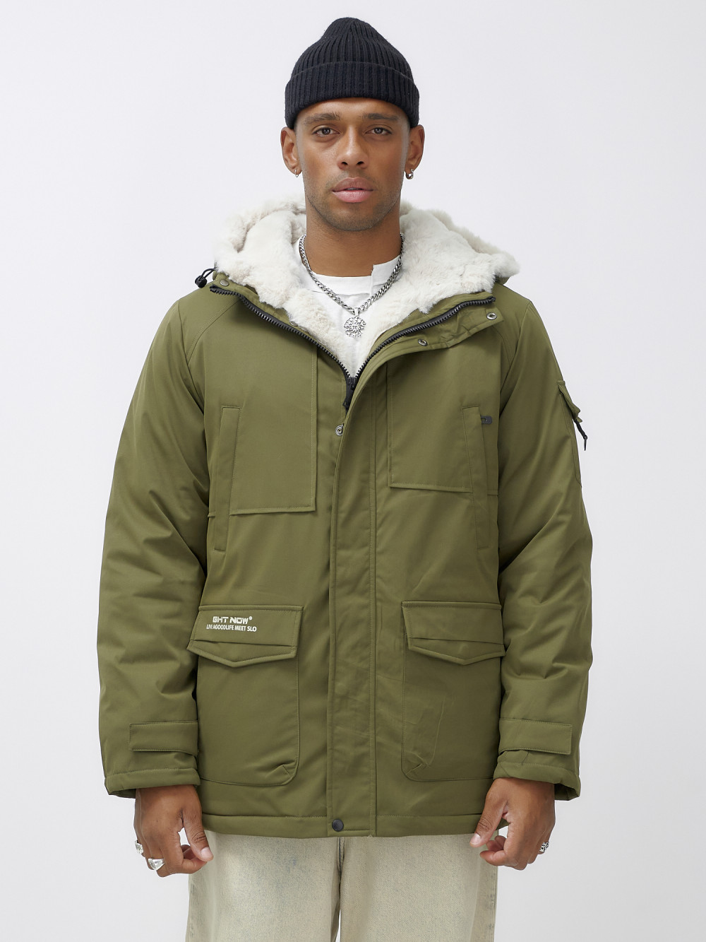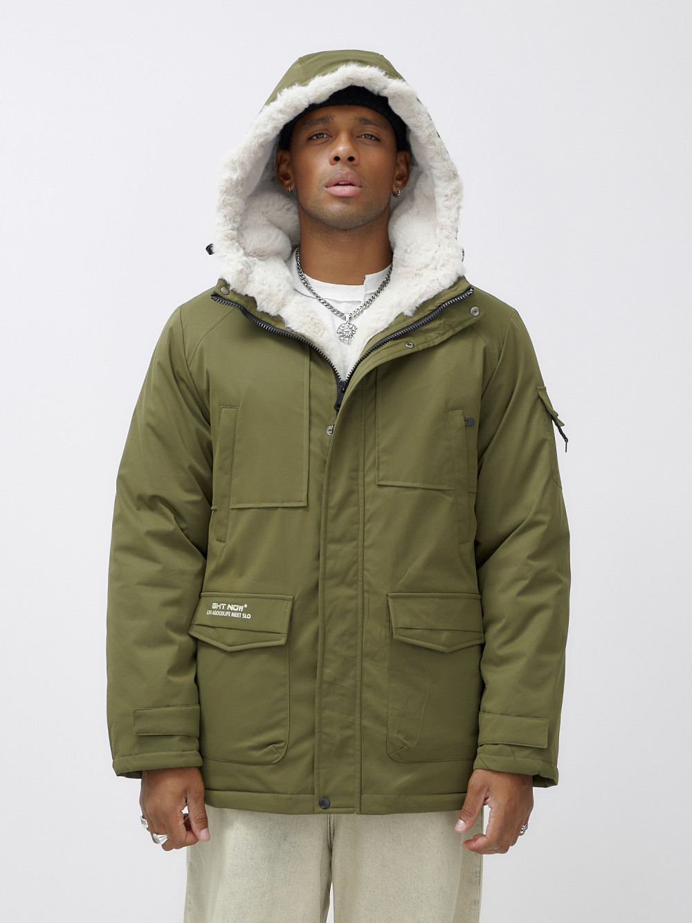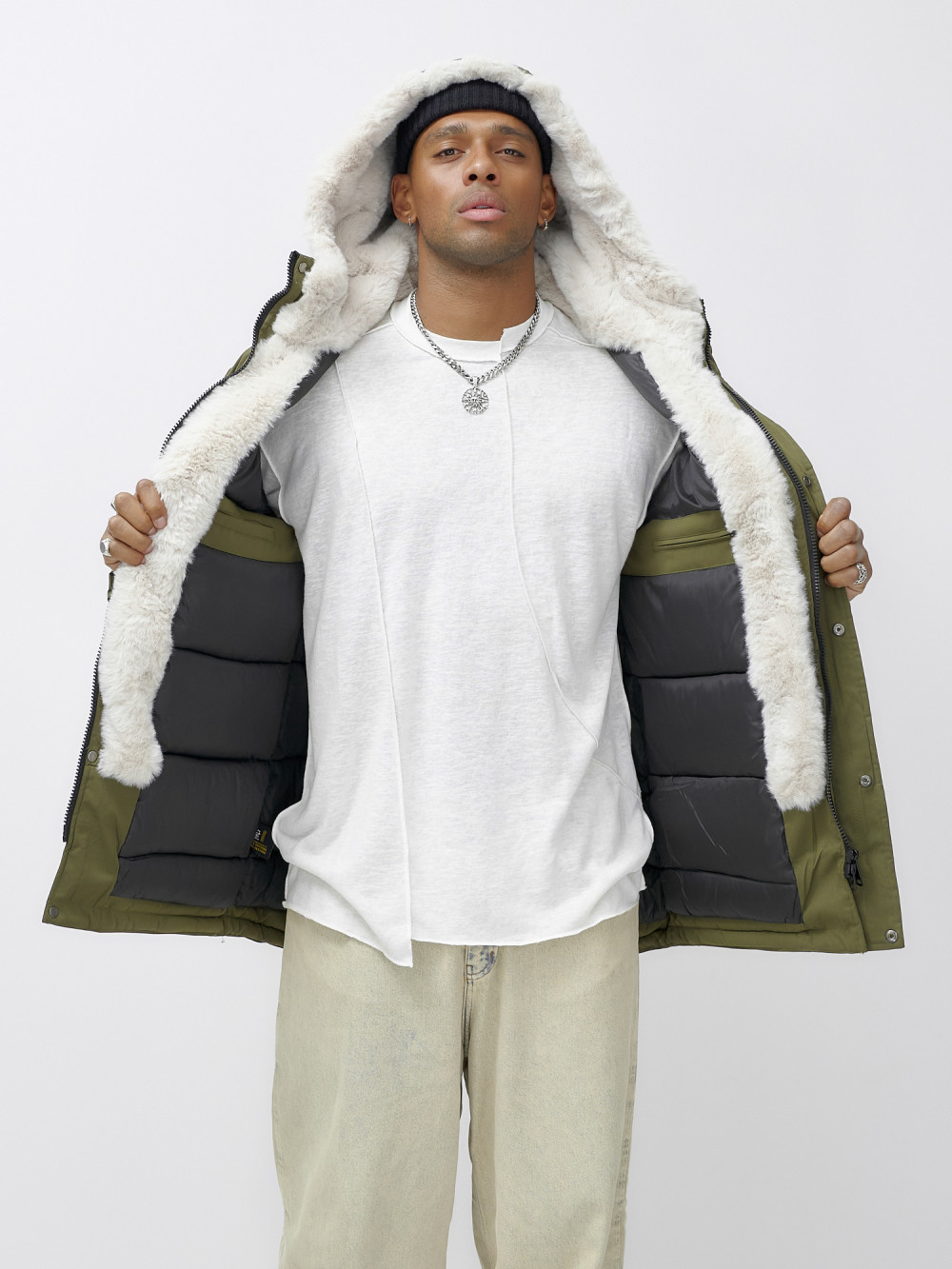 Парка мужская зимняя удлиненная с мехом хаки цвета 8751Kh — MG