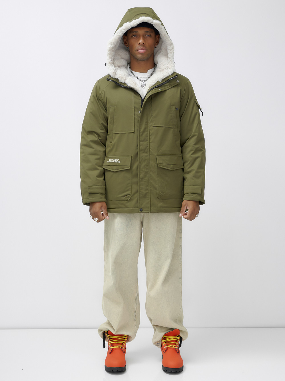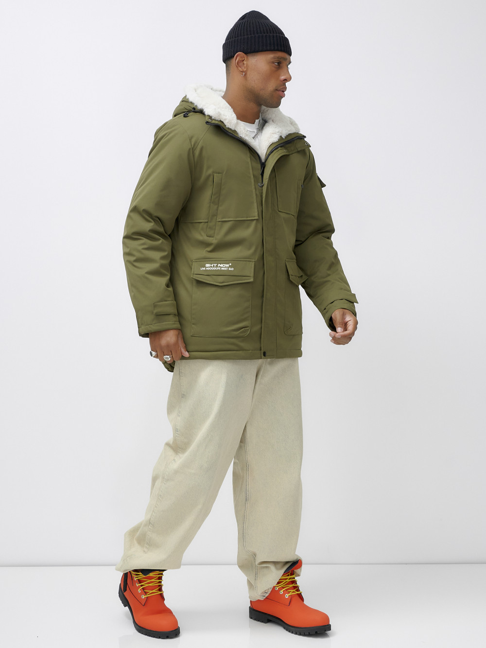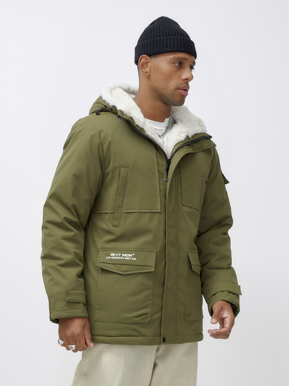 Парка мужская зимняя удлиненная с мехом хаки цвета 8751Kh — MG