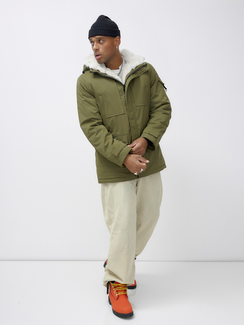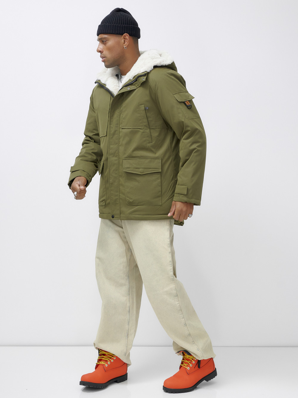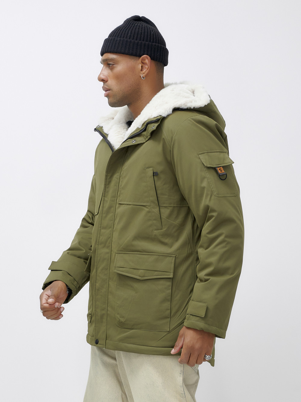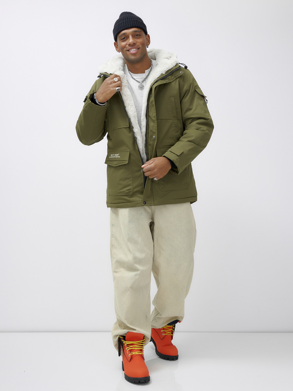 Парка мужская зимняя удлиненная с мехом хаки цвета 8751Kh — MG
