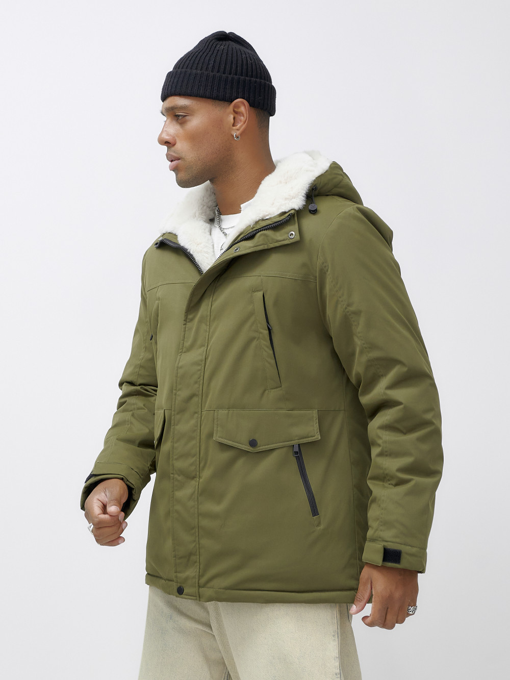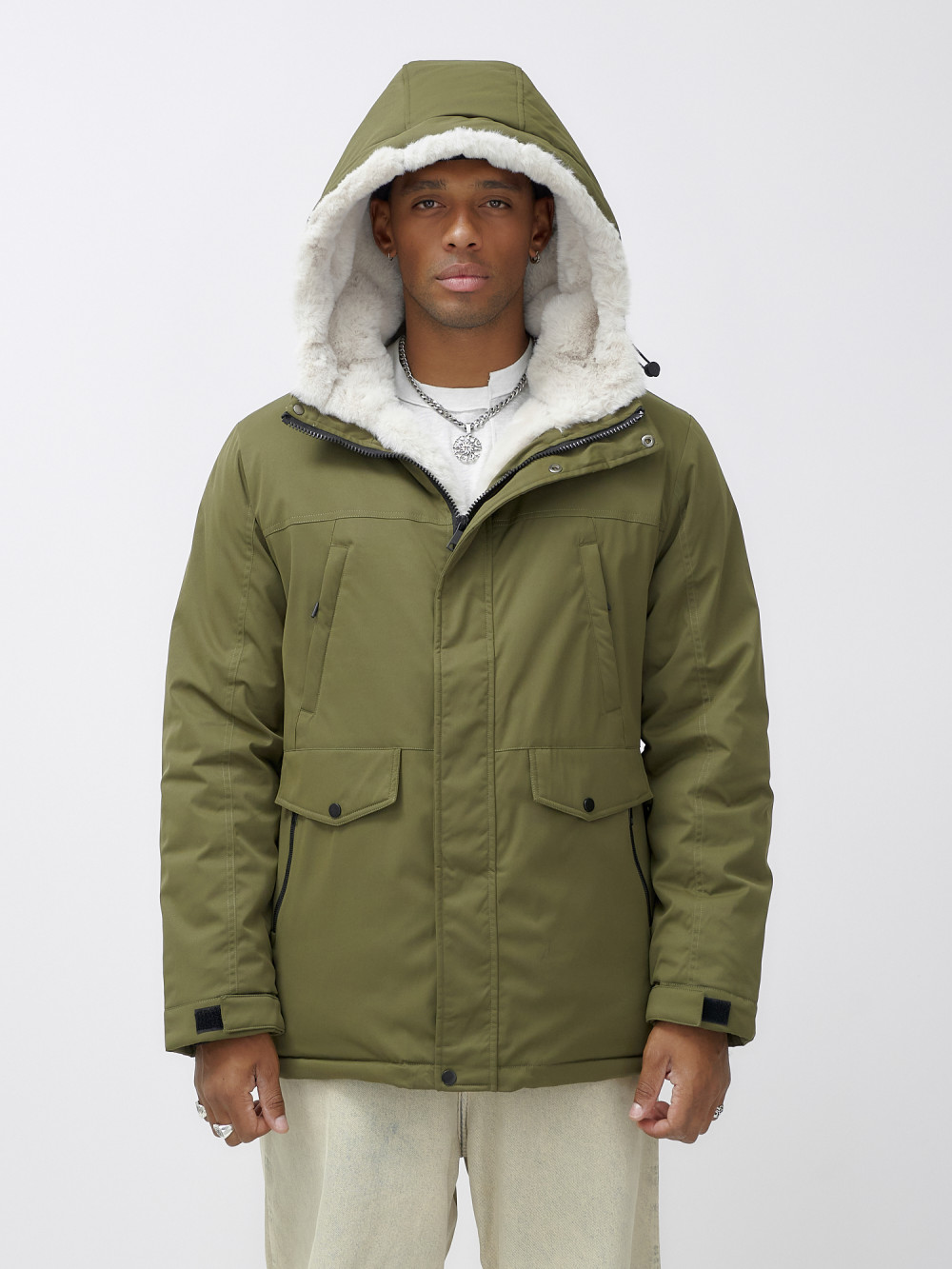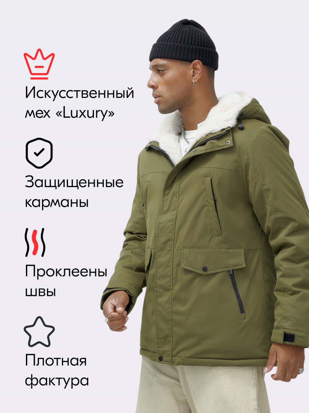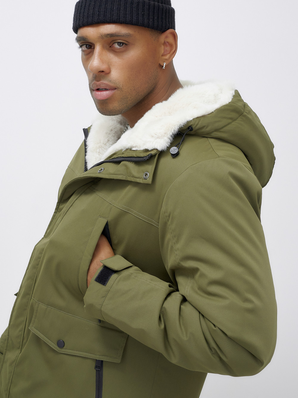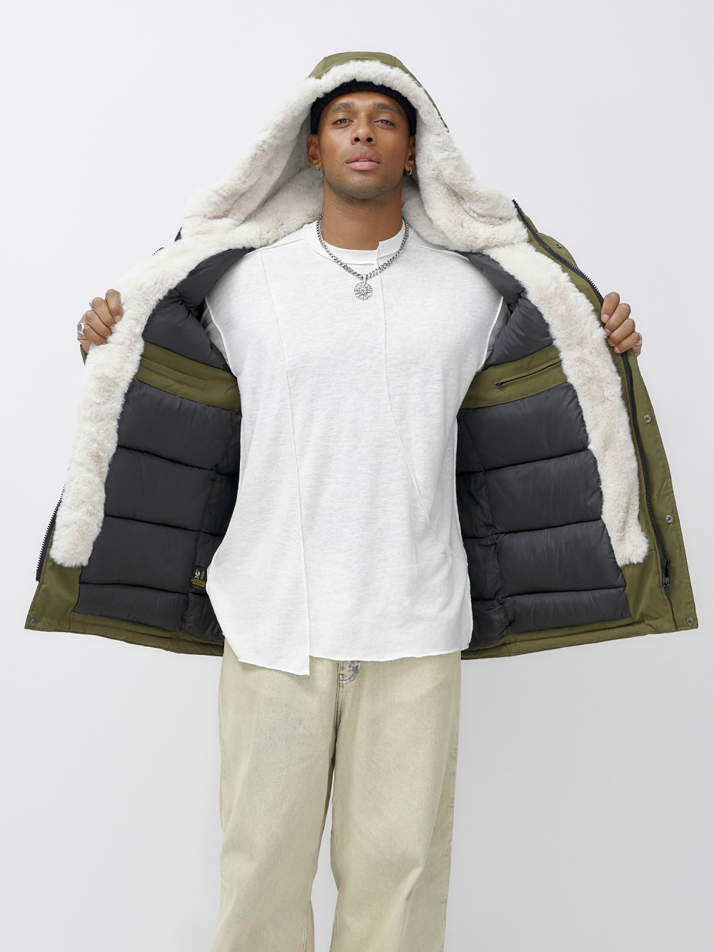 Парка мужская зимняя удлиненная с мехом хаки цвета 8755Kh — MG