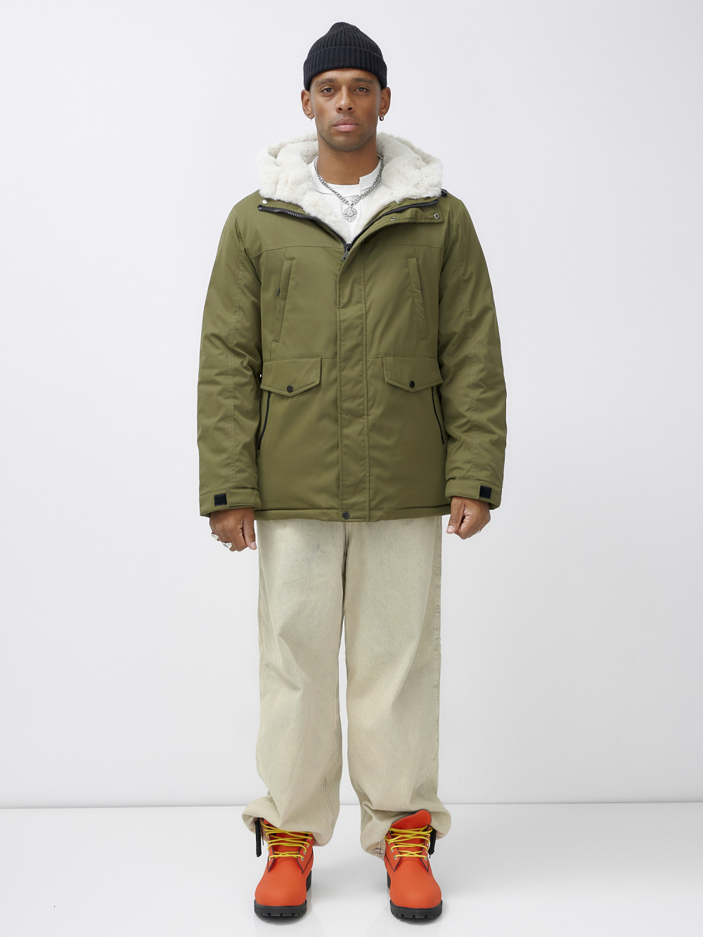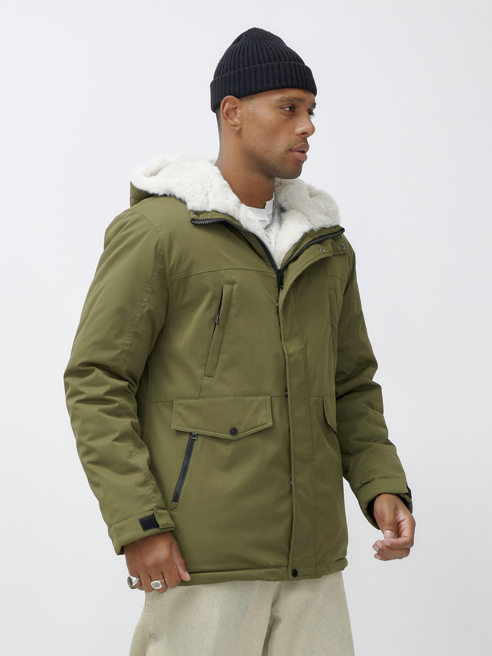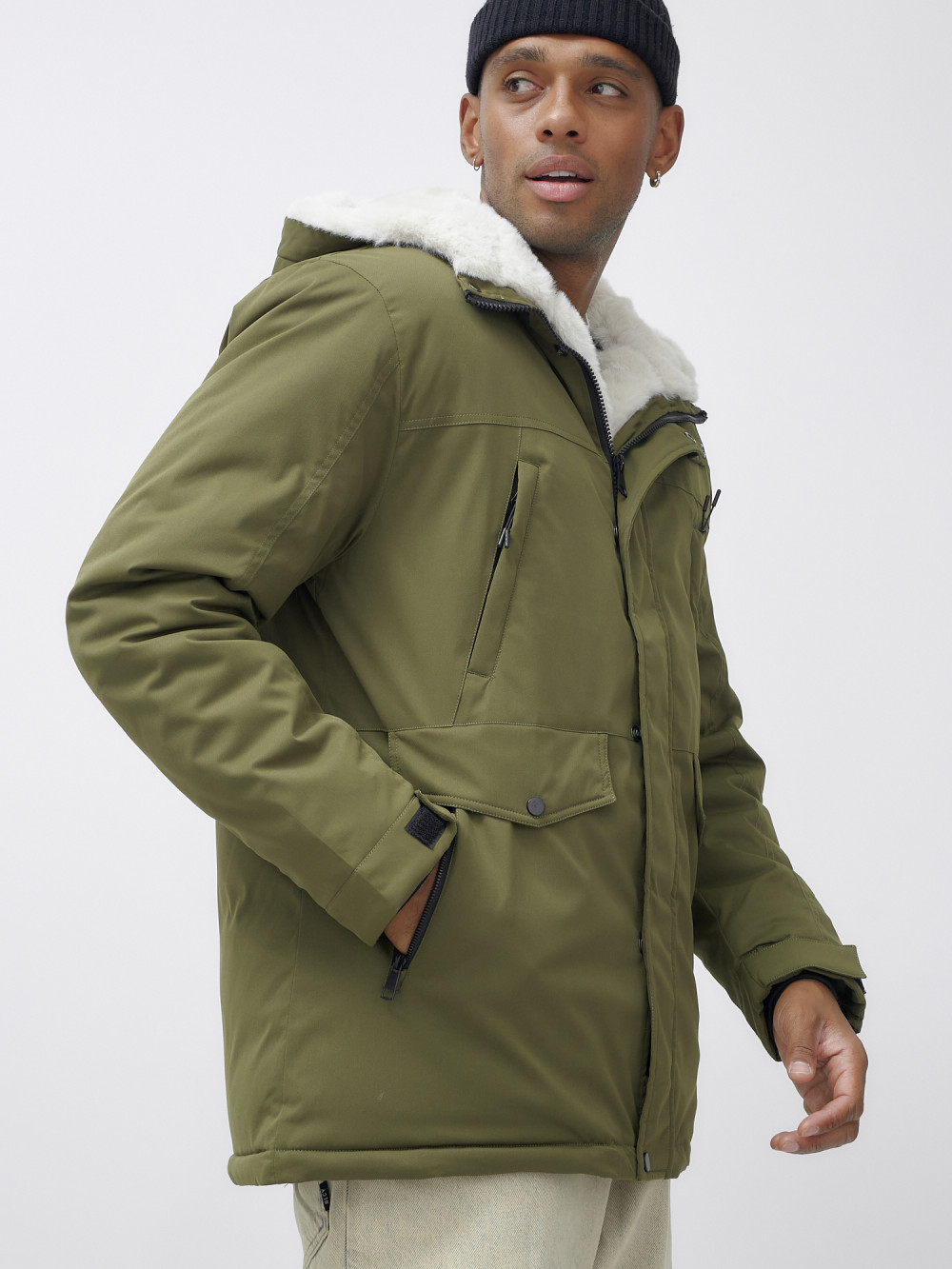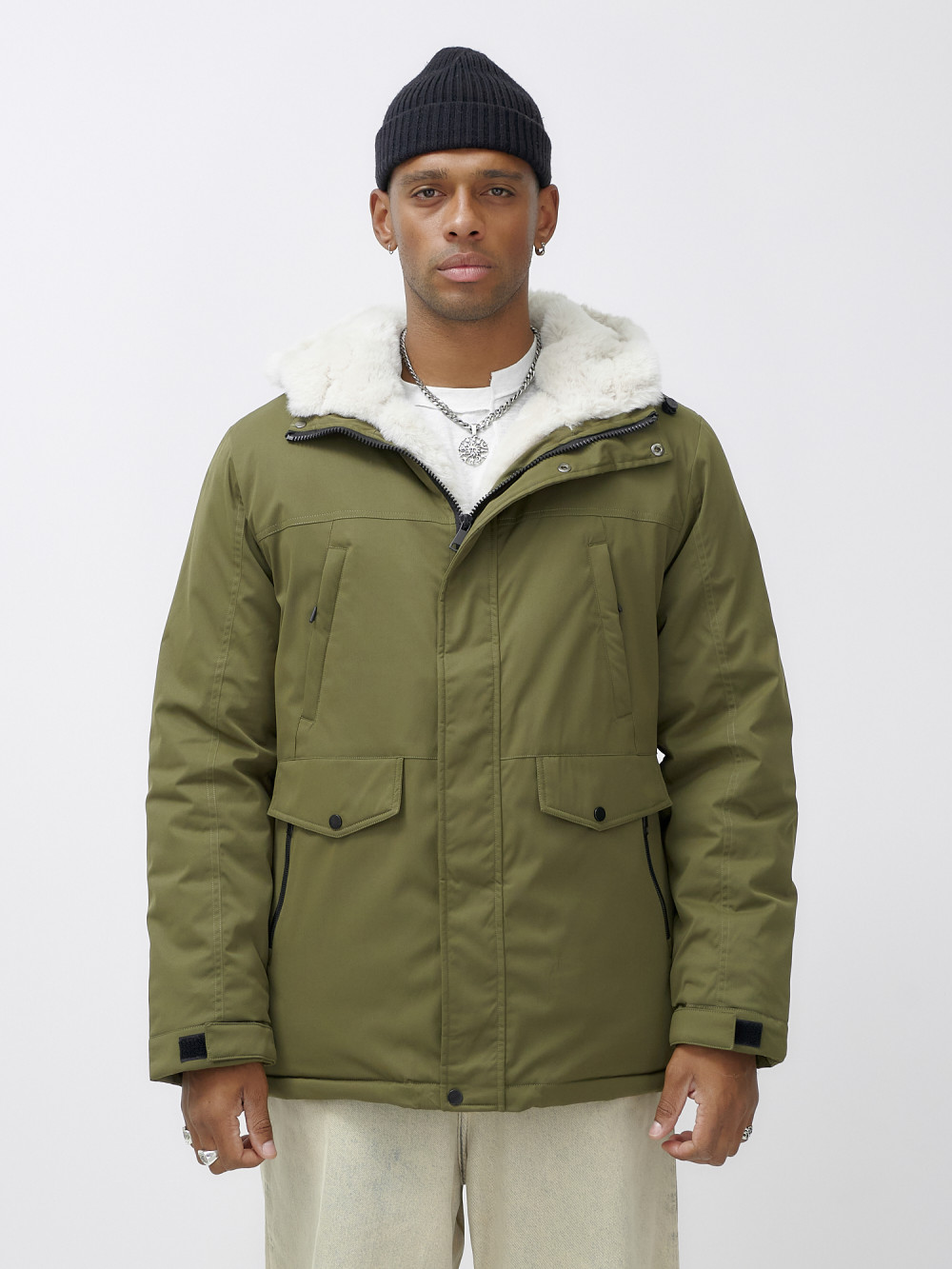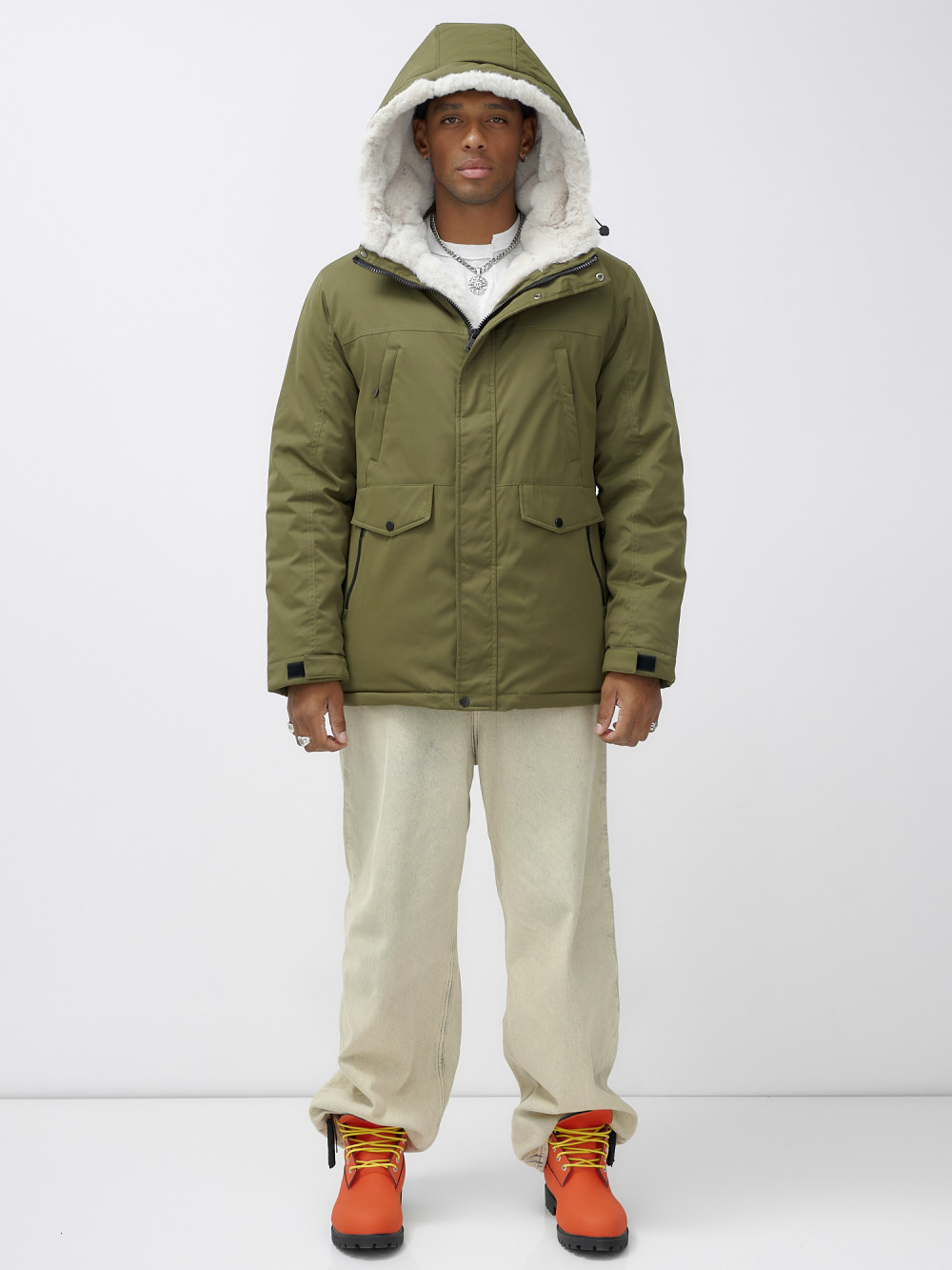 Парка мужская зимняя удлиненная с мехом хаки цвета 8755Kh — MG