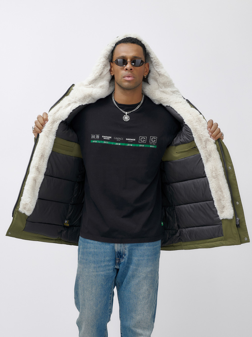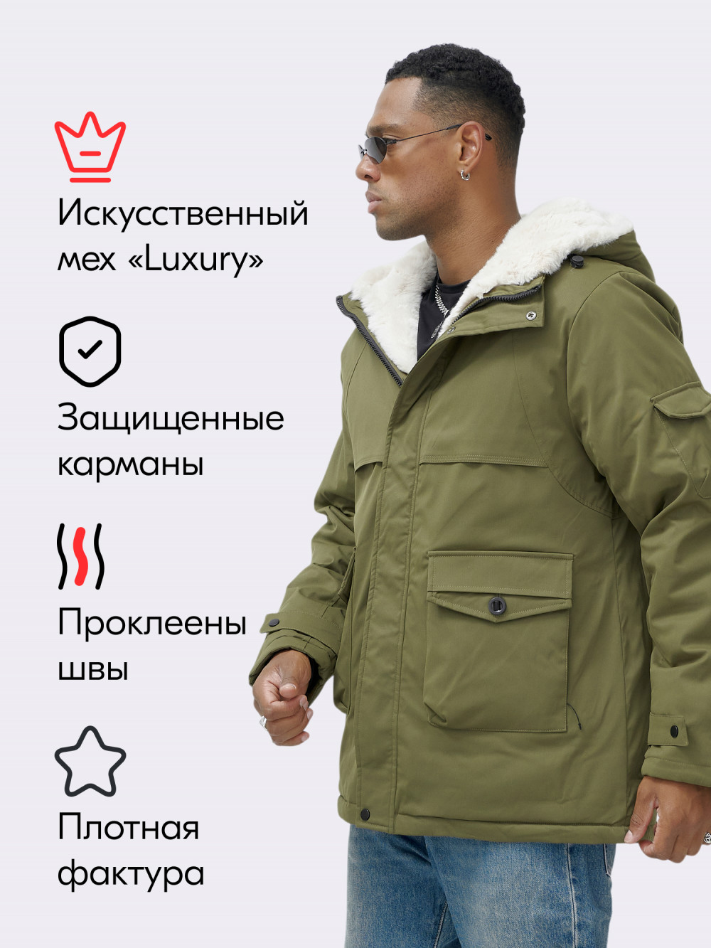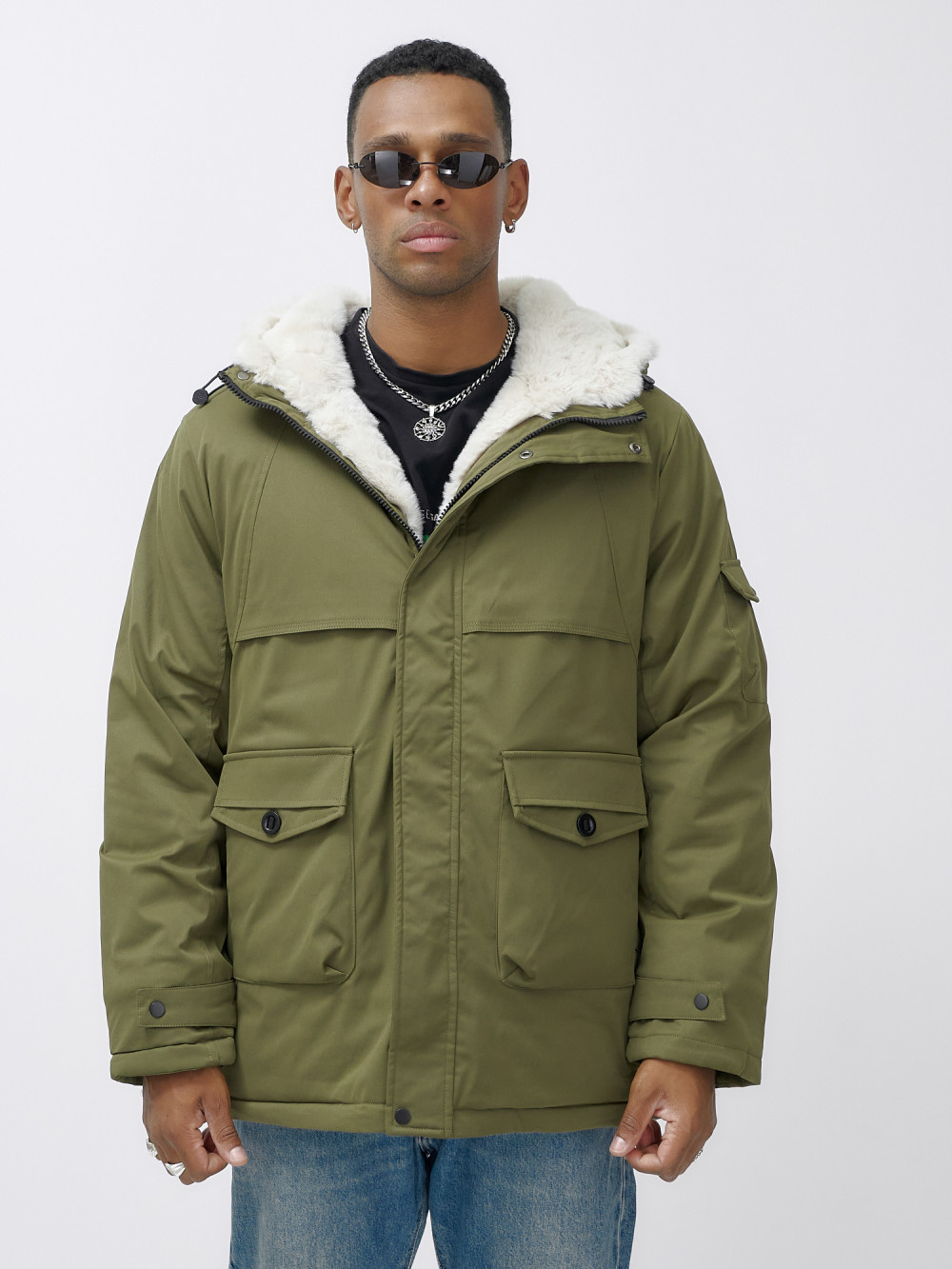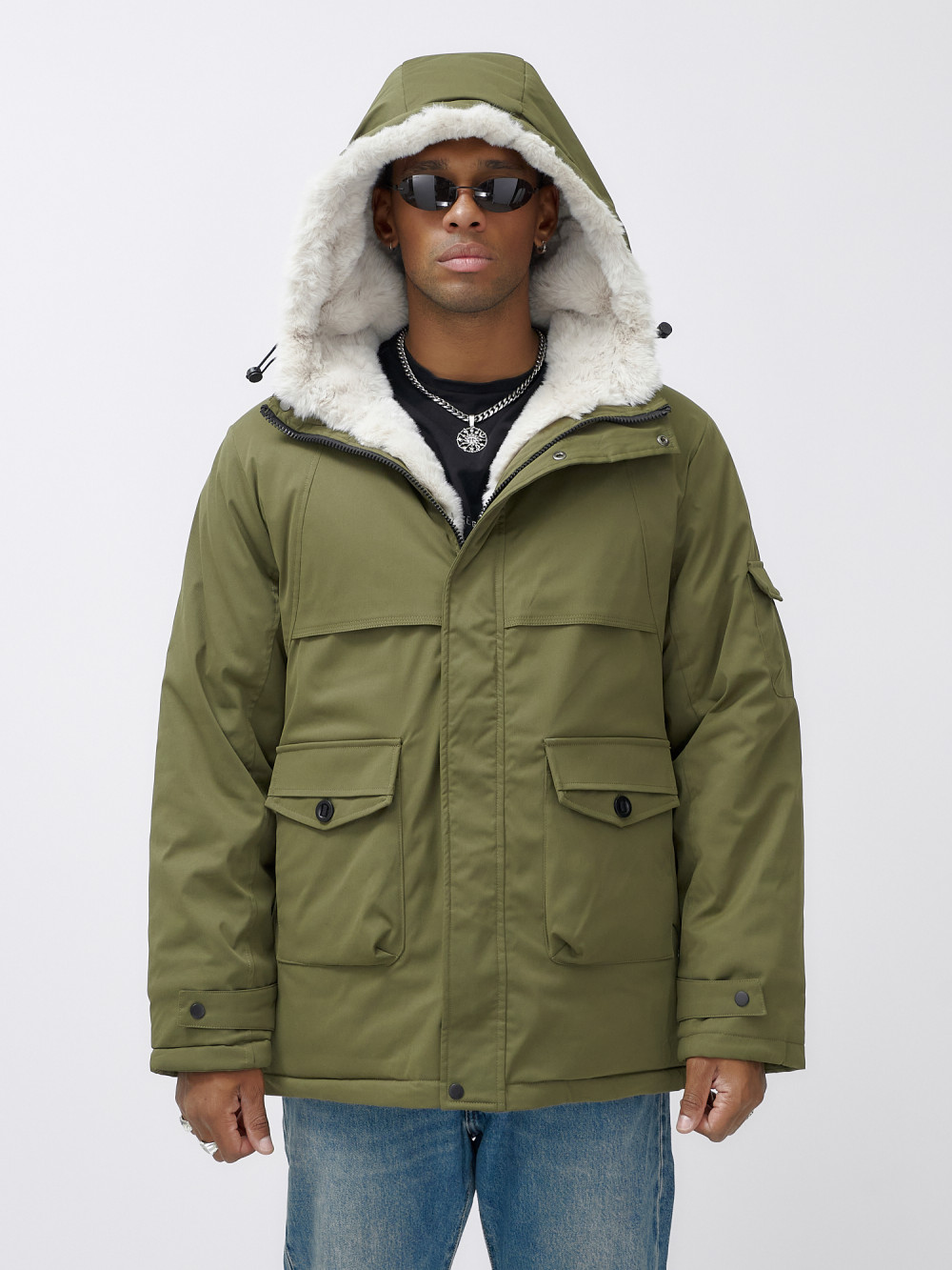 Парка мужская зимняя удлиненная с мехом хаки цвета 8757Kh — MG