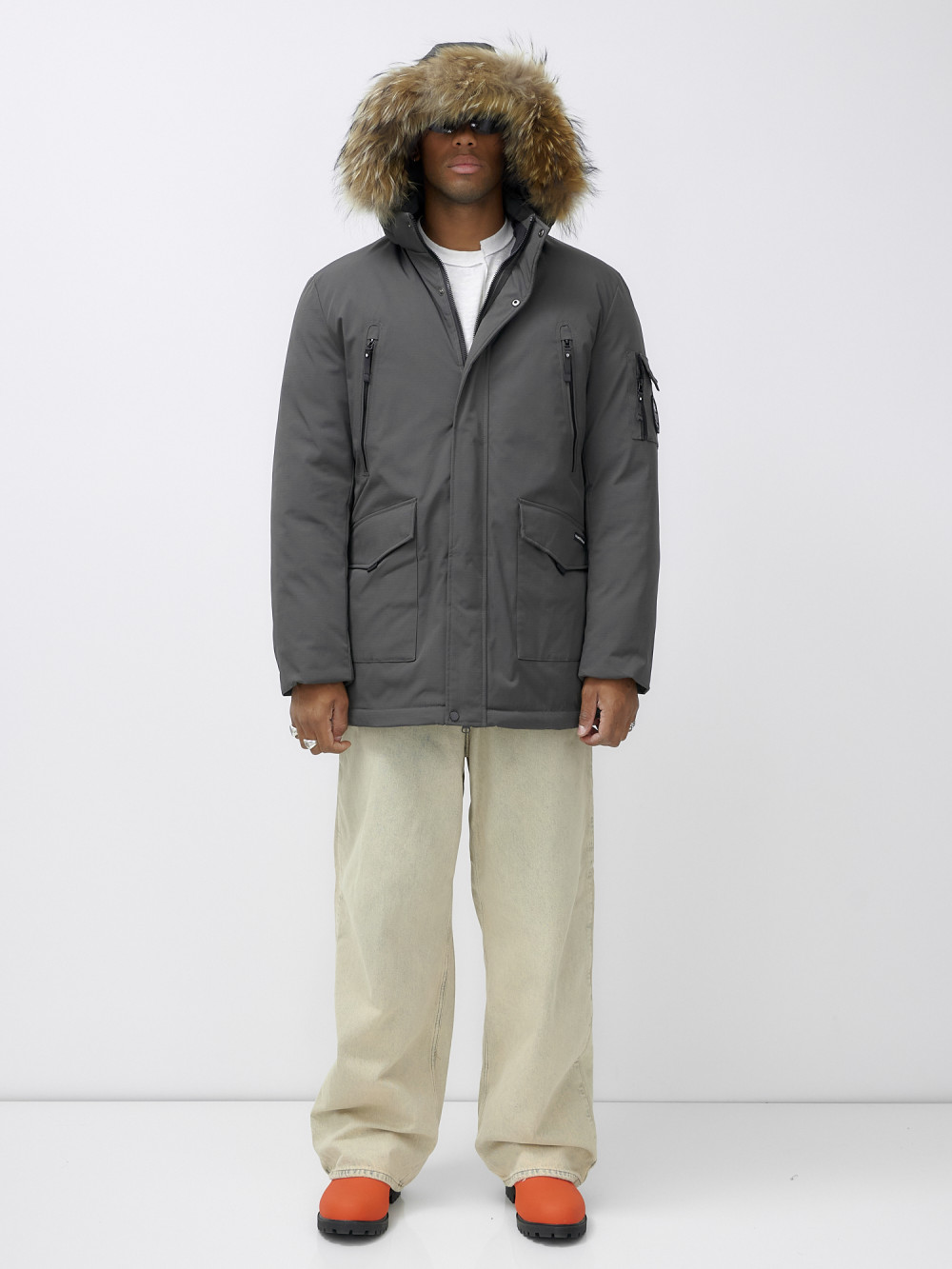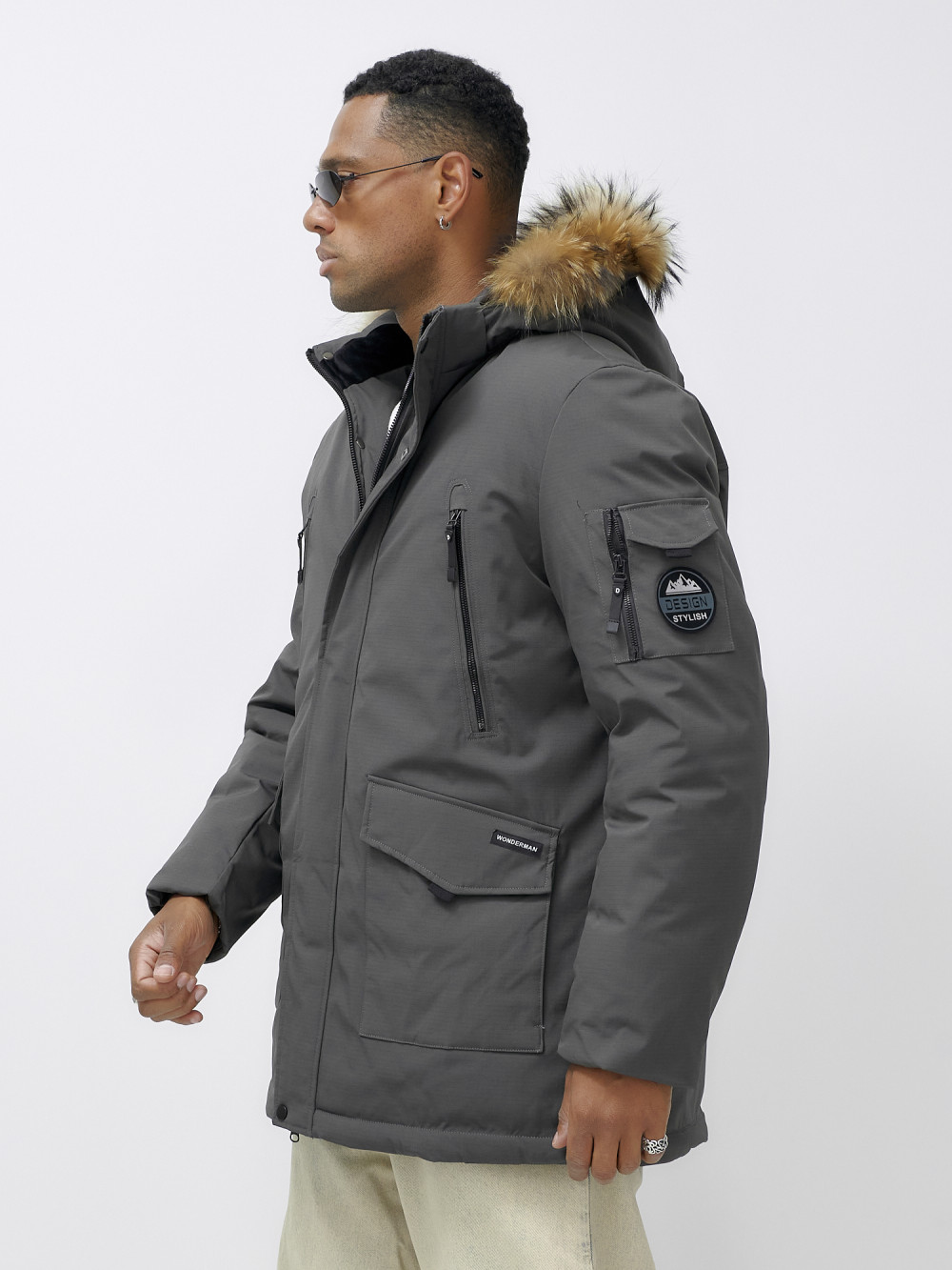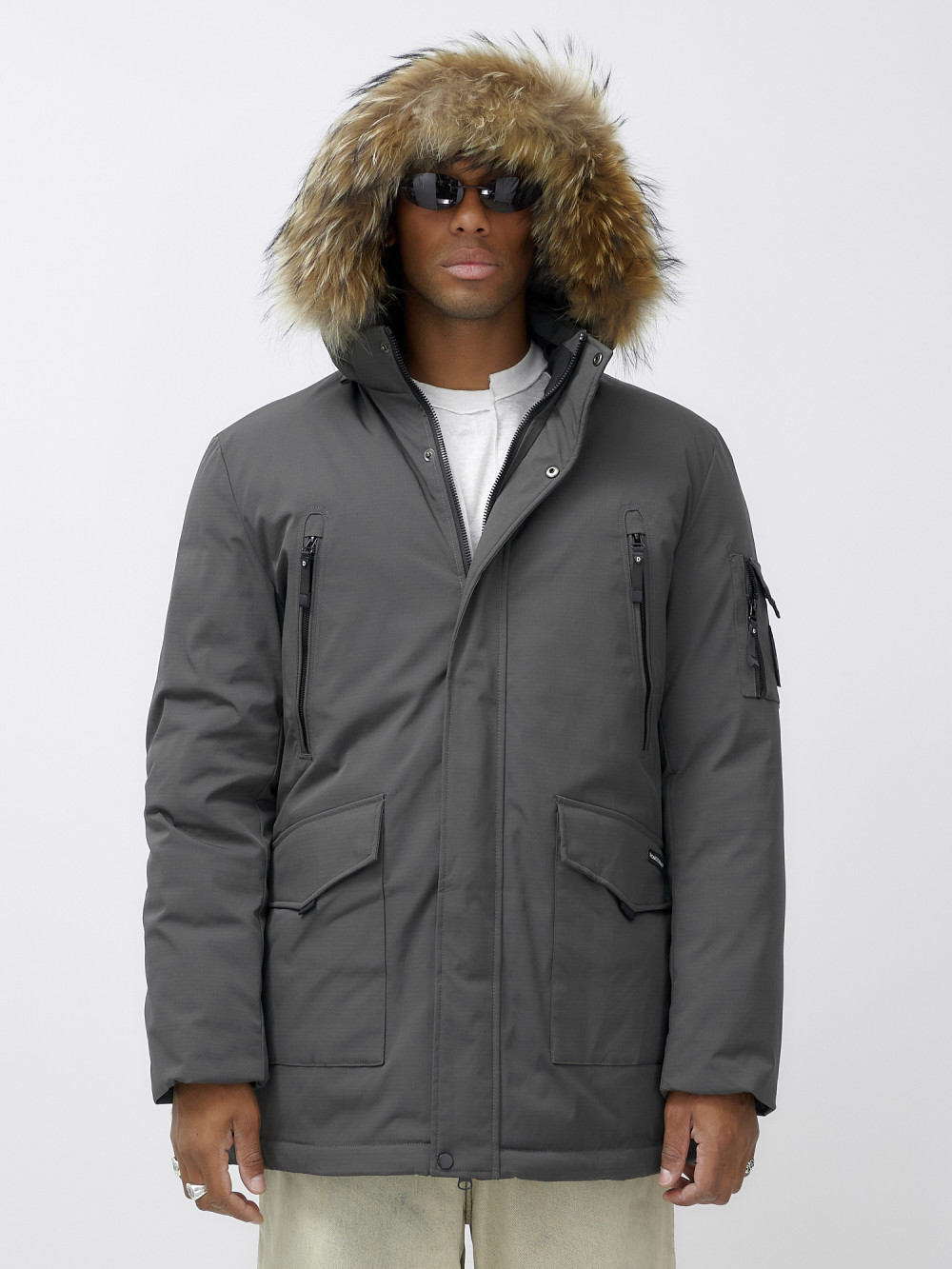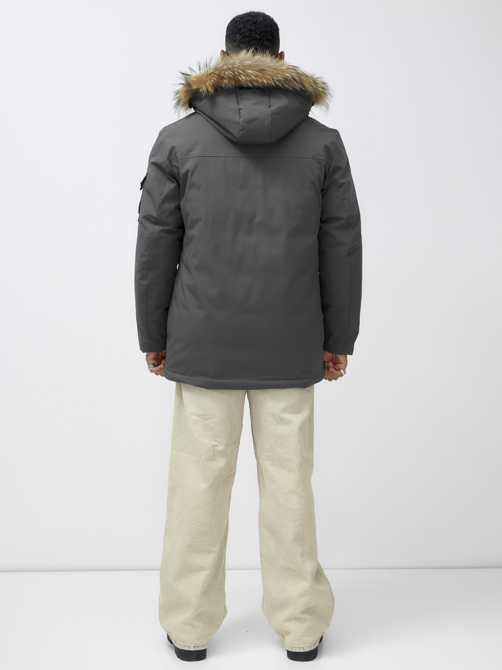 Парка мужская зимняя удлиненная с мехом темно-серого цвета 602_1TC — WONDERRMAN