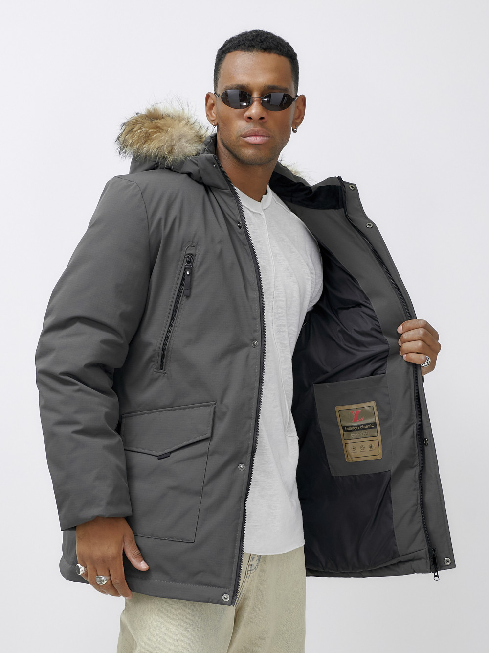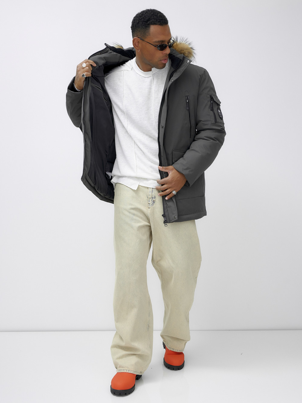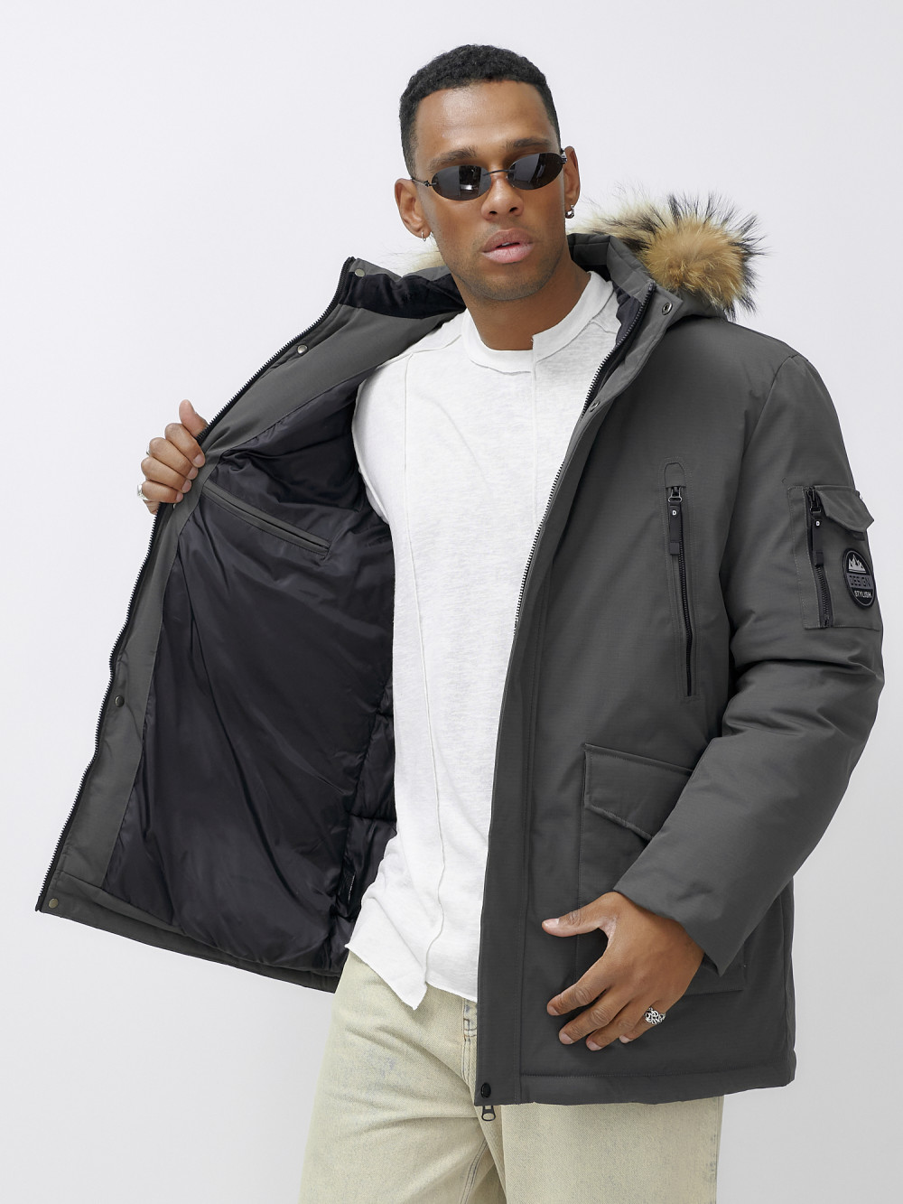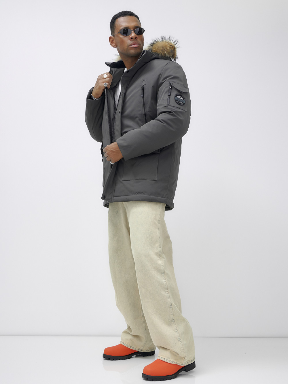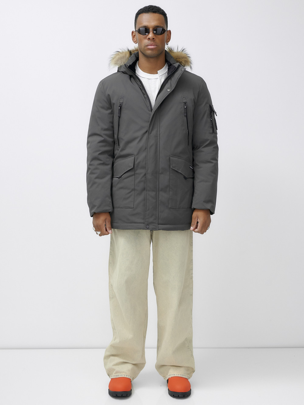 Парка мужская зимняя удлиненная с мехом темно-серого цвета 602_1TC — WONDERRMAN