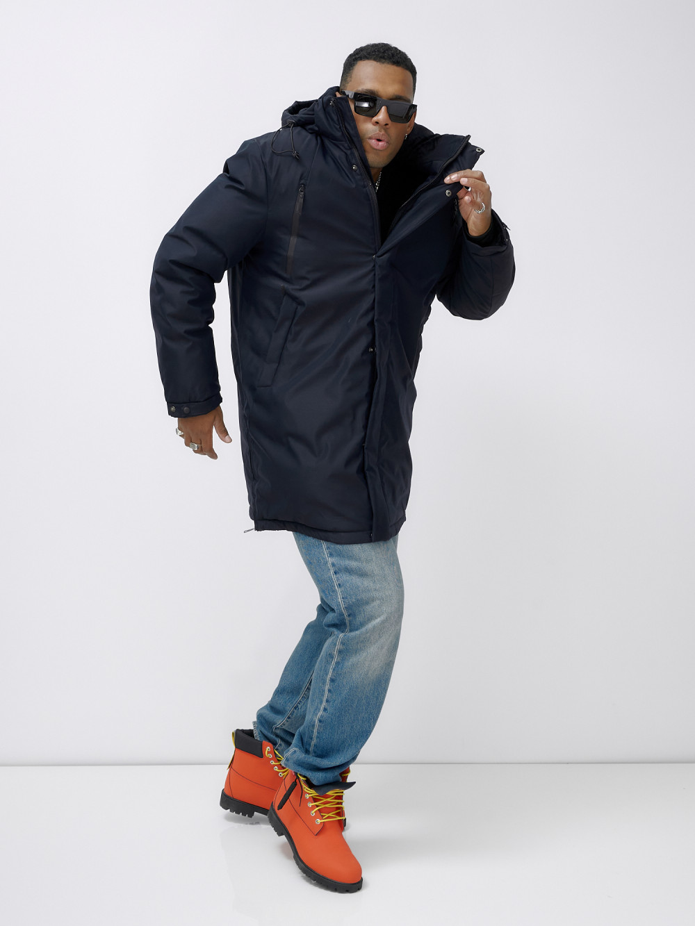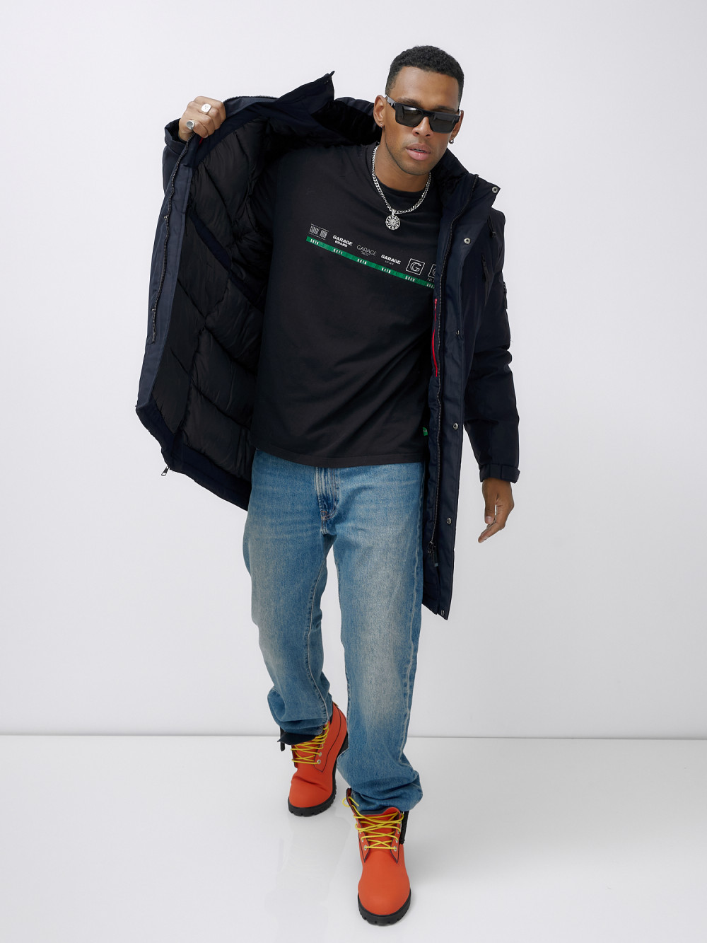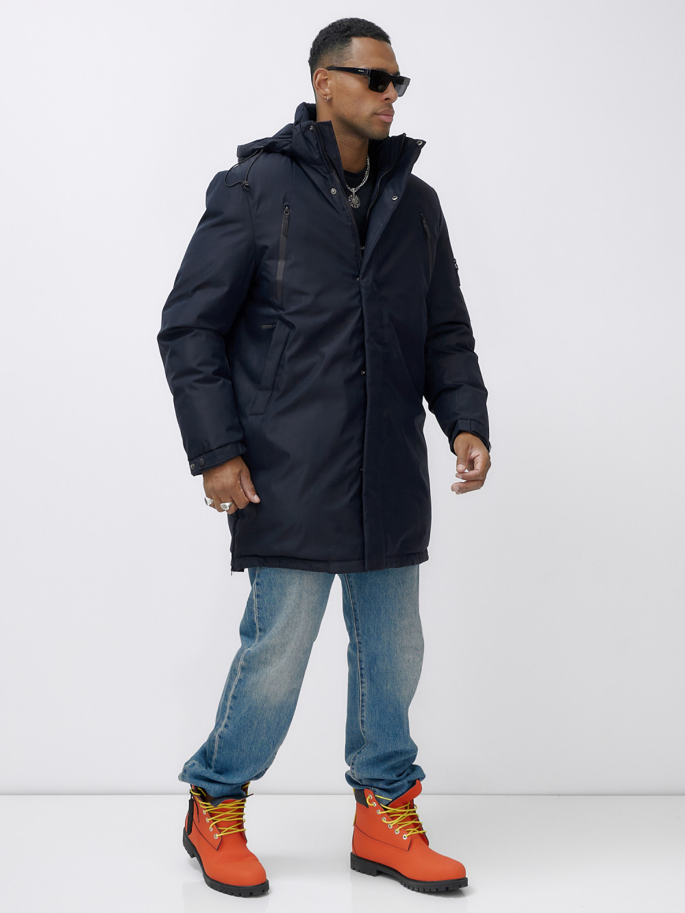 Парка мужская зимняя удлиненная темно-синего цвета 8385TS — WONDERRMAN