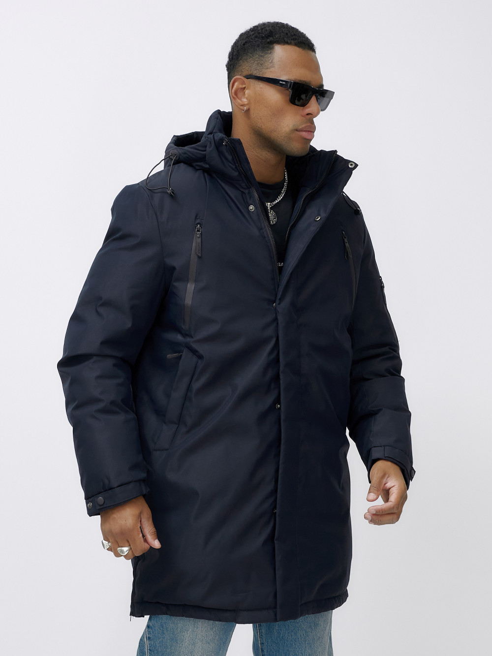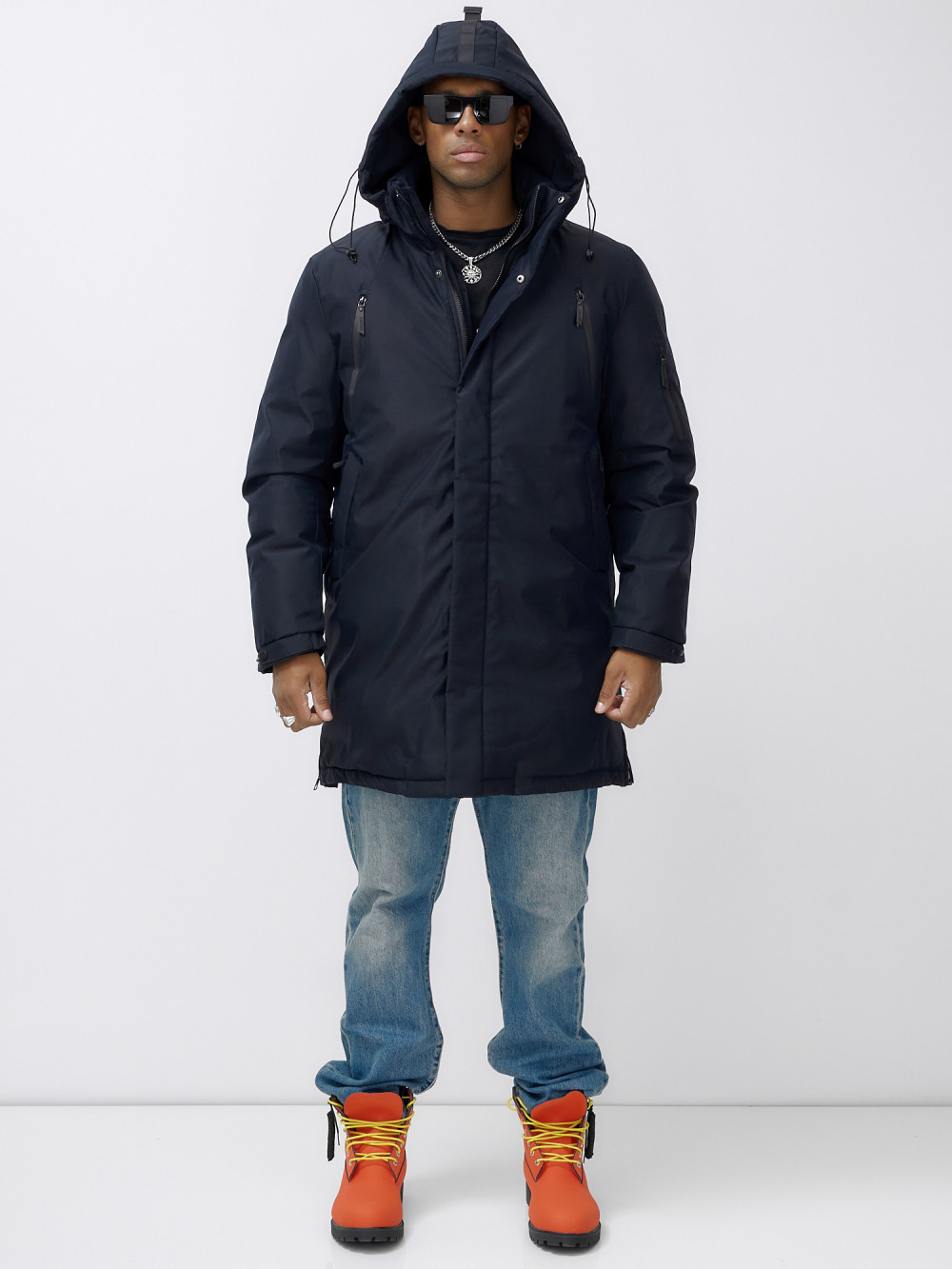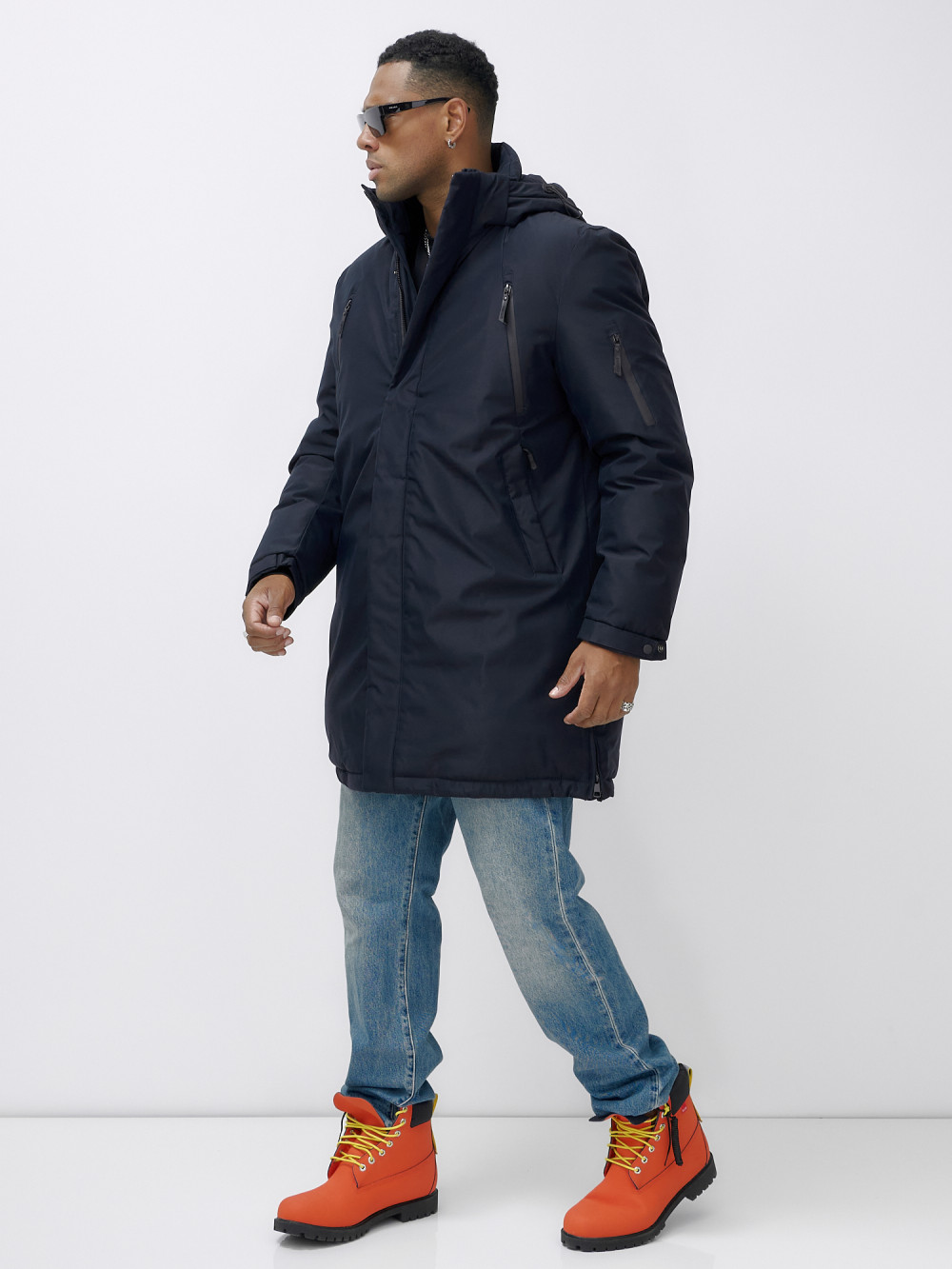 Парка мужская зимняя удлиненная темно-синего цвета 8385TS
