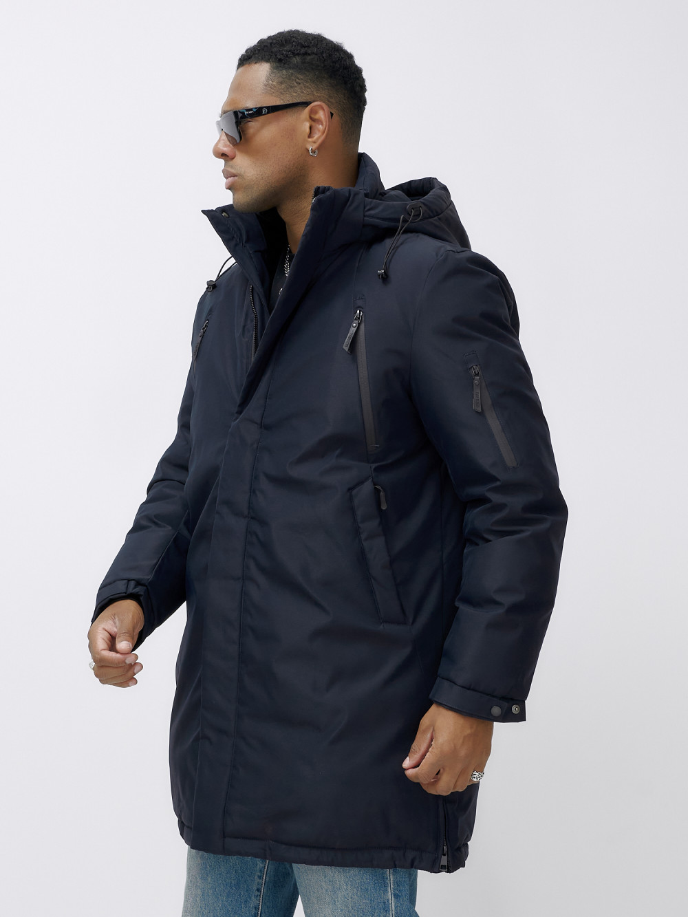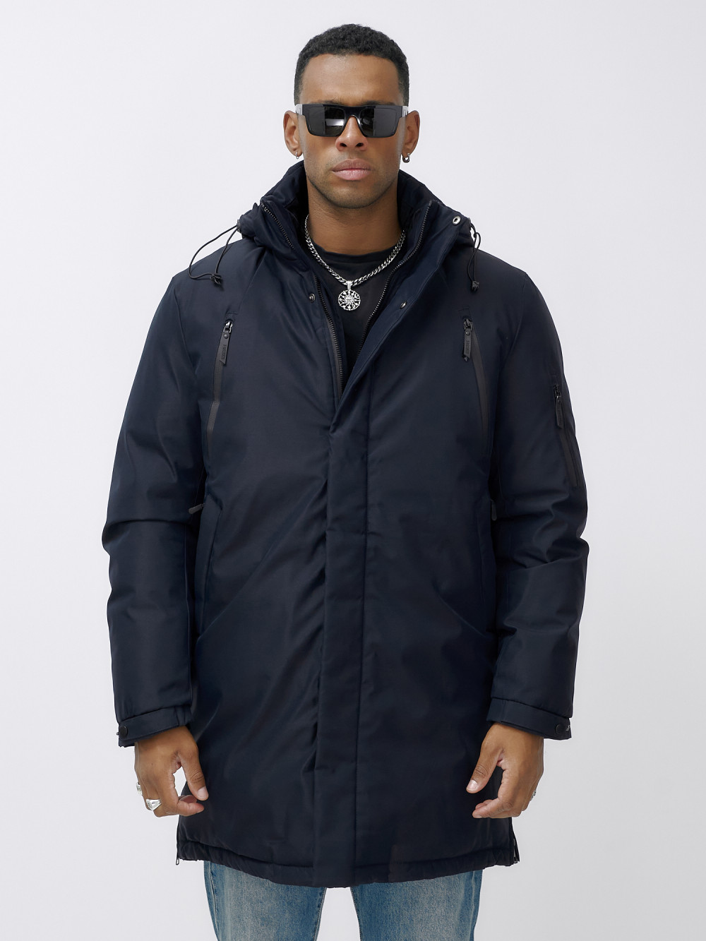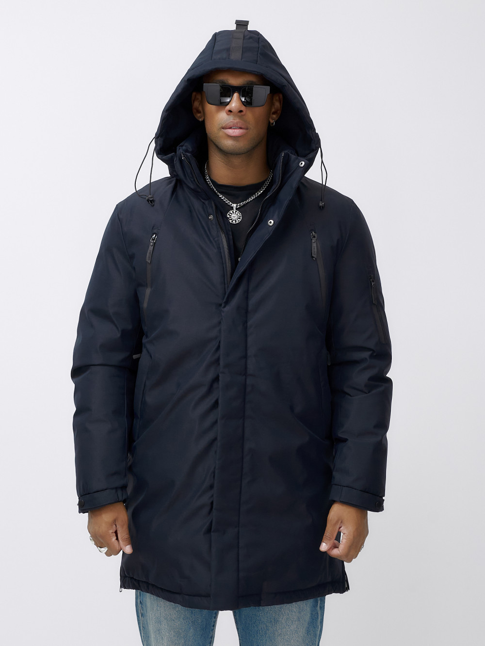 Парка мужская зимняя удлиненная темно-синего цвета 8385TS