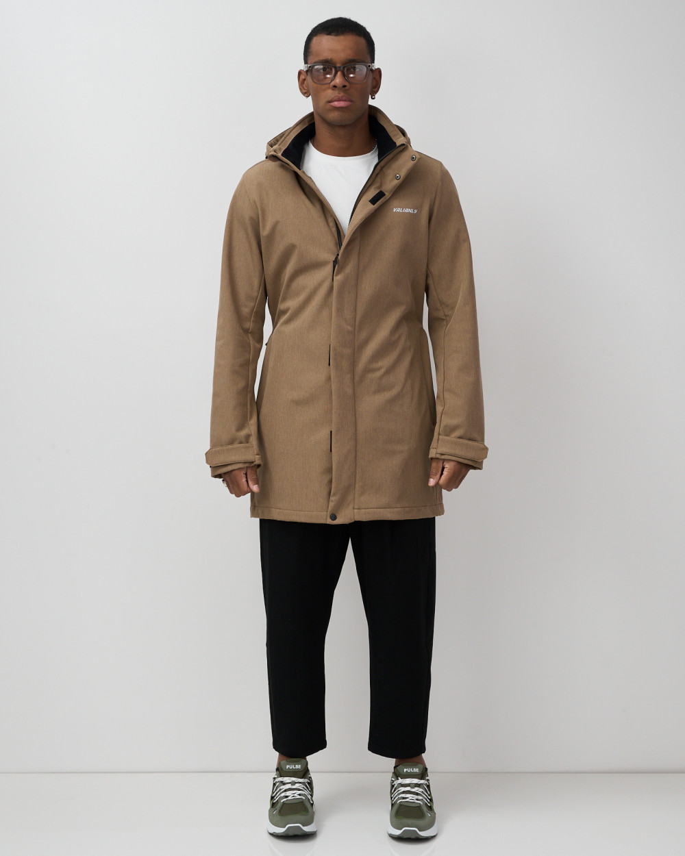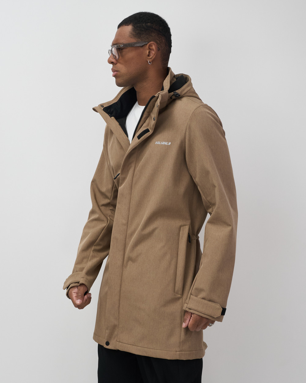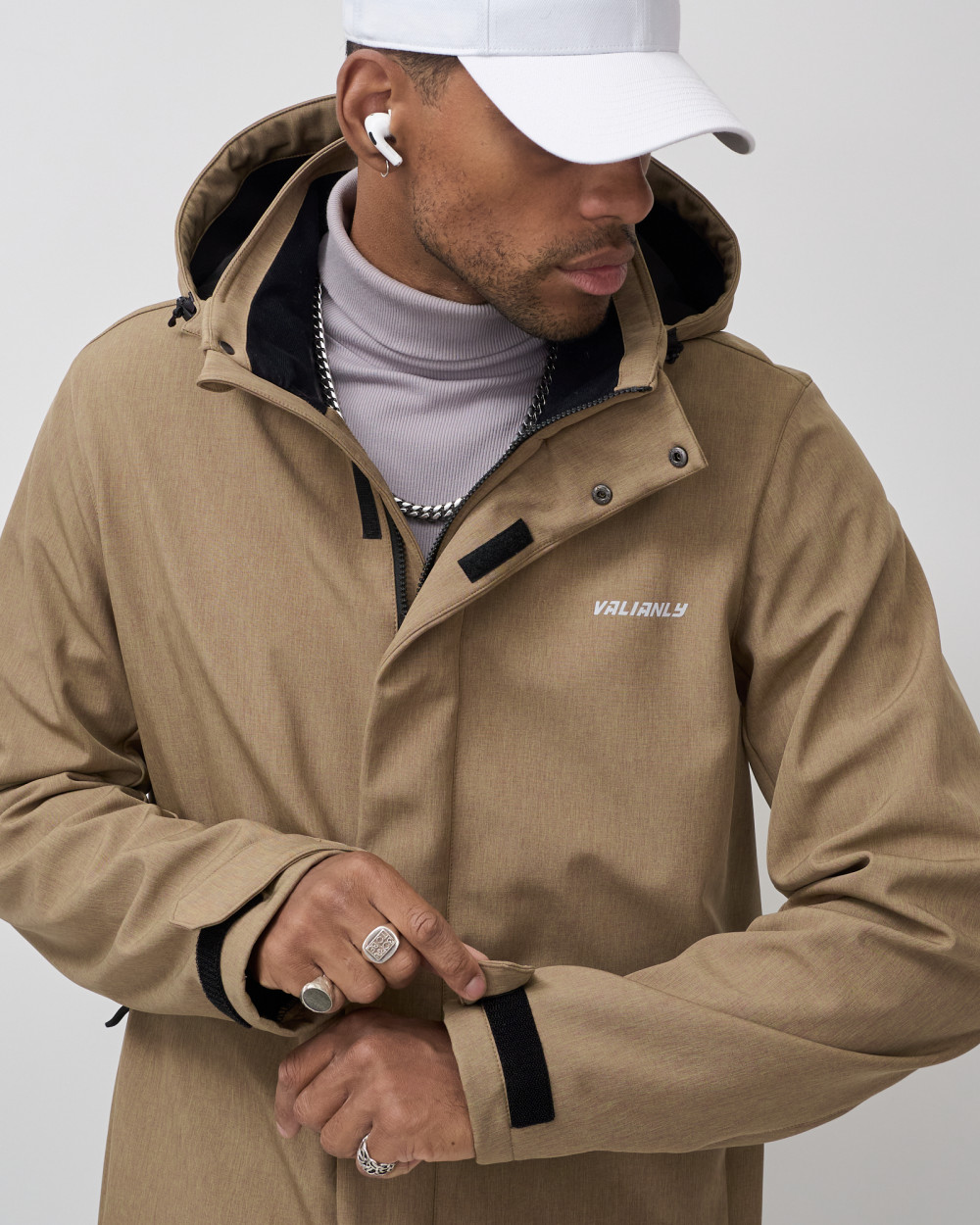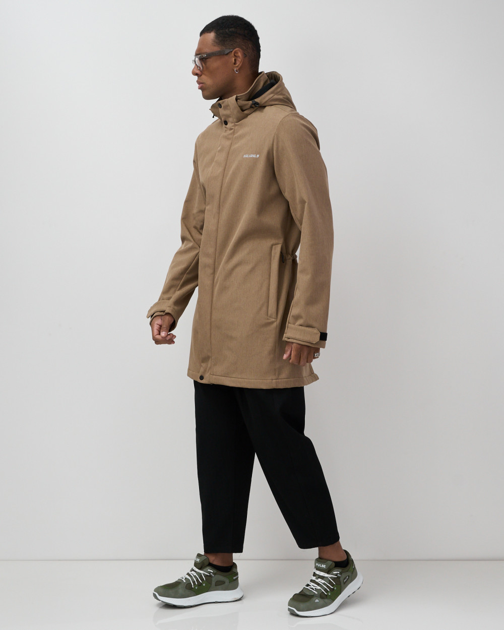 Парка спортивная мужская с капюшоном softshell бежевого цвета 9565B — VALIANLY