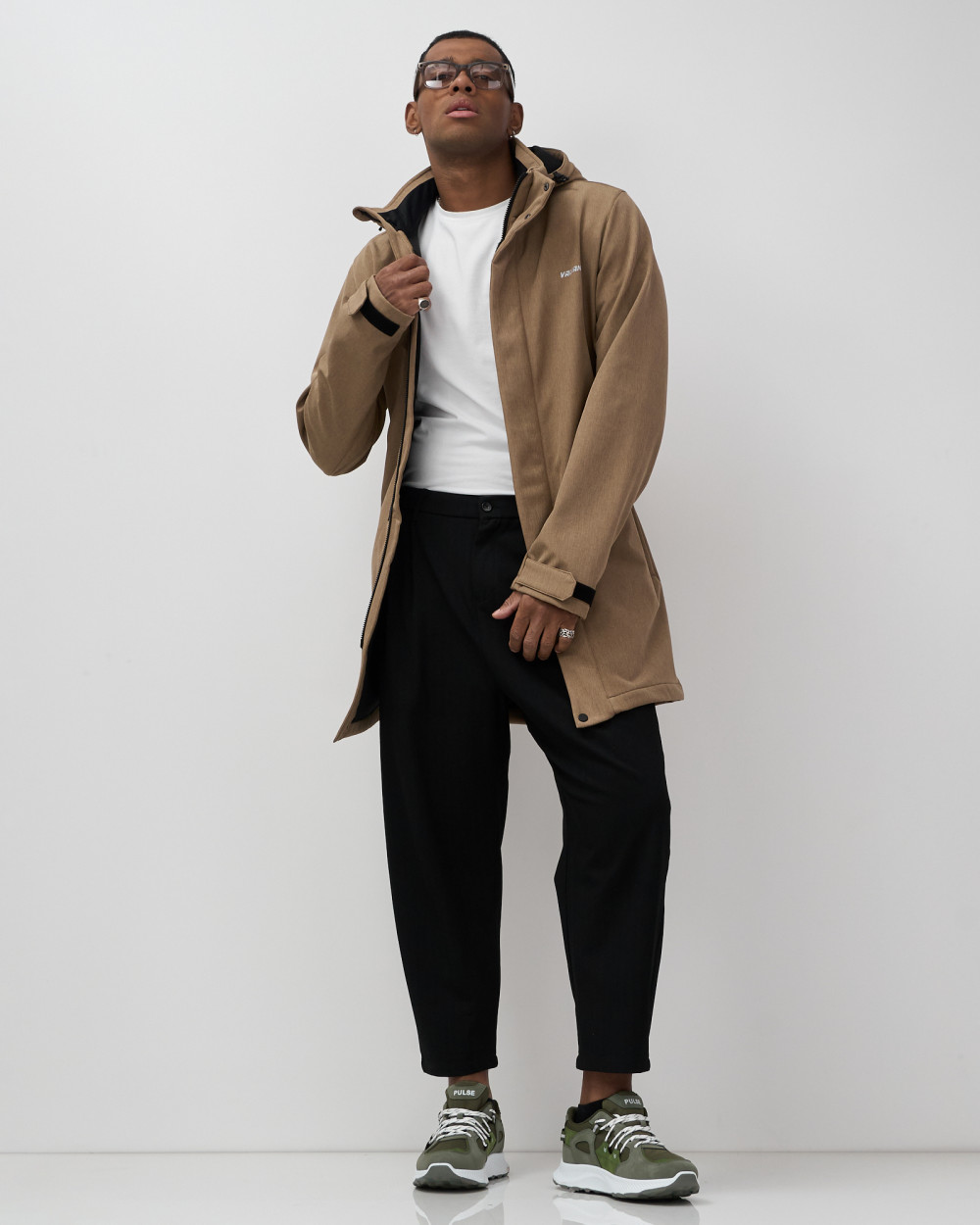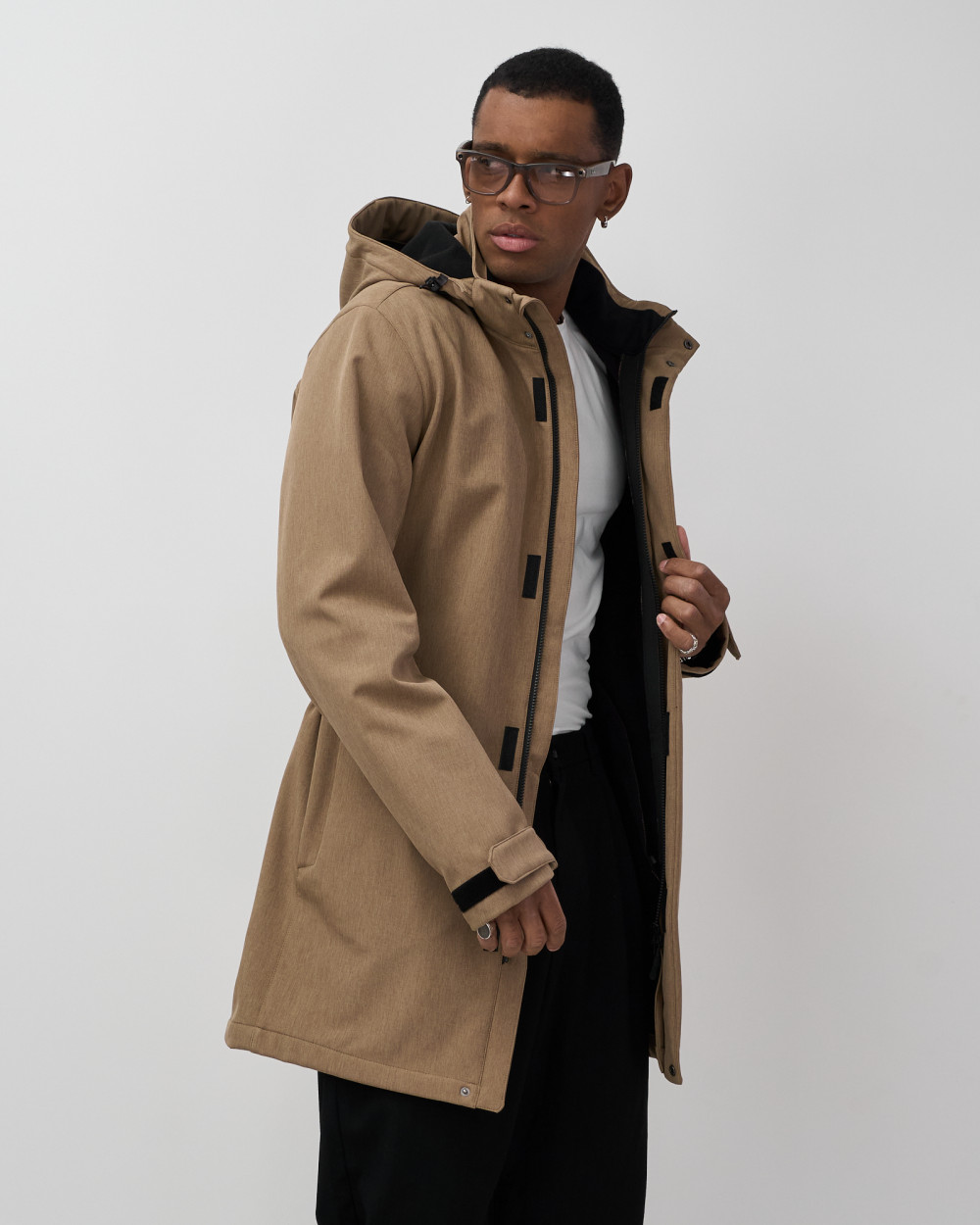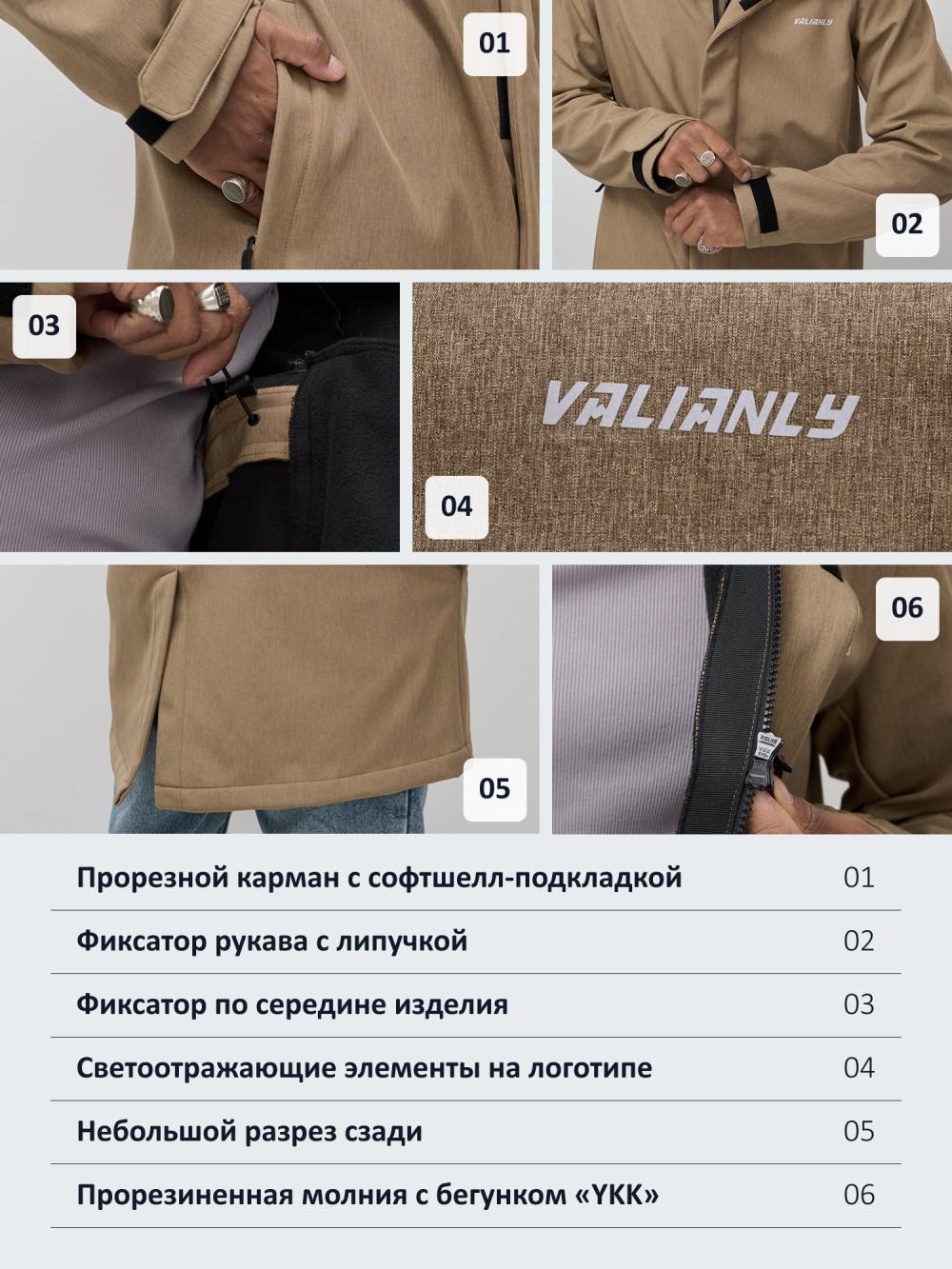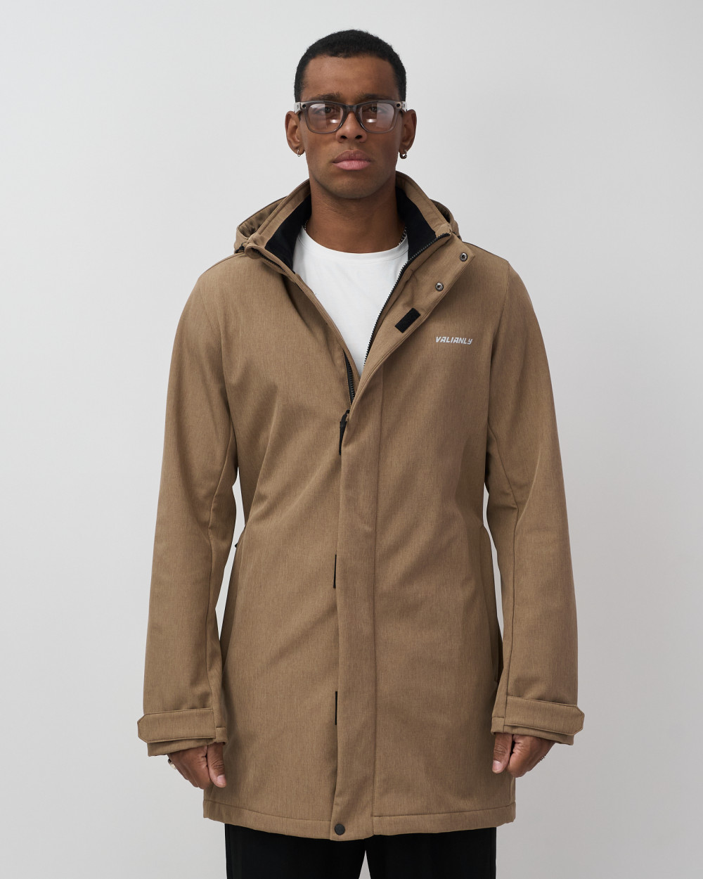 Парка спортивная мужская с капюшоном softshell бежевого цвета 9565B — VALIANLY