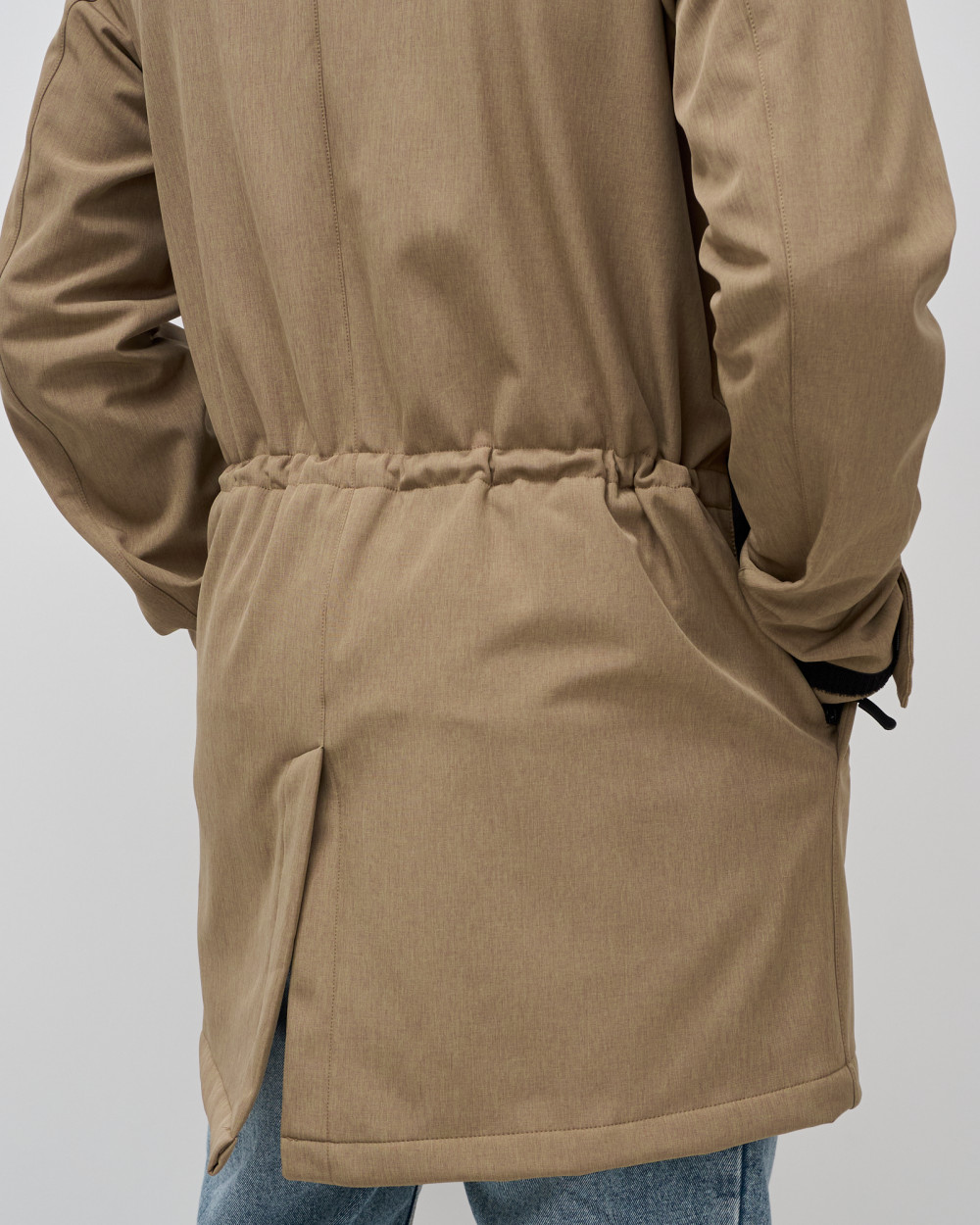 Парка спортивная мужская с капюшоном softshell бежевого цвета 9565B