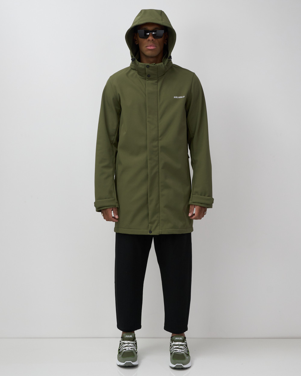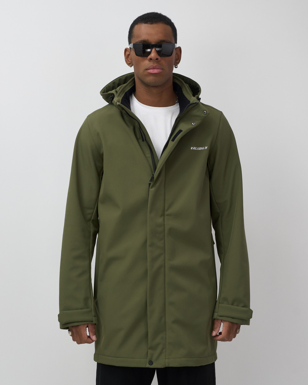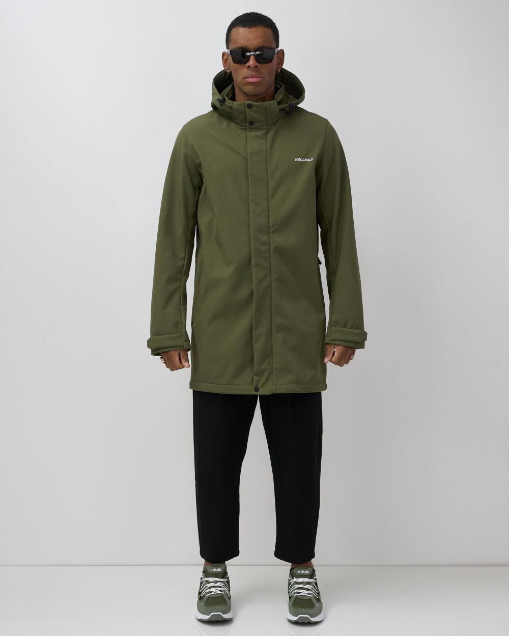 Парка спортивная мужская с капюшоном softshell цвета хаки 9565Kh — VALIANLY