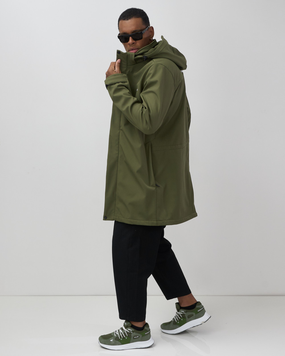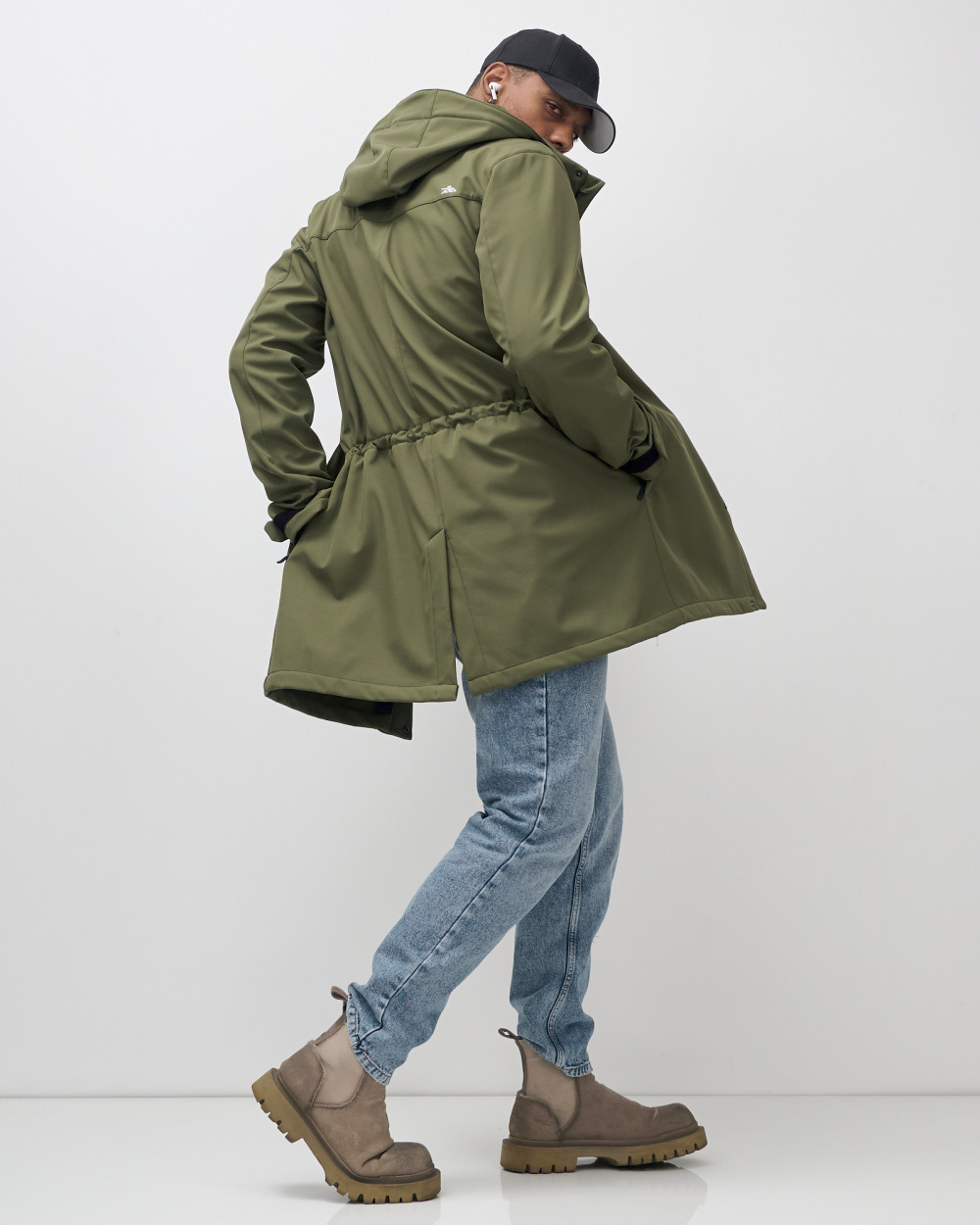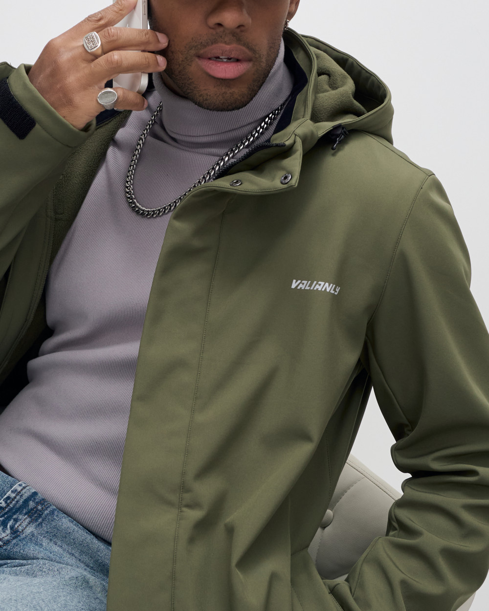 Парка спортивная мужская с капюшоном softshell цвета хаки 9565Kh — VALIANLY
