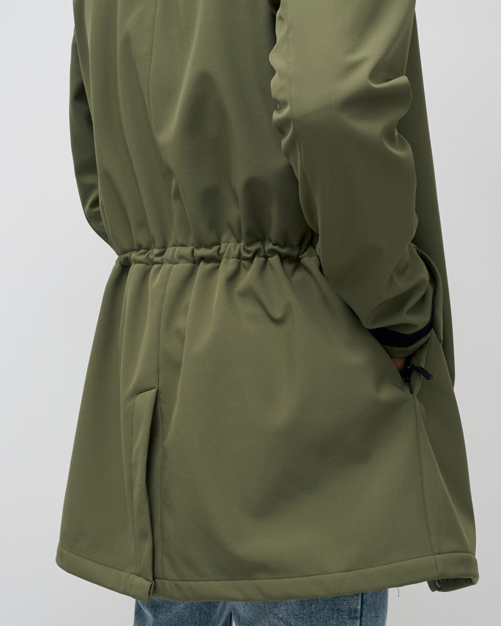 Парка спортивная мужская с капюшоном softshell цвета хаки 9565Kh