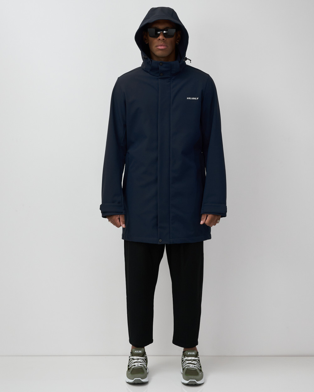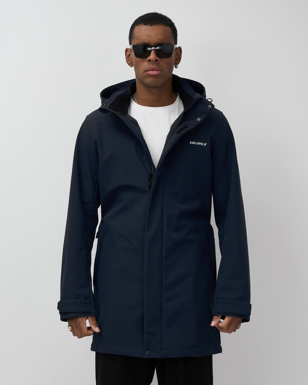 Парка спортивная мужская с капюшоном softshell темно-синего цвета 9565TS — VALIANLY
