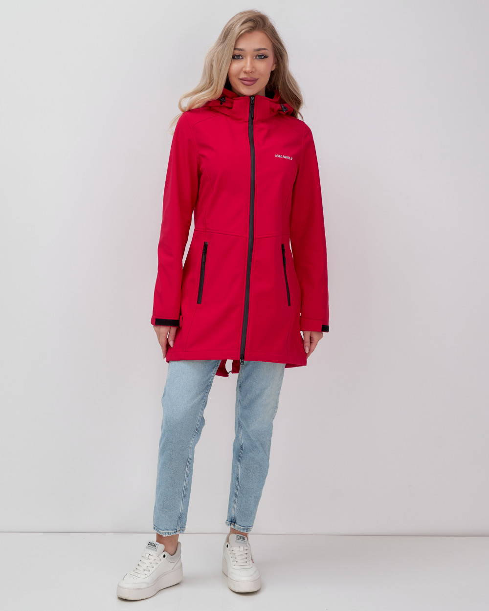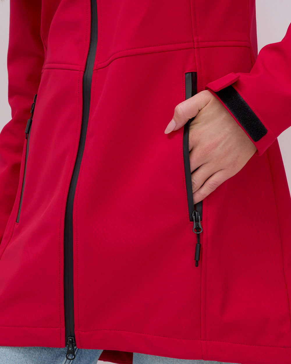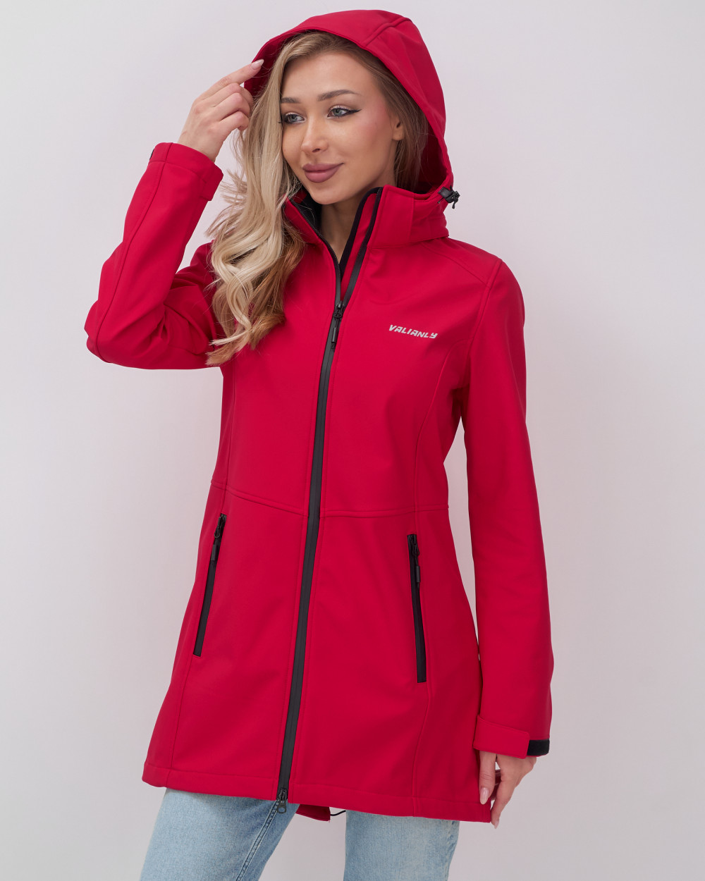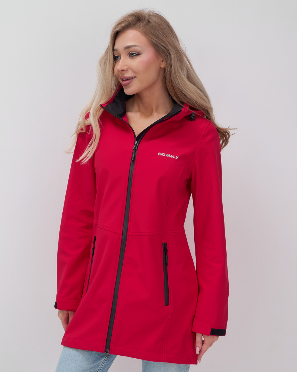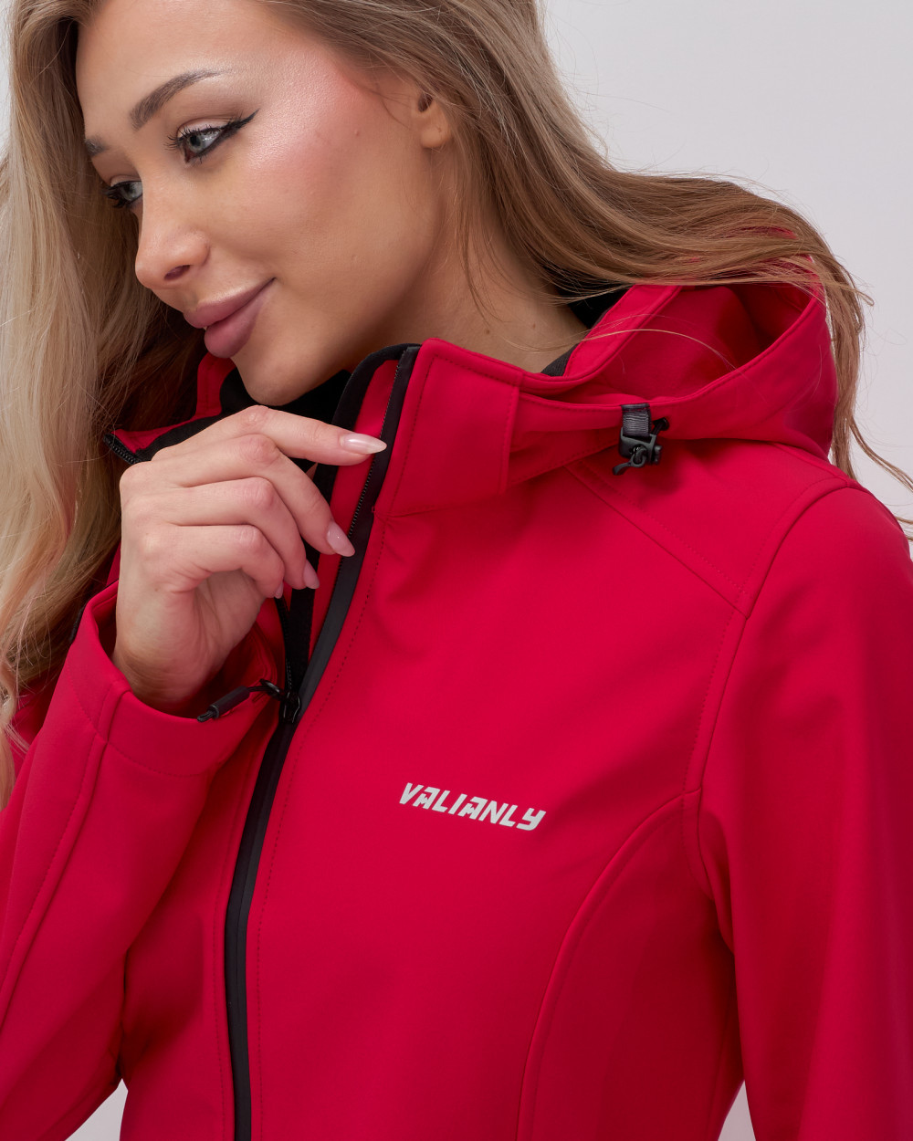 Парка спортивная женская с капюшоном softshell красного цвета 9568Kr — VALIANLY
