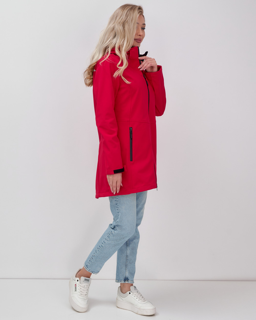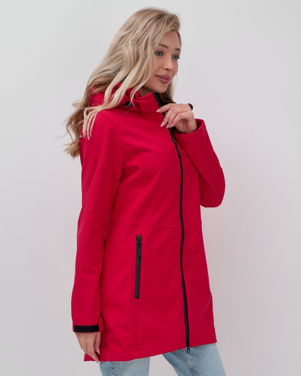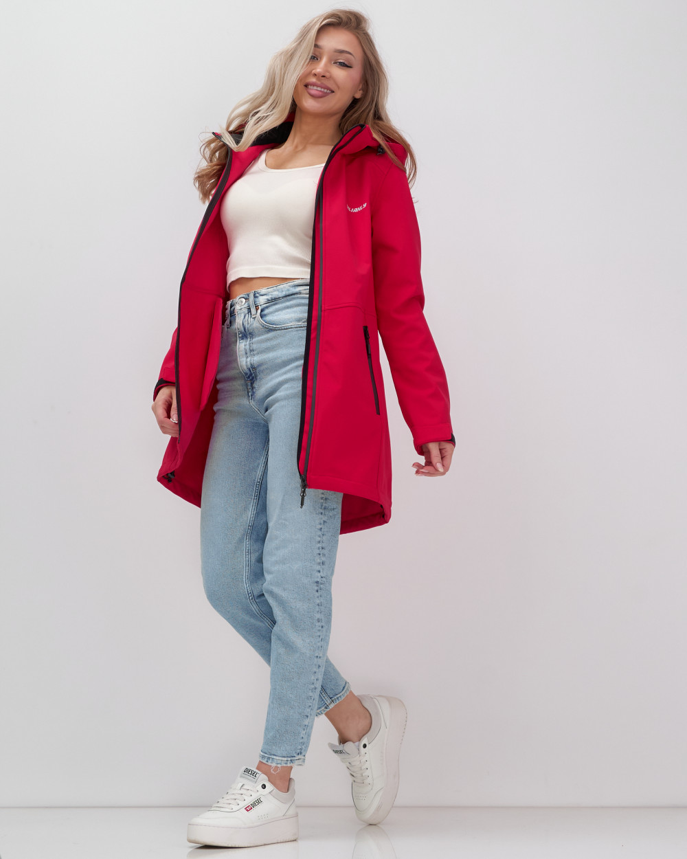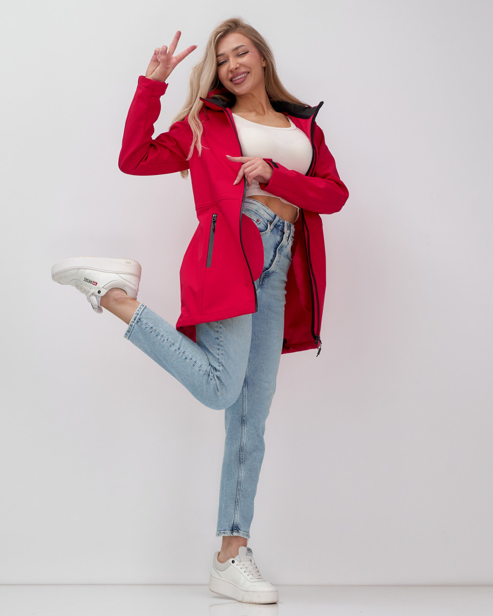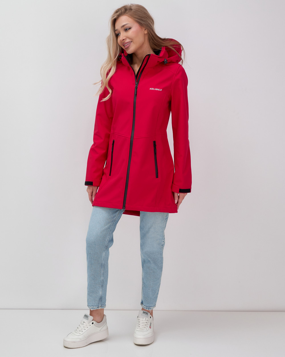 Парка спортивная женская с капюшоном softshell красного цвета 9568Kr — VALIANLY