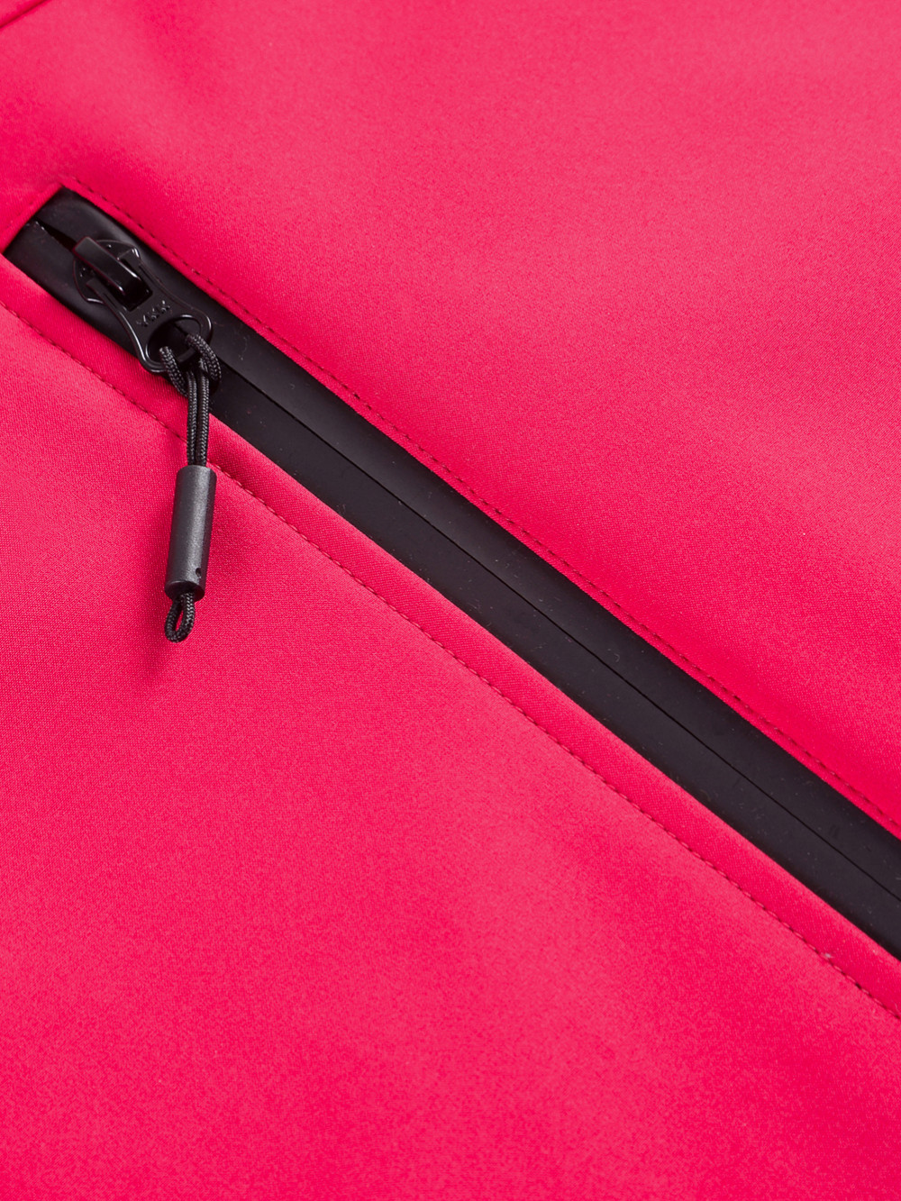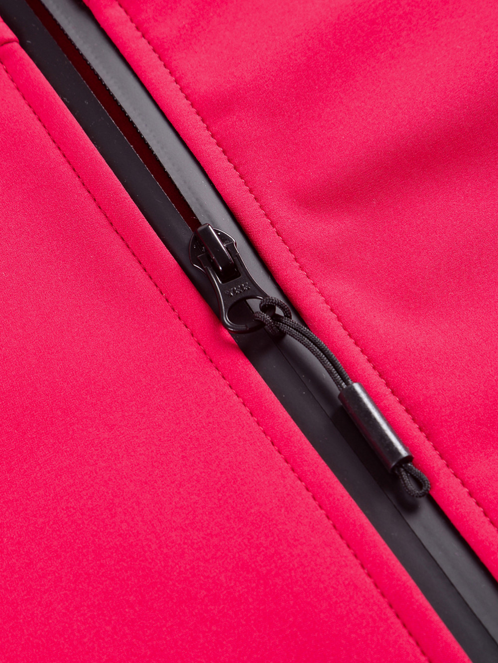 Парка спортивная женская с капюшоном softshell красного цвета 9568Kr