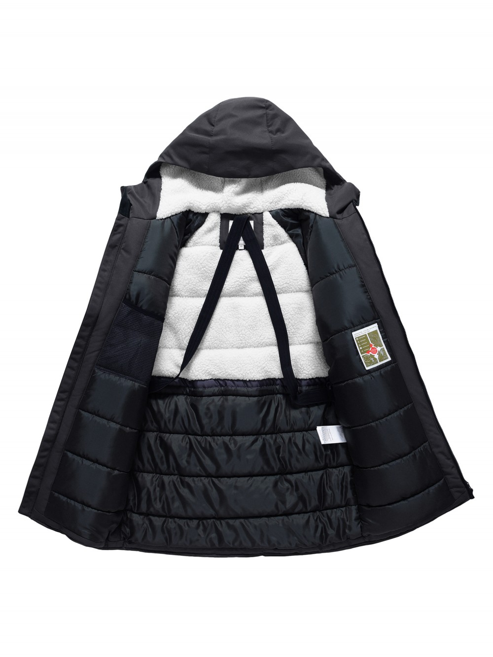 Внутренняя подкладка из овчины, полиэстера и флиса делает парку тёплой и уютной, несъёмный капюшон надёжно защищает от снега и ветра, а воротник-стойка прикрывает шею. Регулируемые фиксаторы на рукавах и капюшоне помогают удерживать тепло, трикотажные манжеты дополнительно блокируют холод. Вместительные карманы с начёсом на молнии и магнитах позволяют согревать руки и носить с собой необходимые вещи. Модель выполнена в универсальных цветах — сером, чёрном, хаки и тёмно-синем, легко сочетаясь с любым стилем одежды.