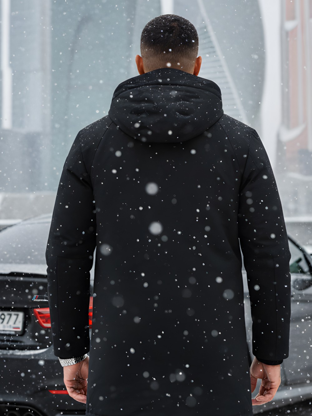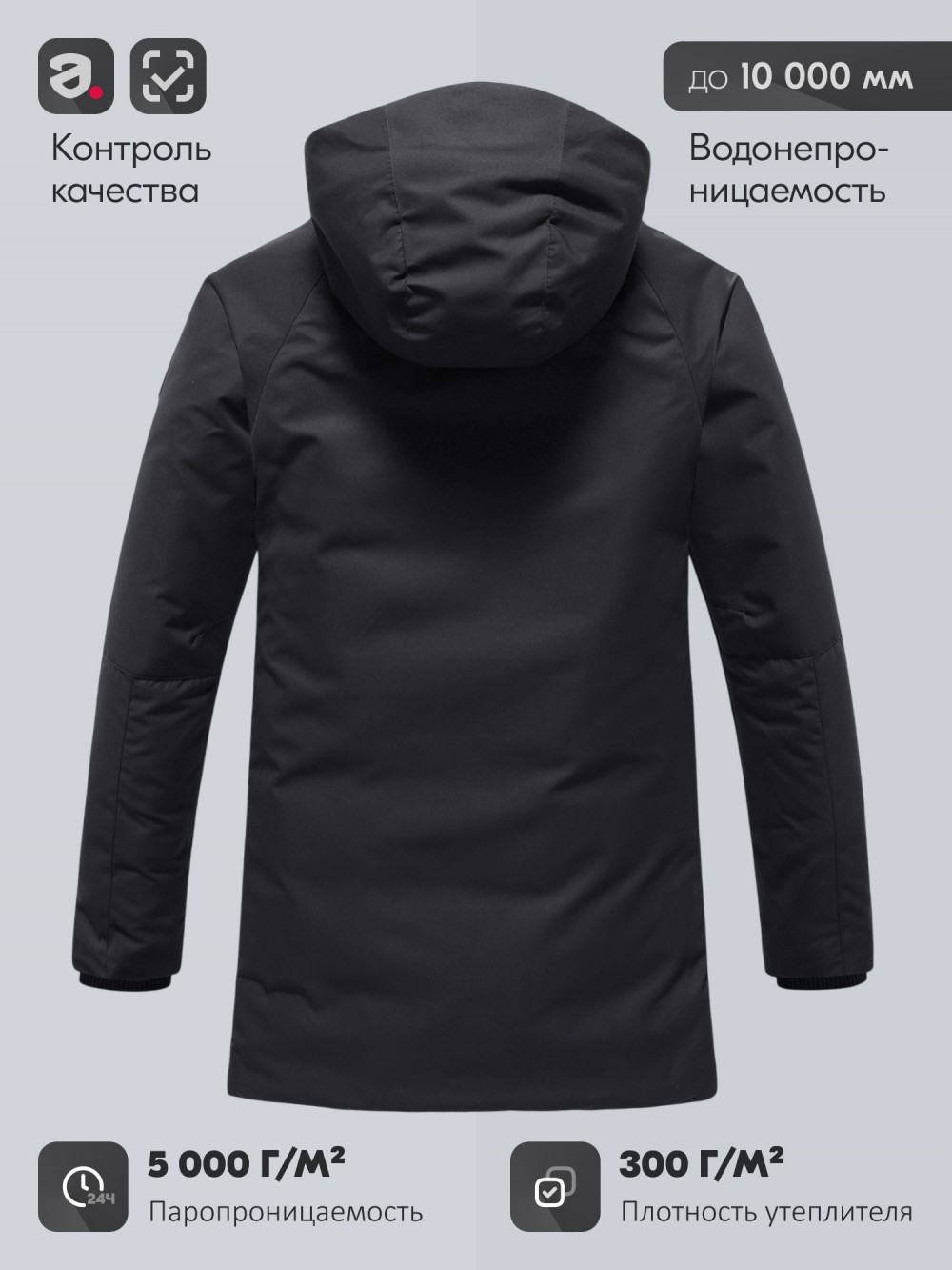 Зимняя мужская парка с капюшоном — практичная и надёжная модель, созданная для повседневной носки и активного отдыха в холодное время года. Свободный крой до колена обеспечивает комфорт и свободу движений, а плотная водоотталкивающая ткань с проклеенными швами защищает от ветра и влаги. Утеплитель тинсулейт плотностью 300 г/м² удерживает тепло даже в сильные морозы, оставаясь лёгким и удобным в носке.