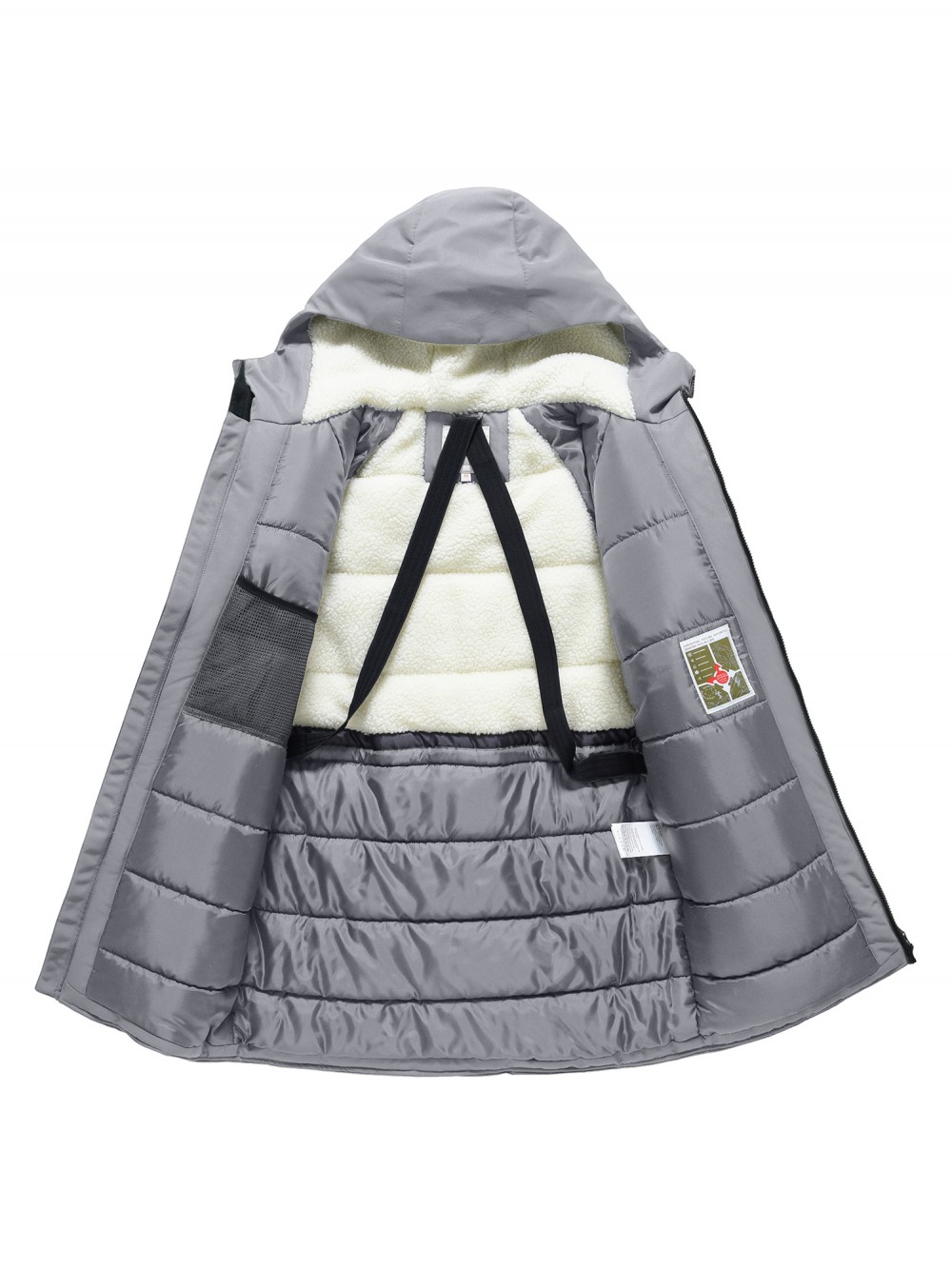 Внутренняя подкладка из овчины, полиэстера и флиса делает парку тёплой и уютной, несъёмный капюшон надёжно защищает от снега и ветра, а воротник-стойка прикрывает шею. Регулируемые фиксаторы на рукавах и капюшоне помогают удерживать тепло, трикотажные манжеты дополнительно блокируют холод. Вместительные карманы с начёсом на молнии и магнитах позволяют согревать руки и носить с собой необходимые вещи. Модель выполнена в универсальных цветах — сером, чёрном, хаки и тёмно-синем, легко сочетаясь с любым стилем одежды.
