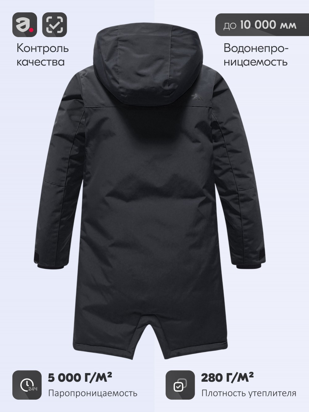 Зимняя парка для мальчика-подростка разработана с учётом всех требований к тёплой и практичной верхней одежде для холодного времени года. Свободный крой до колена обеспечивает удобство и свободу движений, модель одинаково комфортна как для школы, так и для повседневных прогулок. Верх выполнен из плотной износостойкой ткани с водоотталкивающими свойствами, а проклеенные швы надёжно защищают от ветра и влаги, сохраняя тепло внутри. Современный утеплитель тинсулейт с плотностью 280 г/м² поддерживает комфортный температурный режим и позволяет носить парку в диапазоне от +5 до –25 градусов.