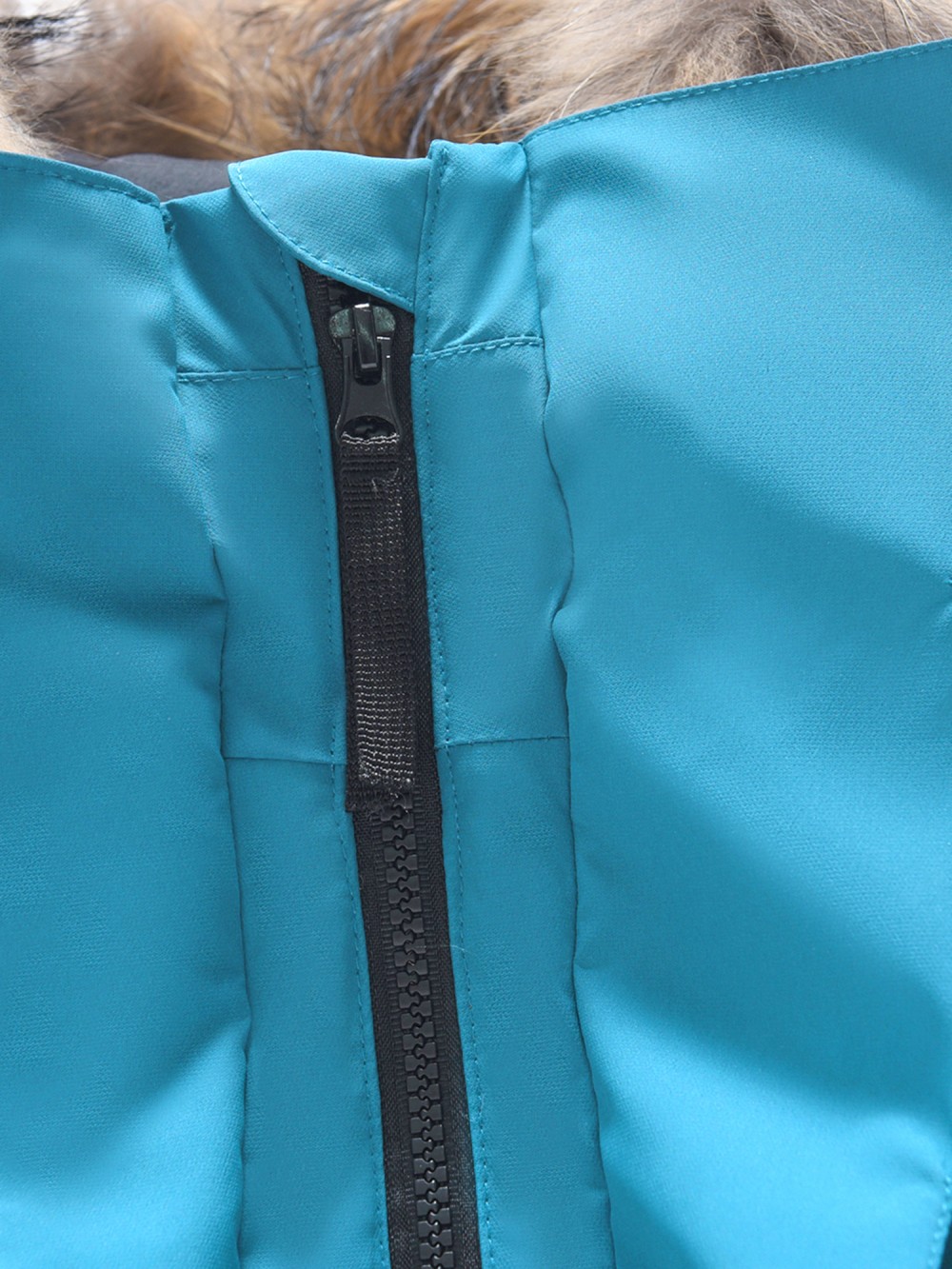 Парка зимняя подростковая для мальчика с капюшоном и мехом голубого цвета 9537Gl