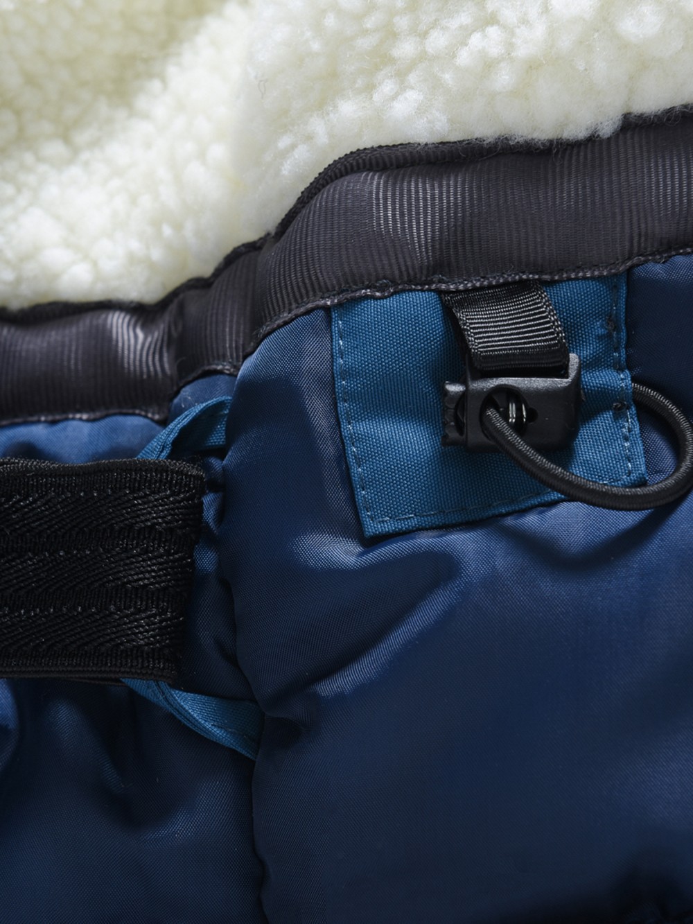 фиксаторы на рукавах (пат с липучкой) и трикотажные манжеты удерживают тепло внутри.