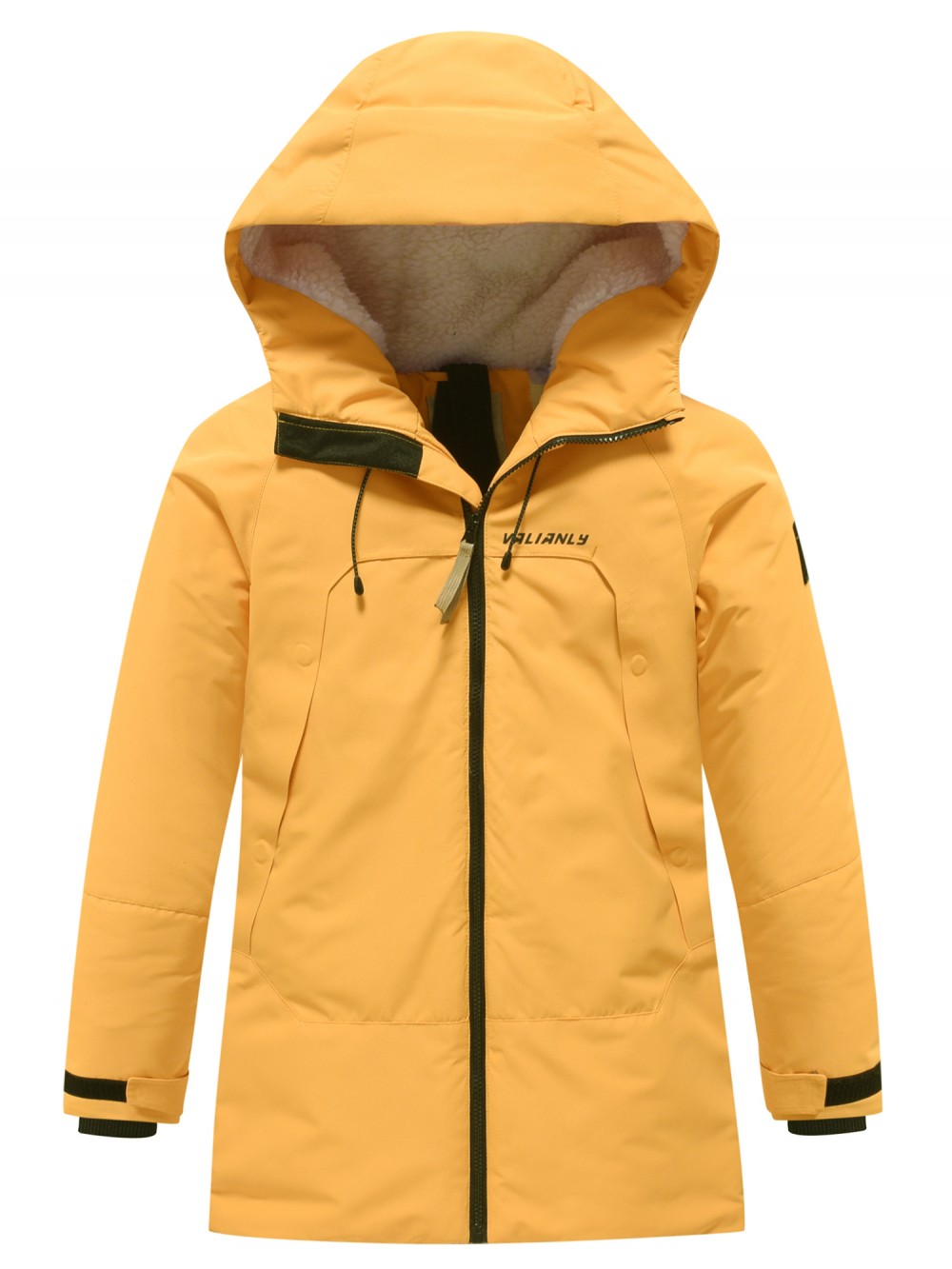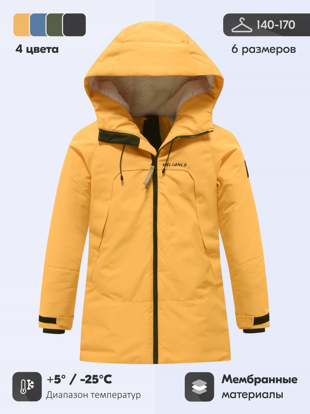 Парка зимняя подростковая для мальчика с капюшоном желтого цвета 9533J — VALIANLY