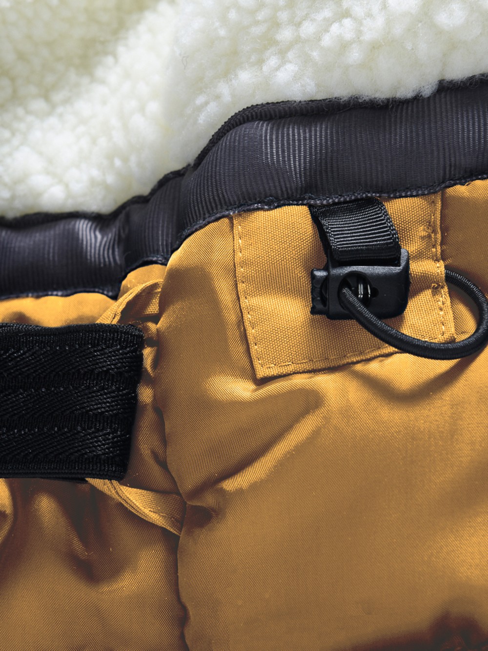 фиксаторы на рукавах (пат с липучкой) и трикотажные манжеты удерживают тепло внутри.