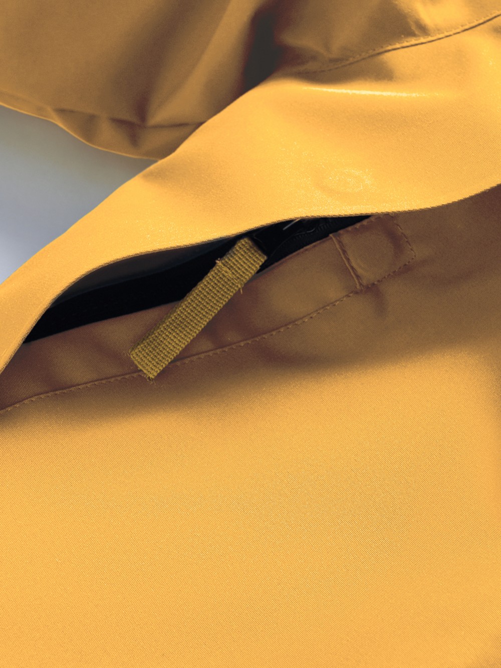 фиксаторы по низу, на капюшоне и по центру (в области талии) позволяют подстроить силуэт и защитить от продувания;