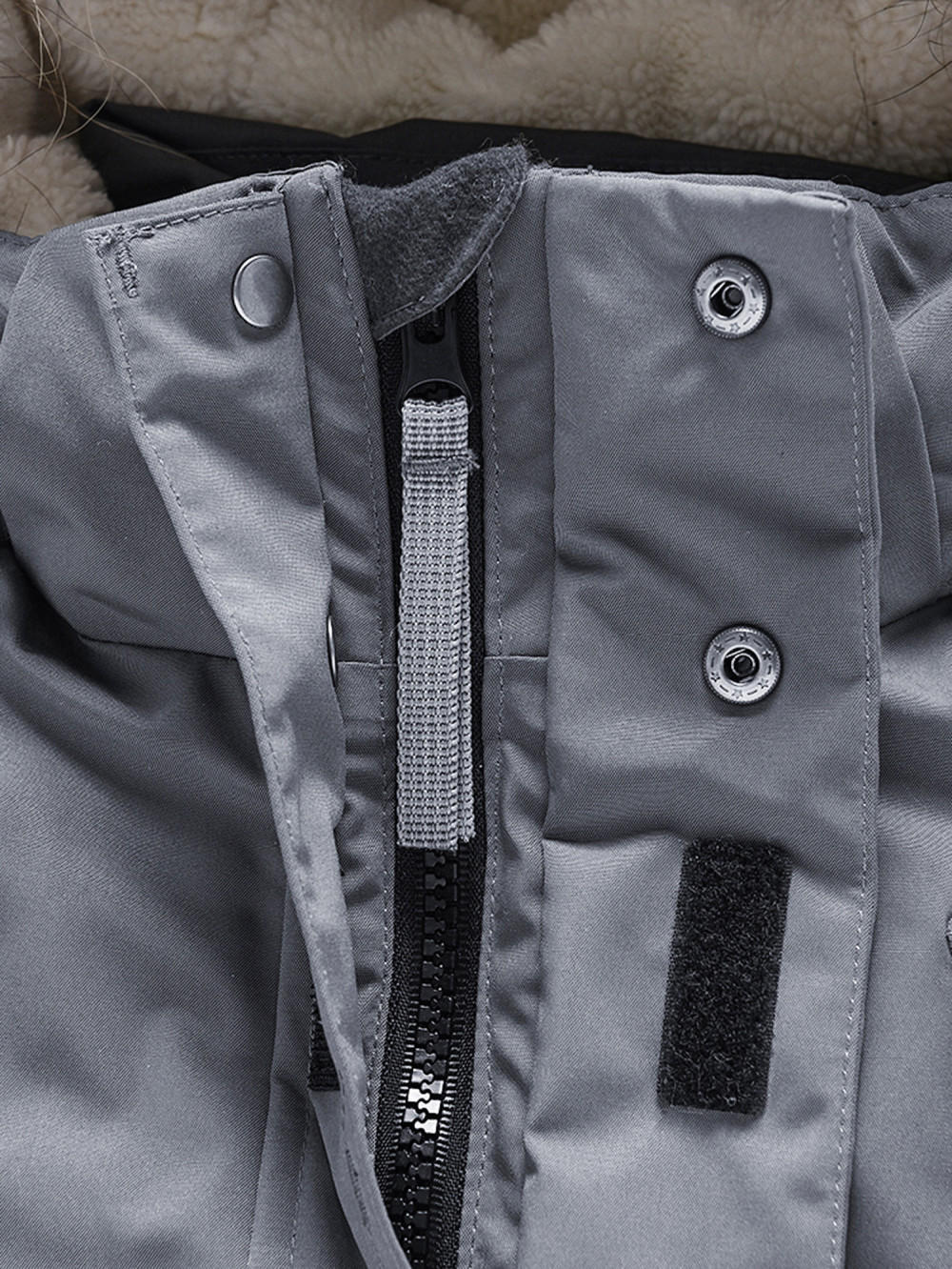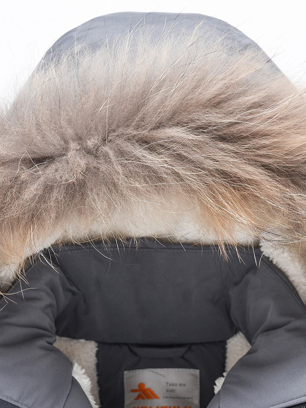 - Конструктивность элемента: Съемный капюшон, съемная меховая опушка, светоотражающие элементы, трикотажные манжеты, фиксатор в талии, вместительные карманы на кнопках.