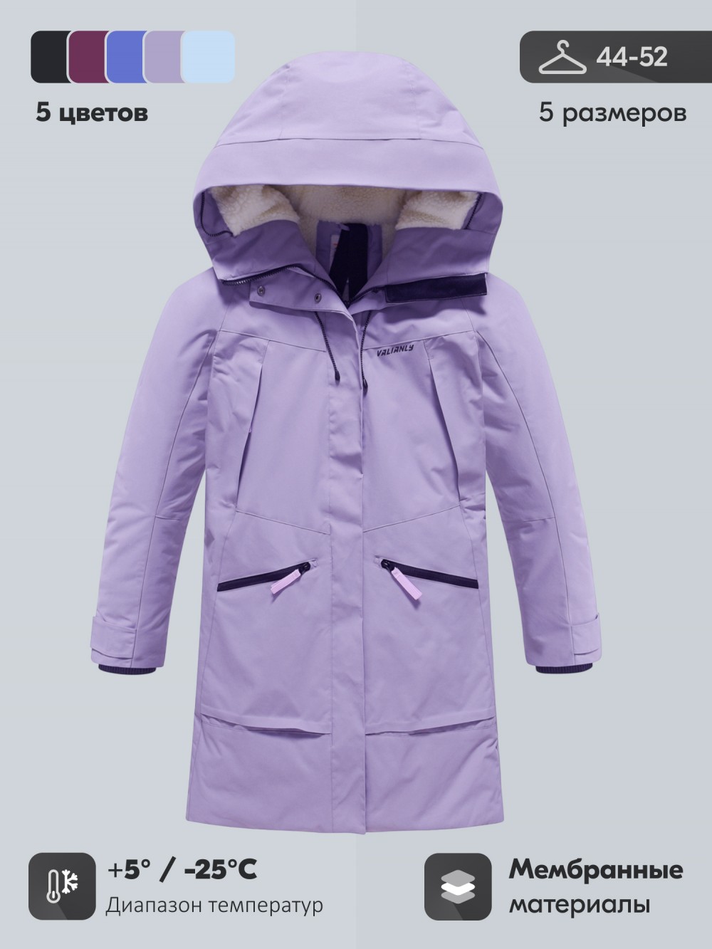 Парка зимняя женская с капюшоном сиреневого цвета 9538-1Sn — VALIANLY