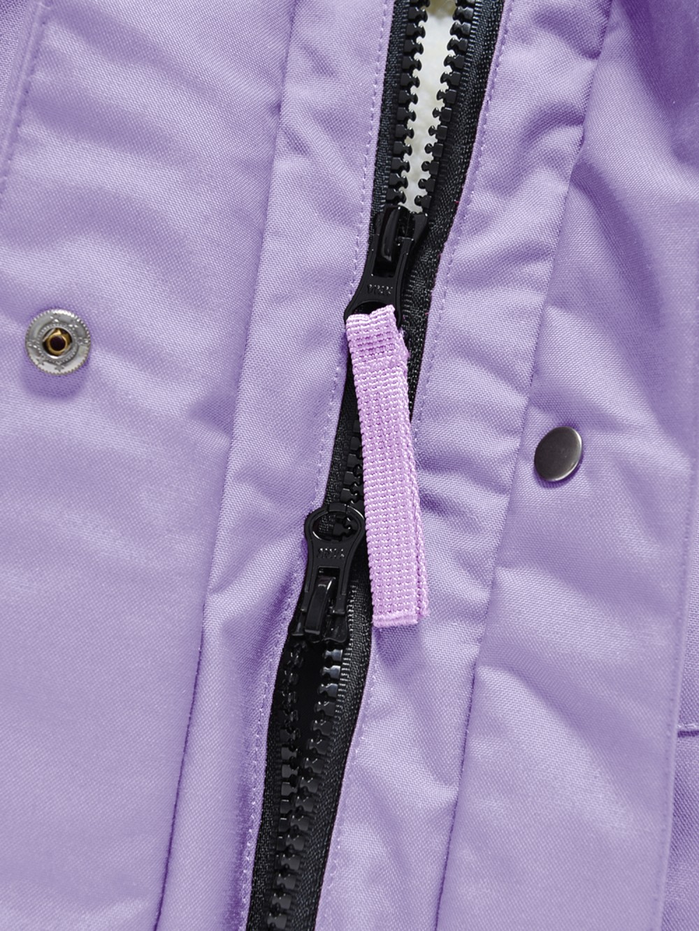 Внутренняя подкладка из овчины, полиэстера и флиса создаёт ощущение уюта и мягкого тепла. Несъёмный капюшон плотно прилегает, защищая голову от ветра и снега, а воротник-стойка надёжно закрывает шею. Регулируемые фиксаторы на рукавах, по низу и на капюшоне позволяют подстраивать посадку и сохранять тепло внутри.
