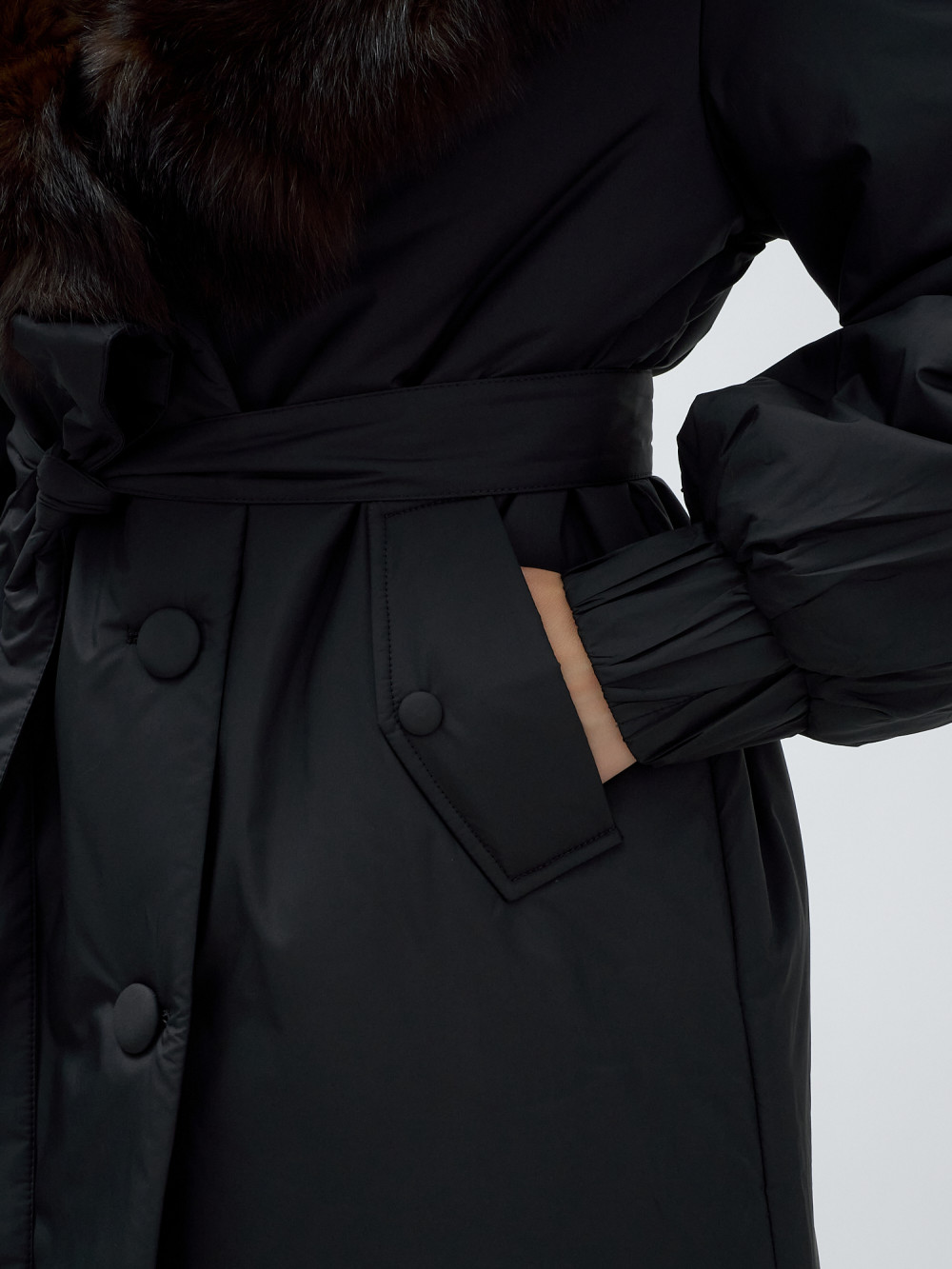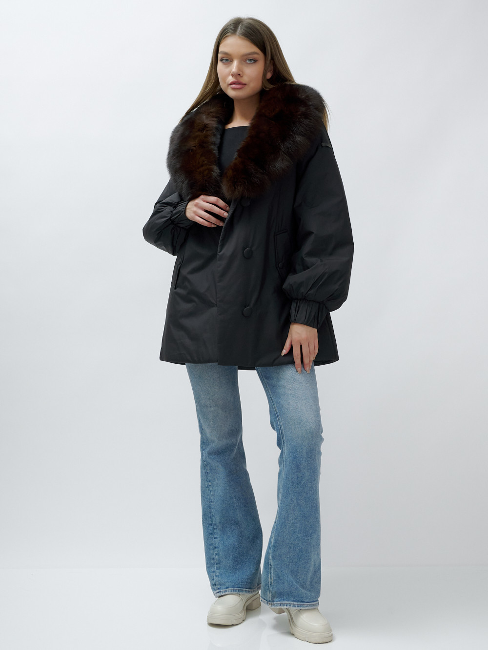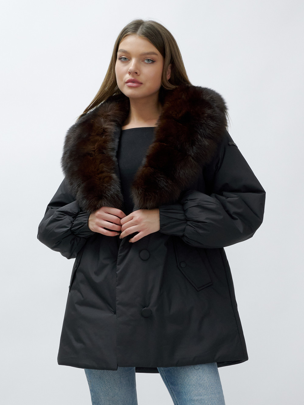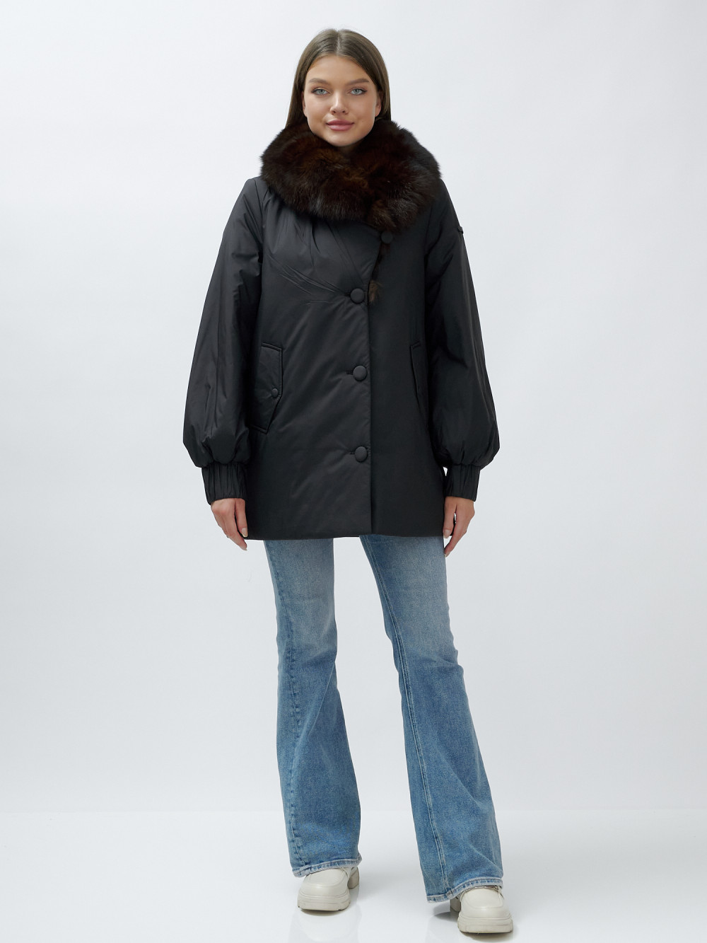 Полупальто женское зимние с мехом песец люкс класса черного цвета 8166Ch — TORINNI