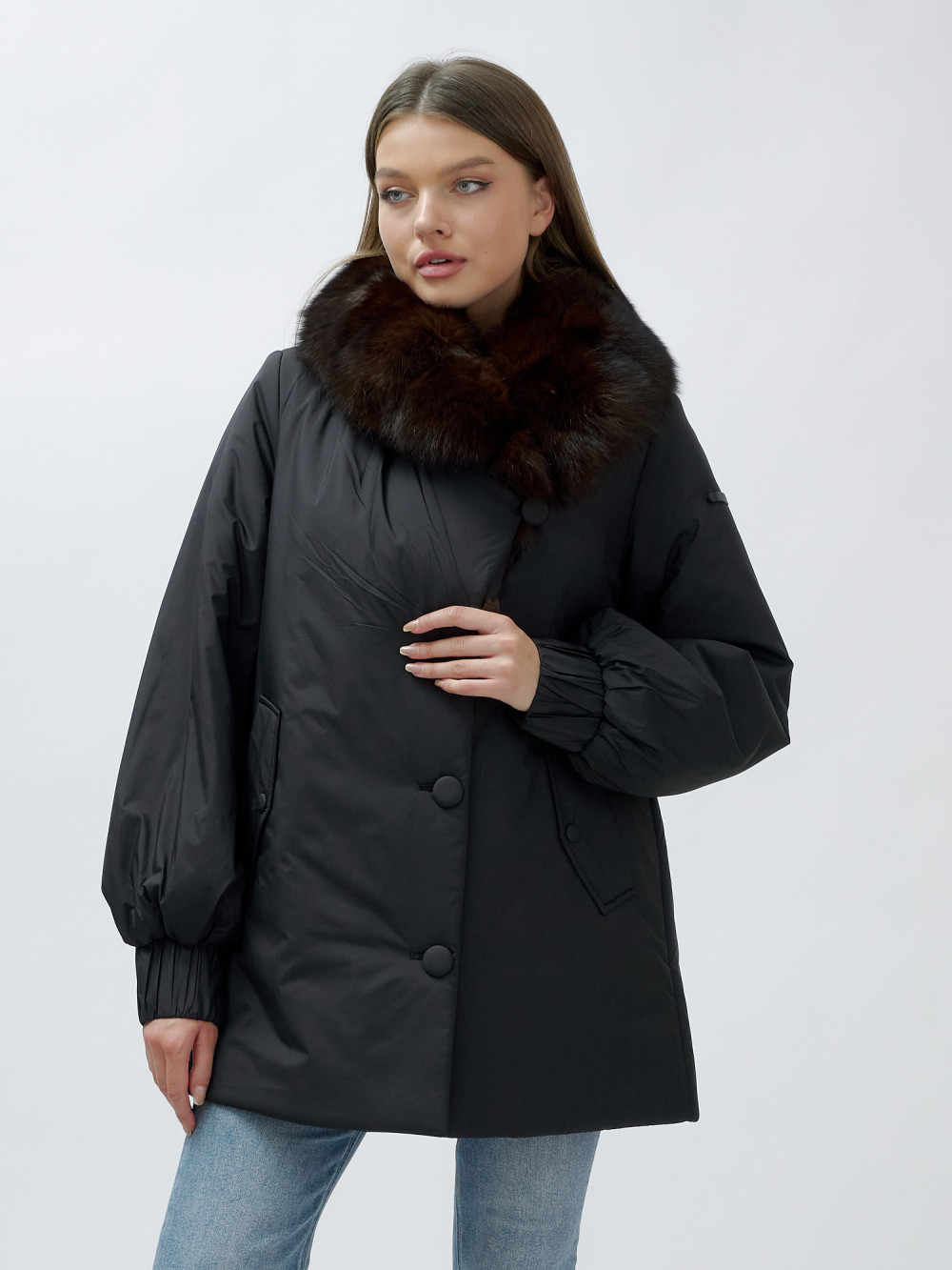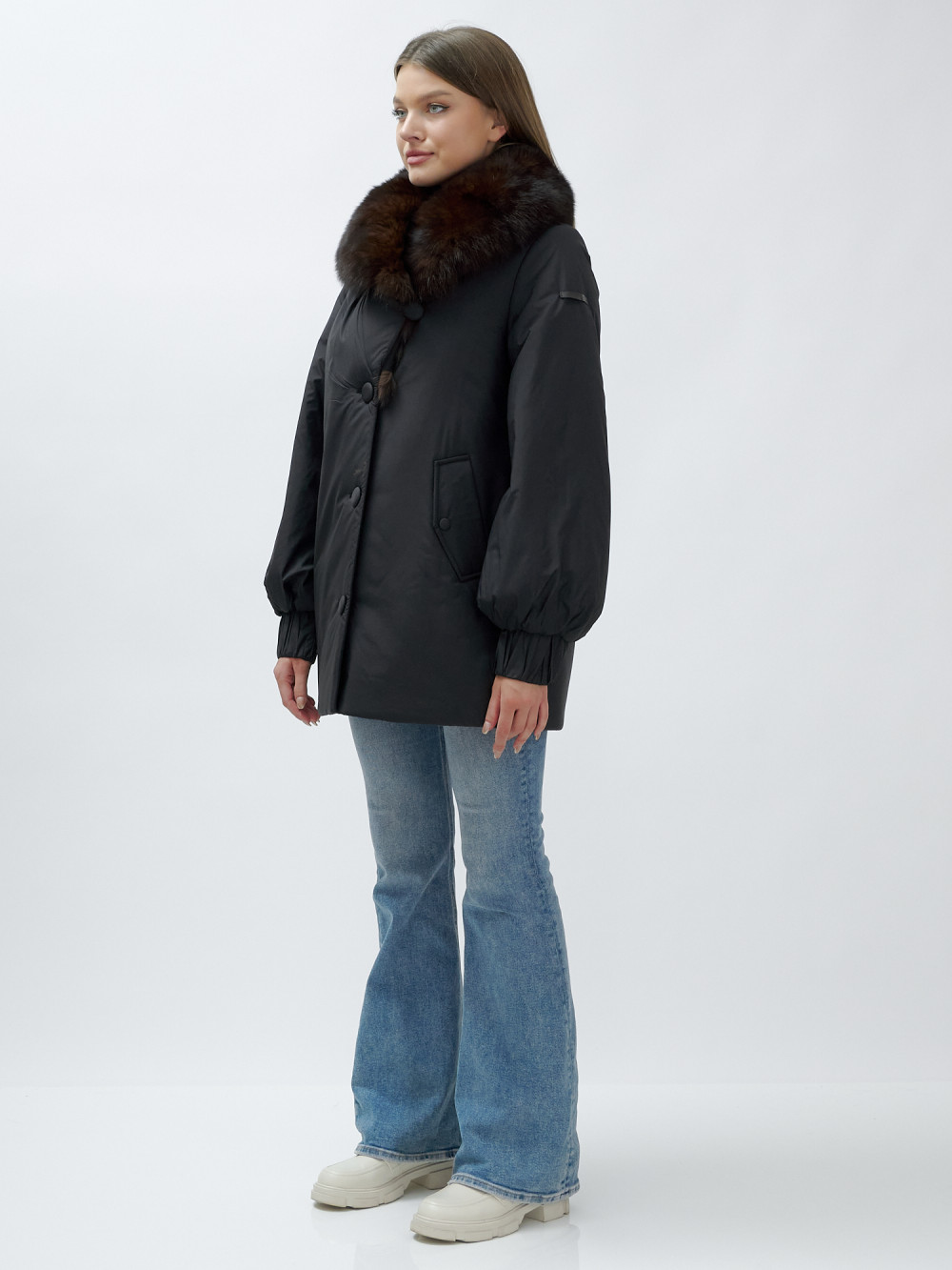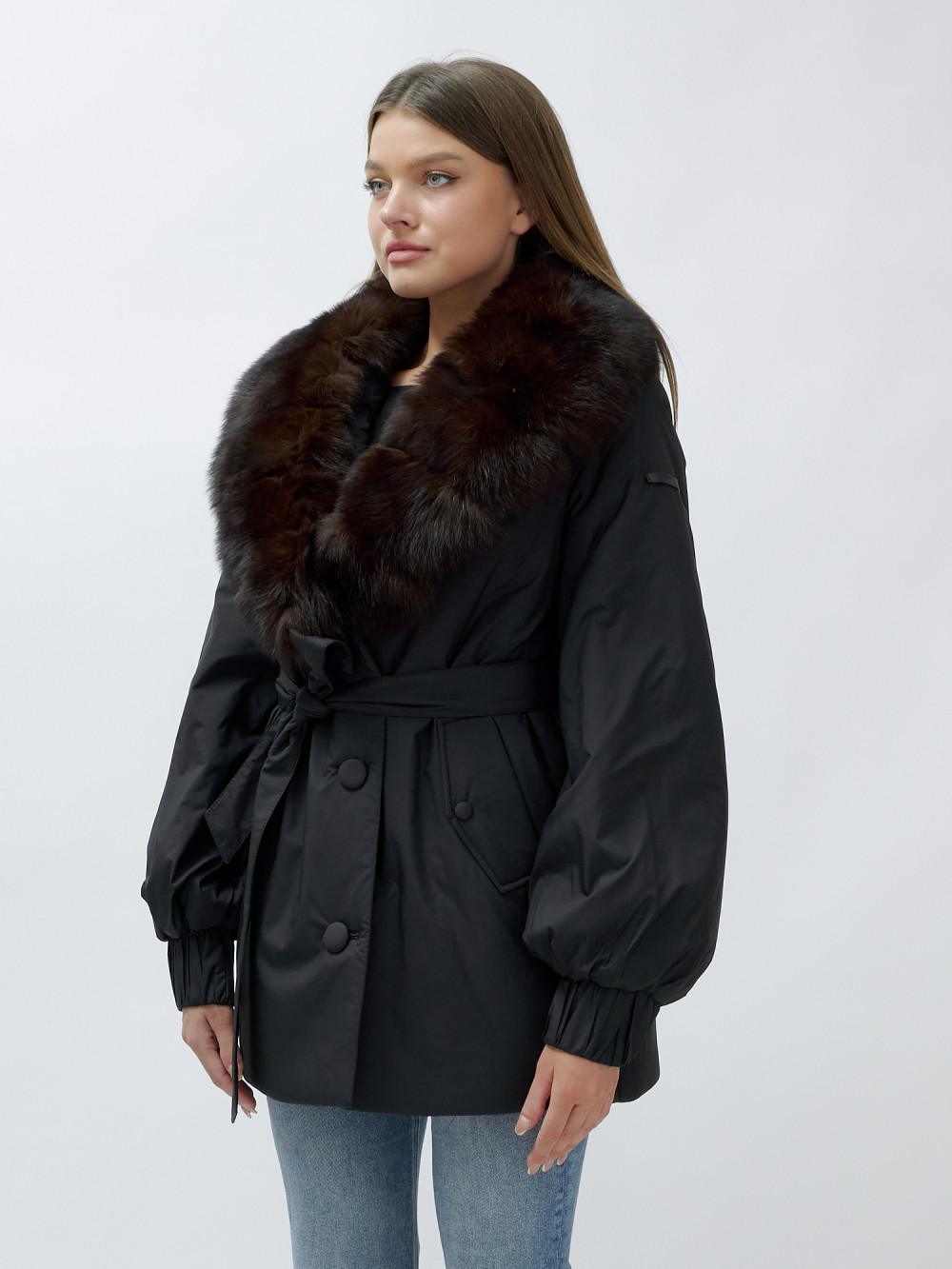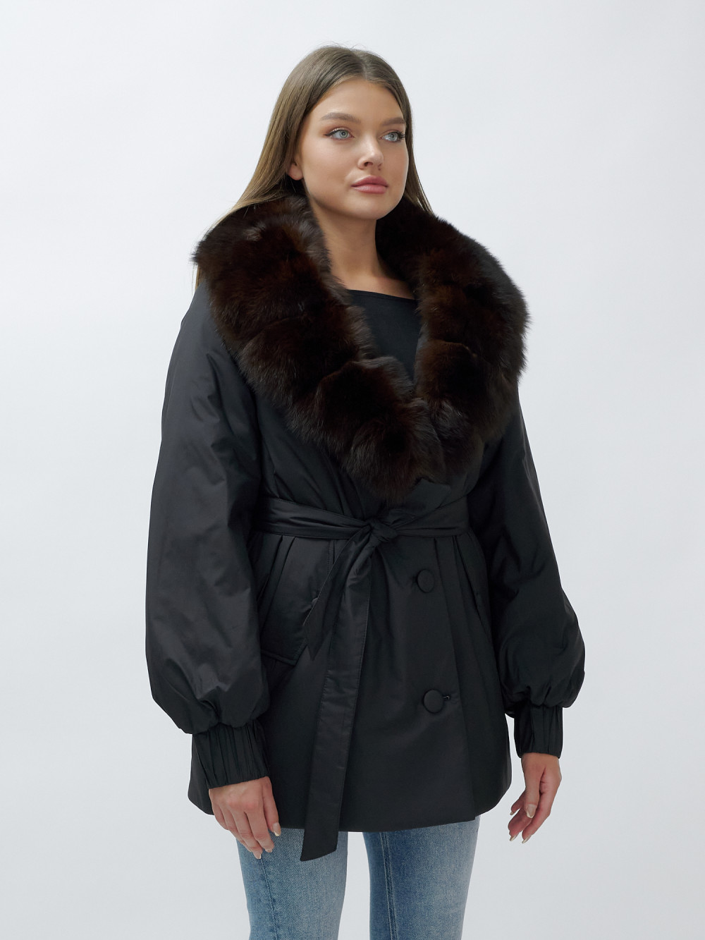Полупальто женское зимние с мехом песец люкс класса черного цвета 8166Ch — TORINNI