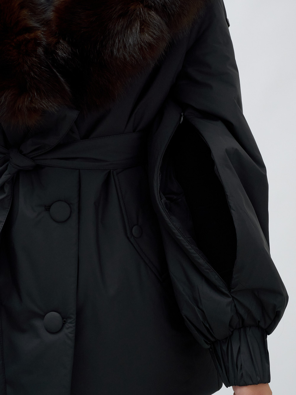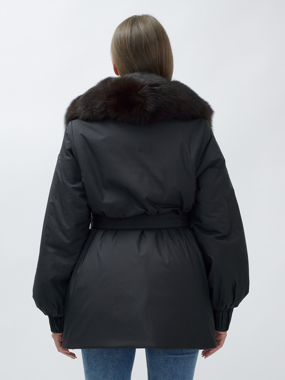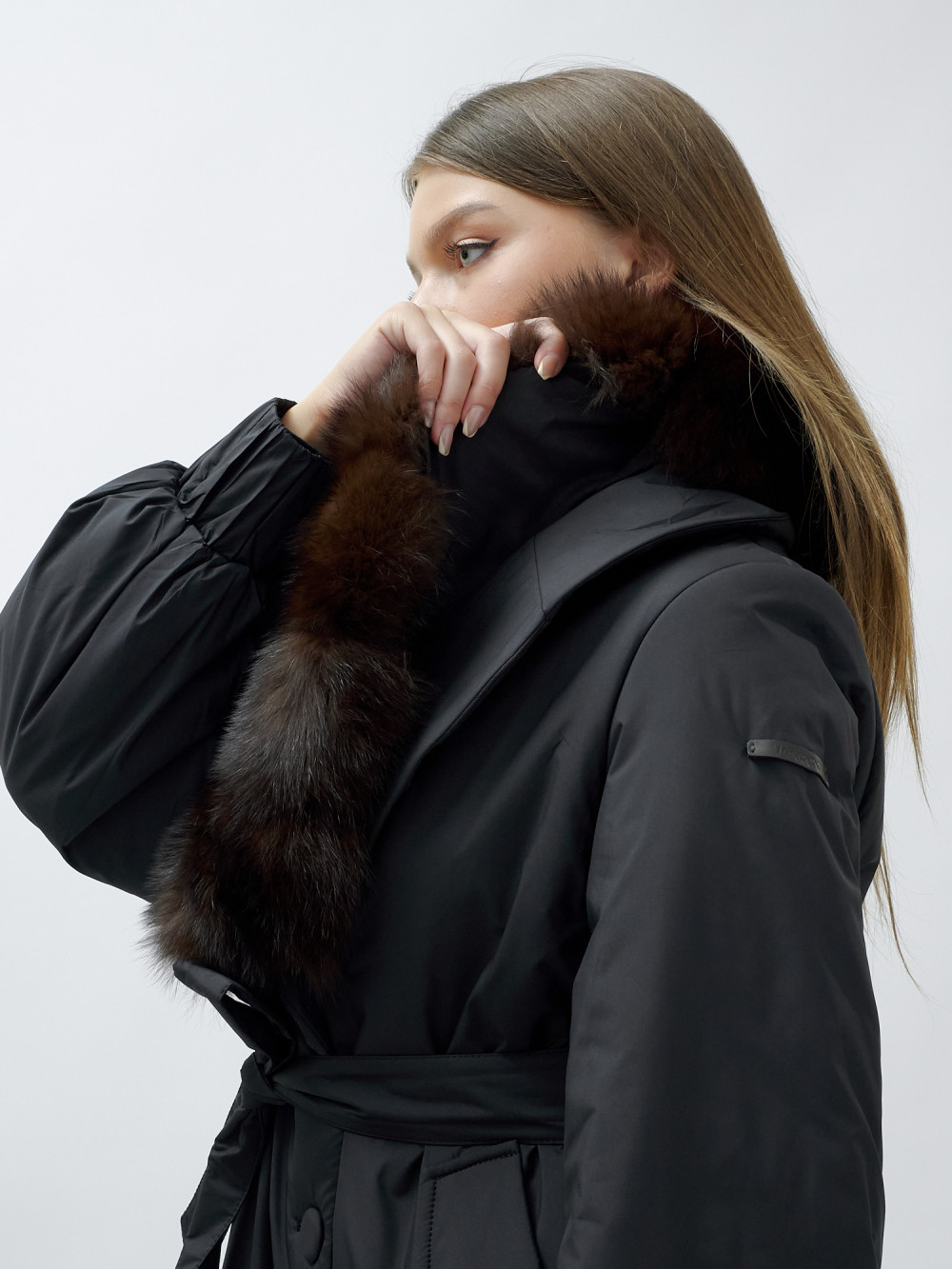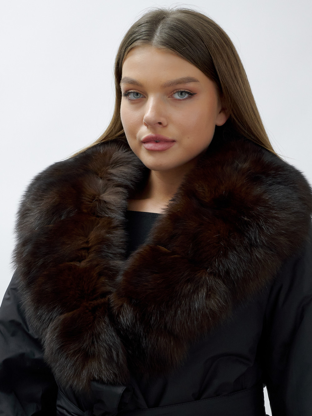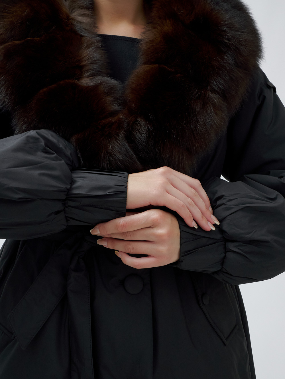 — Натуральная опушка: Съемный пушистый воротник из меха песца, обработанного под соболя, добавляет роскоши и позволяет вам менять стиль в зависимости от настроения.