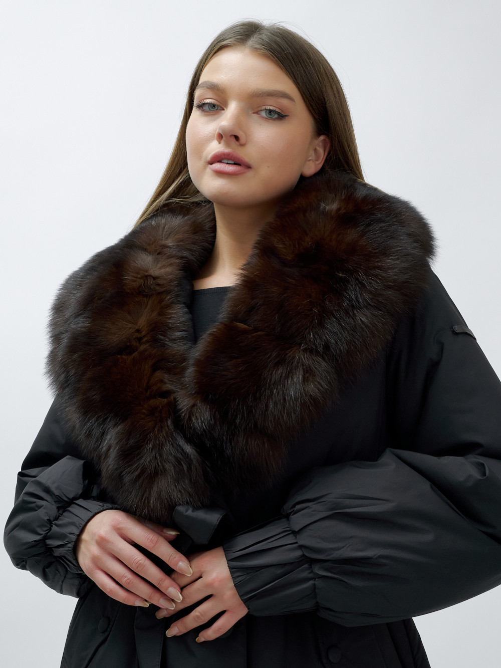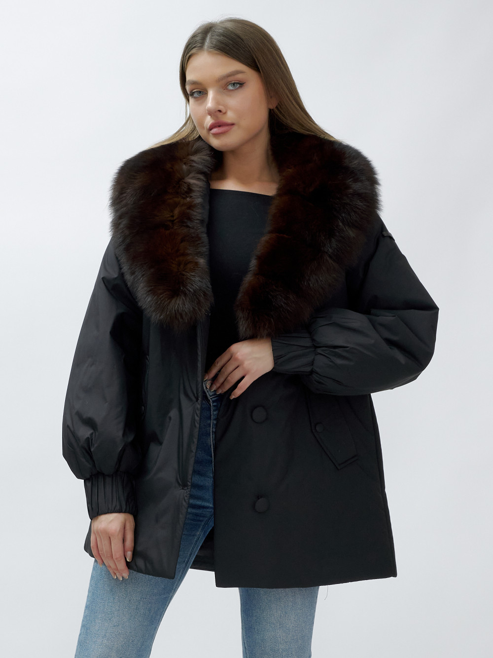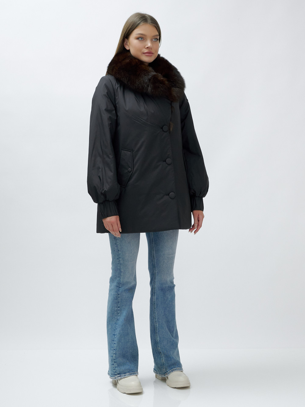 Полупальто женское зимние с мехом песец люкс класса черного цвета 8166Ch