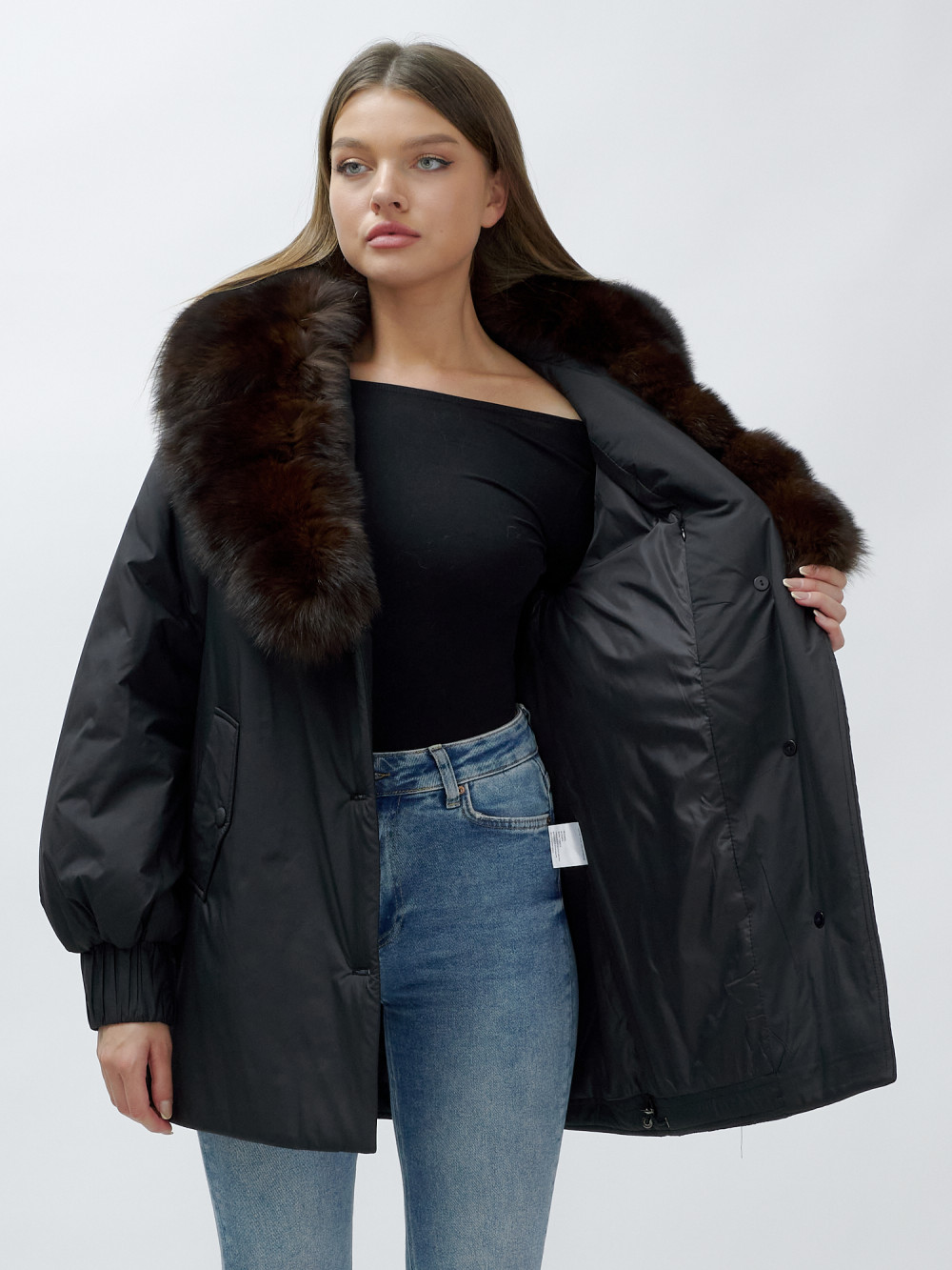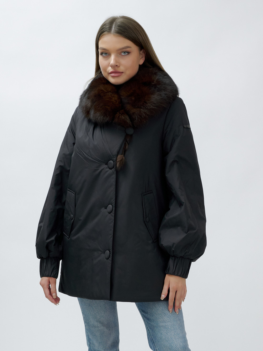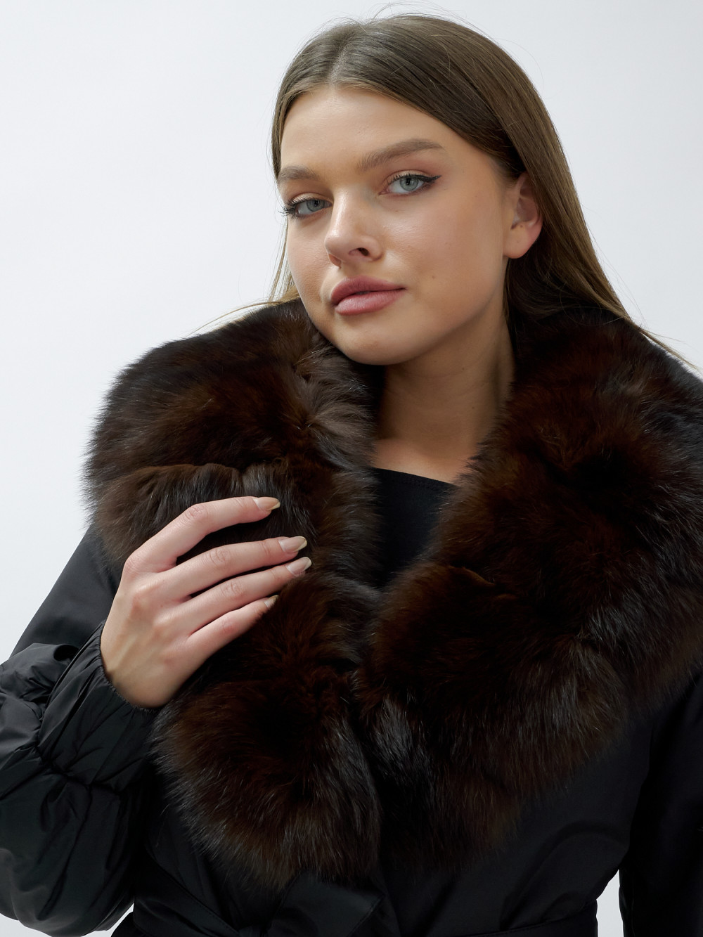 Полупальто женское зимние с мехом песец люкс класса черного цвета 8166Ch